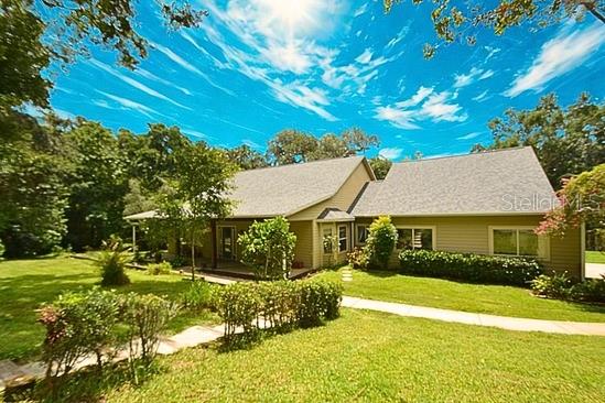 Escape to the quiet side of Florida living on 10 wooded acres just minutes from I-75. This four-bedroom, three-bath home blends peaceful rural life with modern updates and easy access to Tampa, Wesley Chapel, and the Gulf Coast beaches. Inside, the open floor plan features warm hardwood floors, a cozy fireplace, and a light-filled great room that connects the kitchen, dining, and living areas. The updated kitchen overlooks the deck and backyard, making it ideal for entertaining or family gatherings. The primary suite offers space and privacy, while the fourth bedroom includes a private entrance and ensuite bath, perfect for guests, multi-generational living, or a home office. Recent upgrades include two new air conditioning systems installed in 2022 and 2023, a new roof added in 2024, energy-efficient double-pane windows, and a whole-home water filtration system. This home is move-in ready and built for long-term comfort. Step outside to enjoy the elevated back deck that overlooks a firepit, pergola, and wide-open acreage filled with mature trees and songbirds. The property includes a large pole barn with RV hookup, an electric-powered workshop, and a fenced chicken coop. Whether you are looking for a hobby farm, a place to store recreational vehicles, or a private retreat surrounded by nature, this property delivers. Located only 2.5 miles from I-75, you can enjoy the privacy of country living with the convenience of city access. Downtown Tampa is 38 miles away, and the Gulf beaches are about an hour’s drive. The property sits high and dry, and flood insurance is not required. If you are searching for a move-in ready acreage home near San Antonio or Dade City, this rare find offers the perfect mix of land, privacy, upgrades, and the relaxed Florida lifestyle you have been dreaming about.