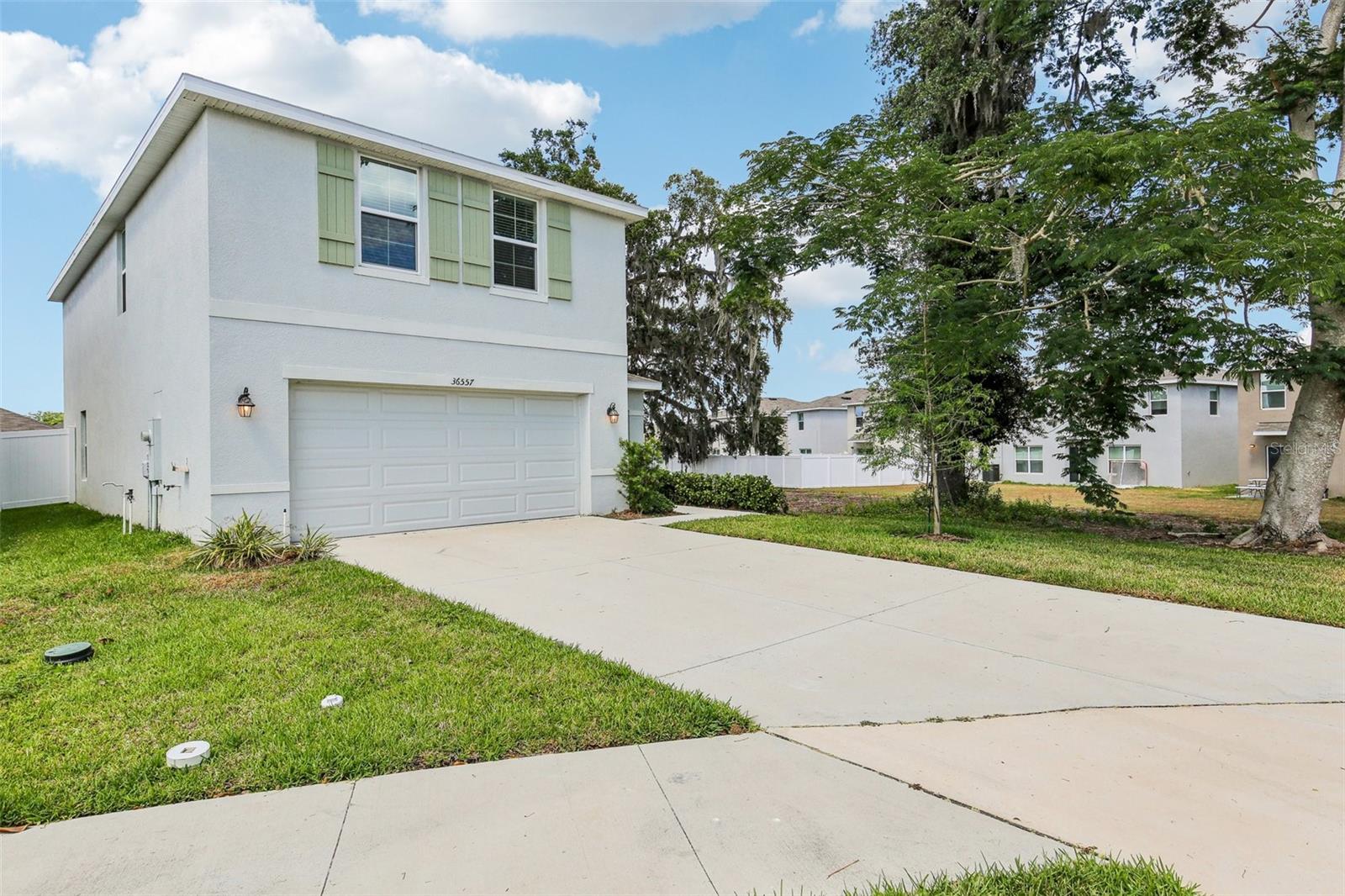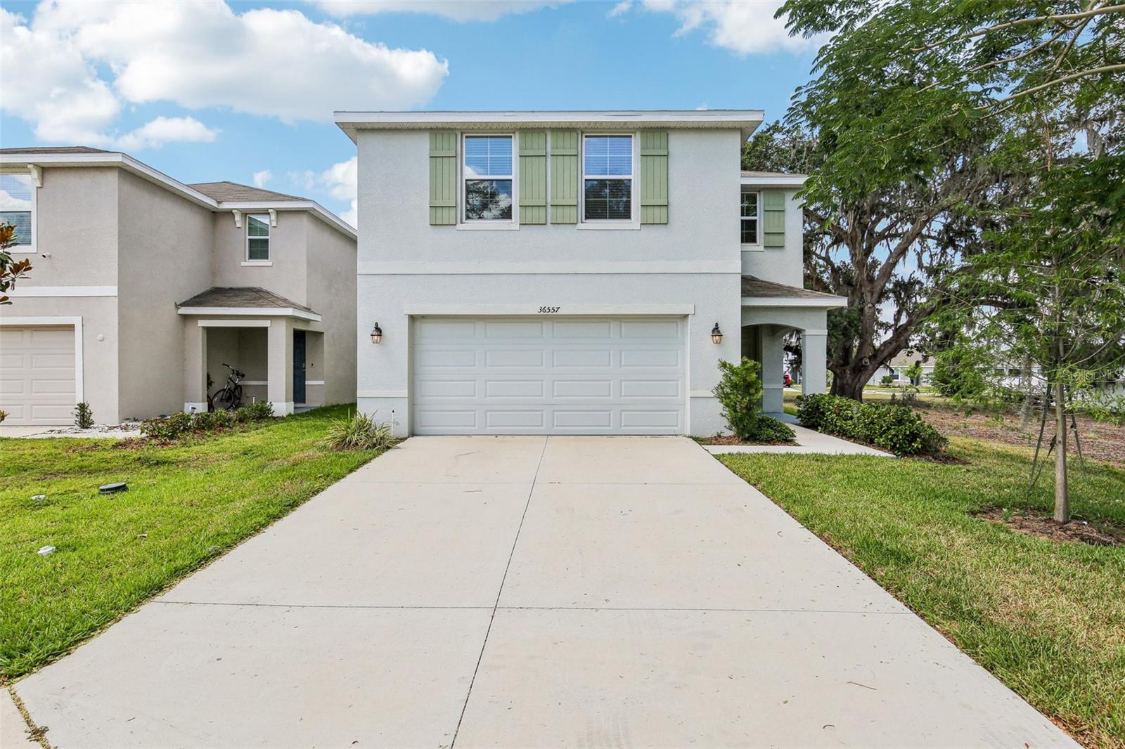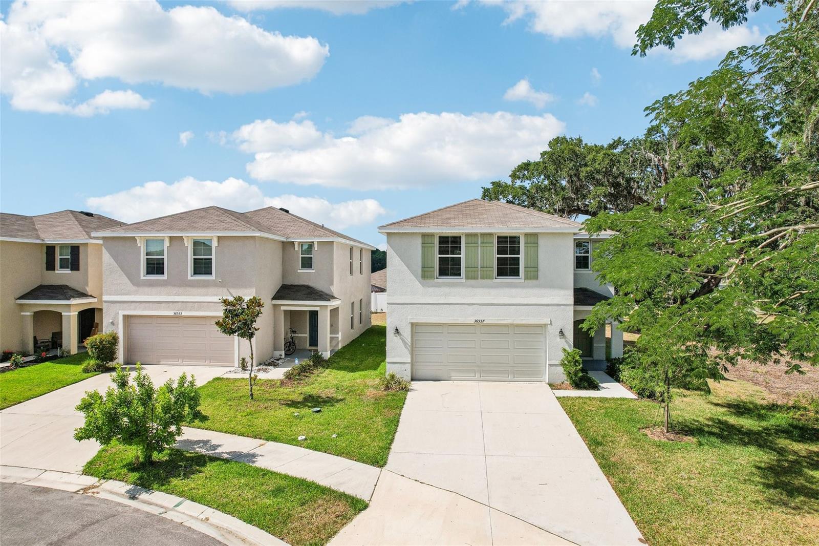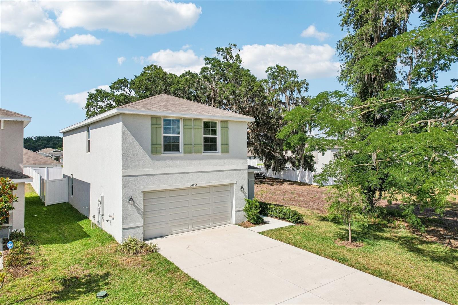 Welcome to 36557 Night Strawberry Ct – a beautifully upgraded 2023-built D.R. Horton "Elston" model nestled in the desirable Heritage Hills community of Dade City! This stunning two-story, all-concrete block construction home sits on an oversized cul-de-sac lot with no right-side neighbor and a fully fenced PVC yard—offering ultimate privacy and space to relax or entertain. Step inside and enjoy the open-concept layout featuring upgraded Luxury Vinyl Plank flooring in the living and dining areas. The modern kitchen overlooks both spaces, creating a seamless flow perfect for everyday living and gatherings. The first floor also includes a convenient powder bath, two storage closets, and a covered outdoor patio. Upstairs, the spacious primary suite boasts an oversized walk-in closet and a luxurious ensuite bathroom with dual vanities, tile-to-ceiling shower with glass door, and a linen closet. Three additional bedrooms share a well-appointed full bath, also with tile to the ceiling and a shower/tub combo for worry-free moisture protection. A generous loft offers the perfect space for a home office, media area, or playroom, and includes its own storage closet. Best of all, NO CDD, NO flood zone, and located in a peaceful cul-de-sac setting—this home truly has it all. Don’t miss your opportunity—schedule your private showing today!