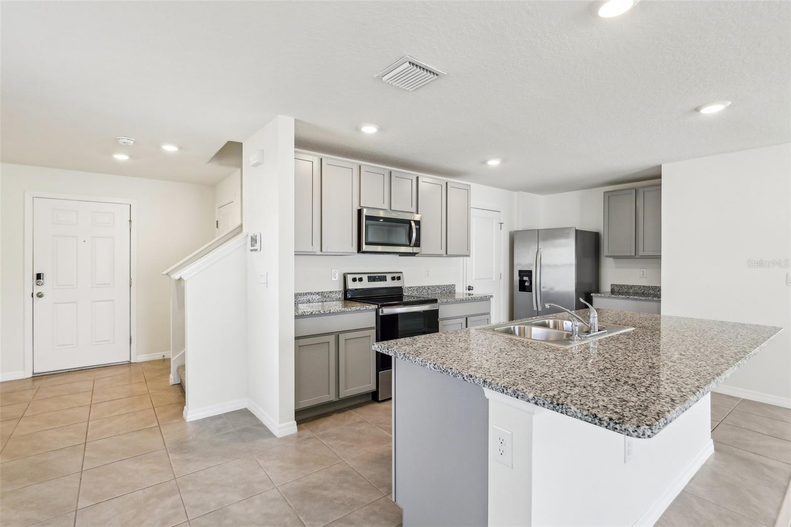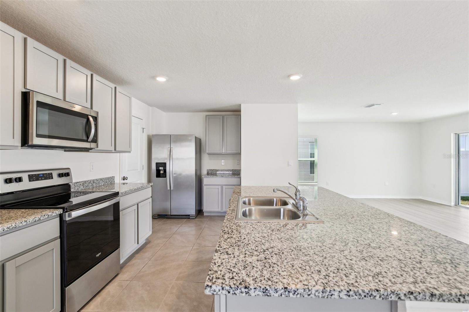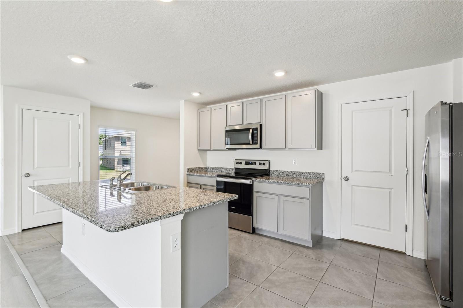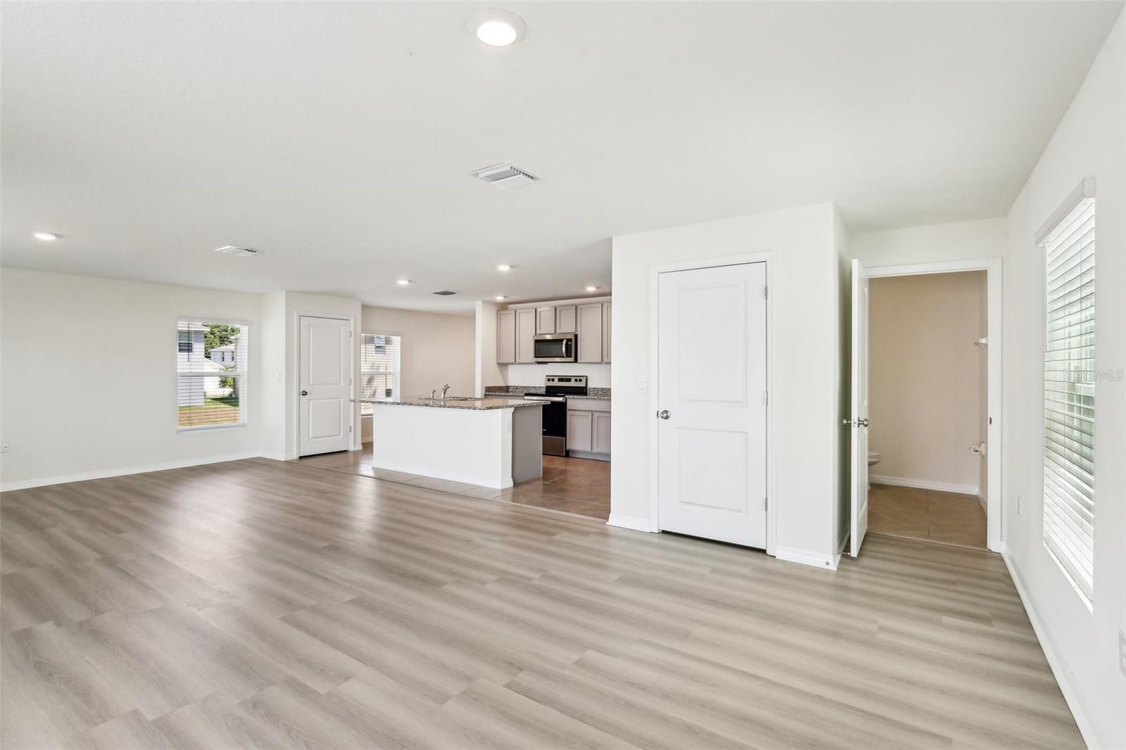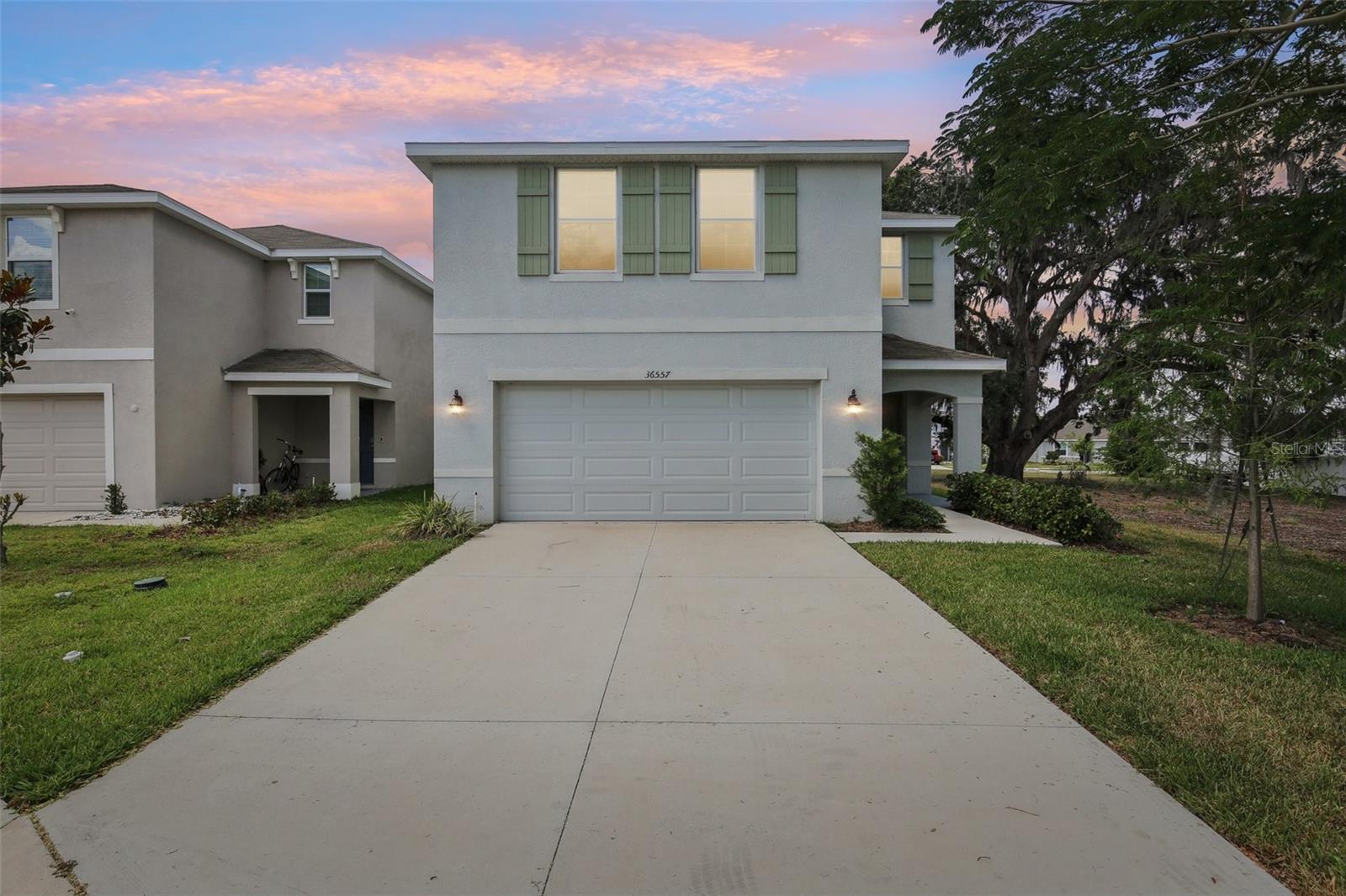 Welcome to 36557 Night Strawberry Ct – a beautifully upgraded 2023-built D.R. Horton "Elston" model nestled in the desirable Heritage Hills community of Dade City! This stunning two-story, all-concrete block construction home sits on an oversized cul-de-sac lot with no right-side neighbor and a fully fenced PVC yard—offering ultimate privacy and space to relax or entertain. Step inside and enjoy the open-concept layout featuring upgraded Luxury Vinyl Plank flooring in the living and dining areas. The modern kitchen overlooks both spaces, creating a seamless flow perfect for everyday living and gatherings. The first floor also includes a convenient powder bath, two storage closets, and a covered outdoor patio. Upstairs, the spacious primary suite boasts an oversized walk-in closet and a luxurious ensuite bathroom with dual vanities, tile-to-ceiling shower with glass door, and a linen closet. Three additional bedrooms share a well-appointed full bath, also with tile to the ceiling and a shower/tub combo for worry-free moisture protection. A generous loft offers the perfect space for a home office, media area, or playroom, and includes its own storage closet. Best of all, NO CDD, NO flood zone, and located in a peaceful cul-de-sac setting—this home truly has it all. Don’t miss your opportunity—schedule your private showing today!