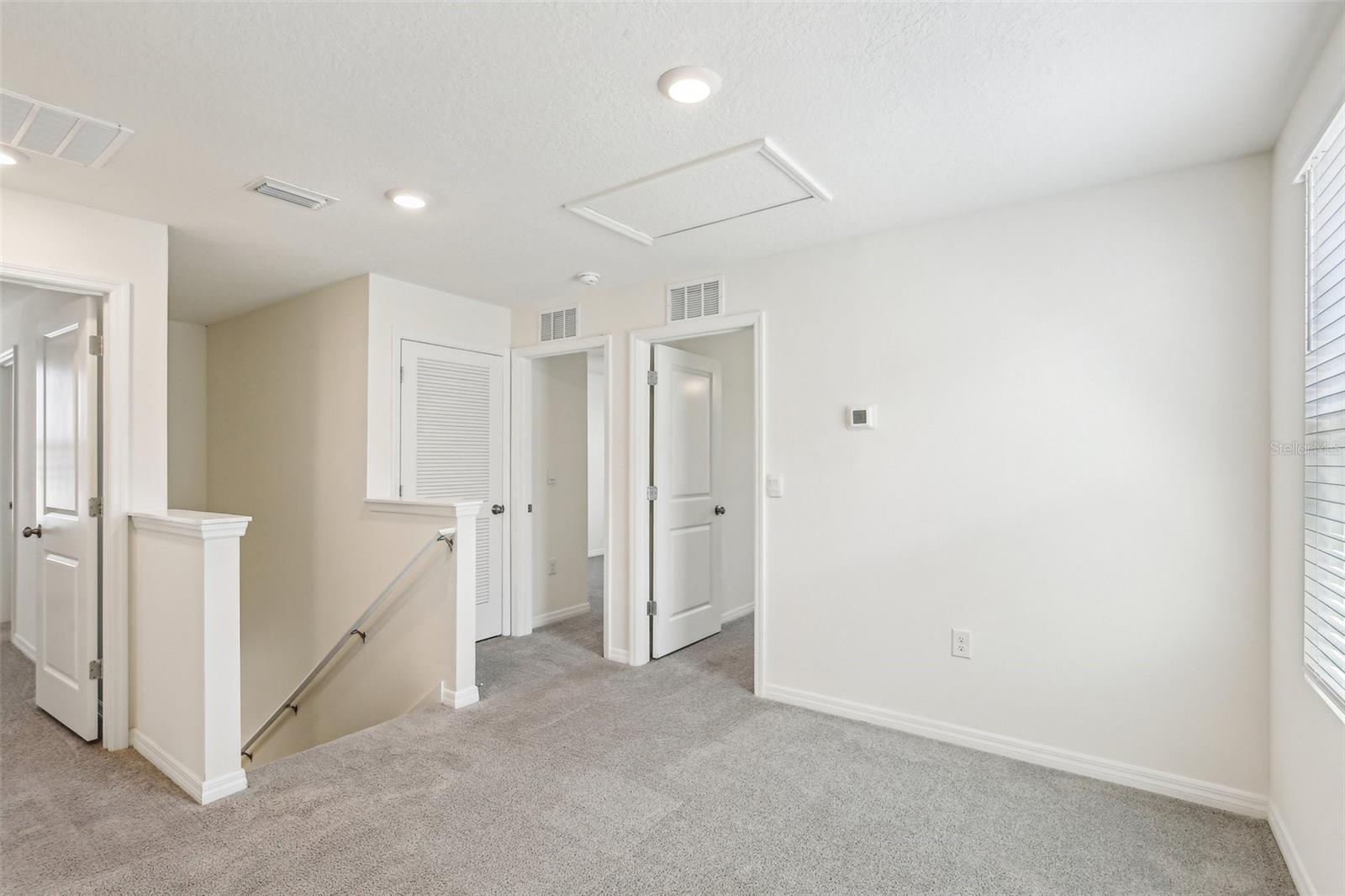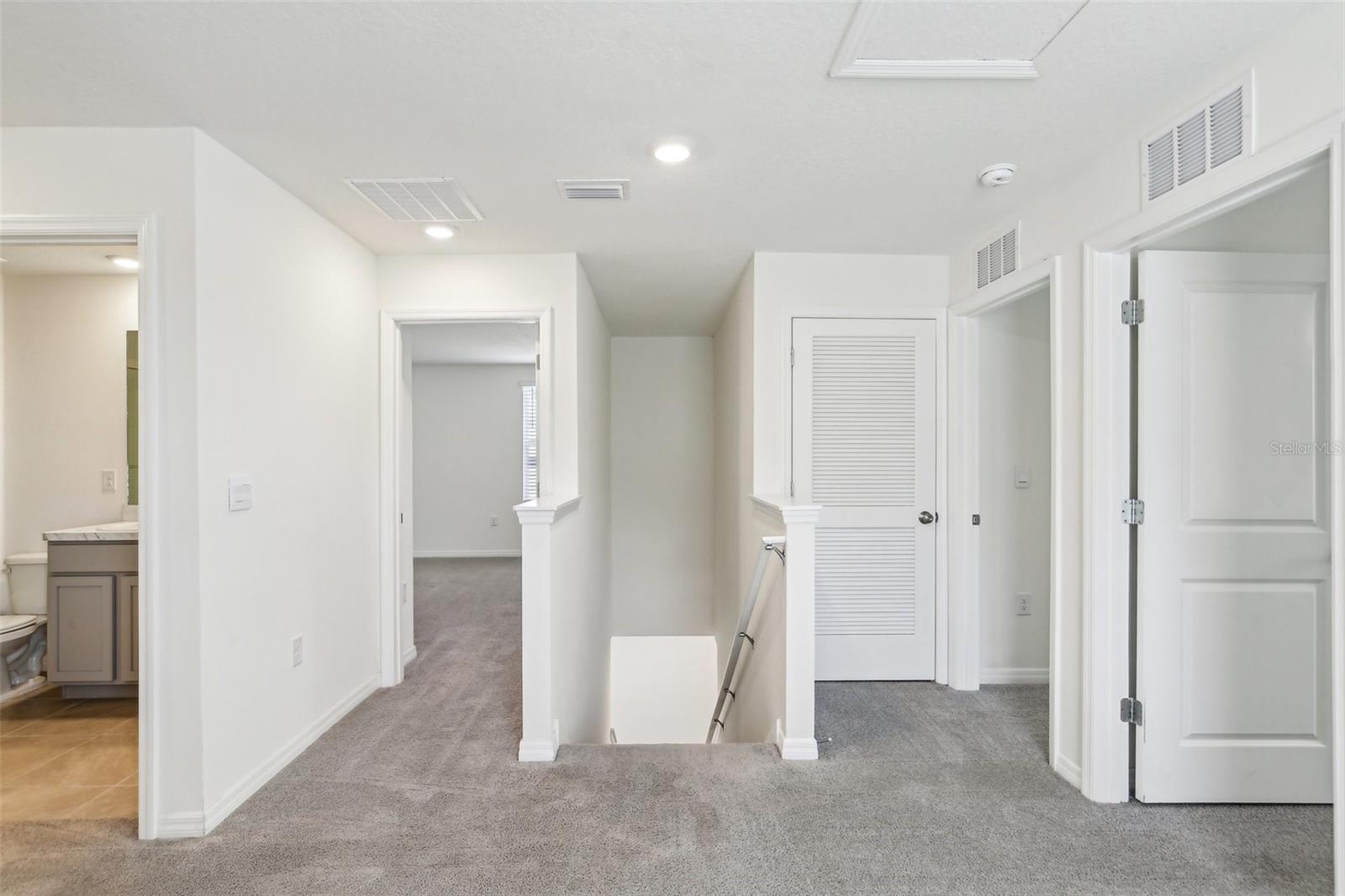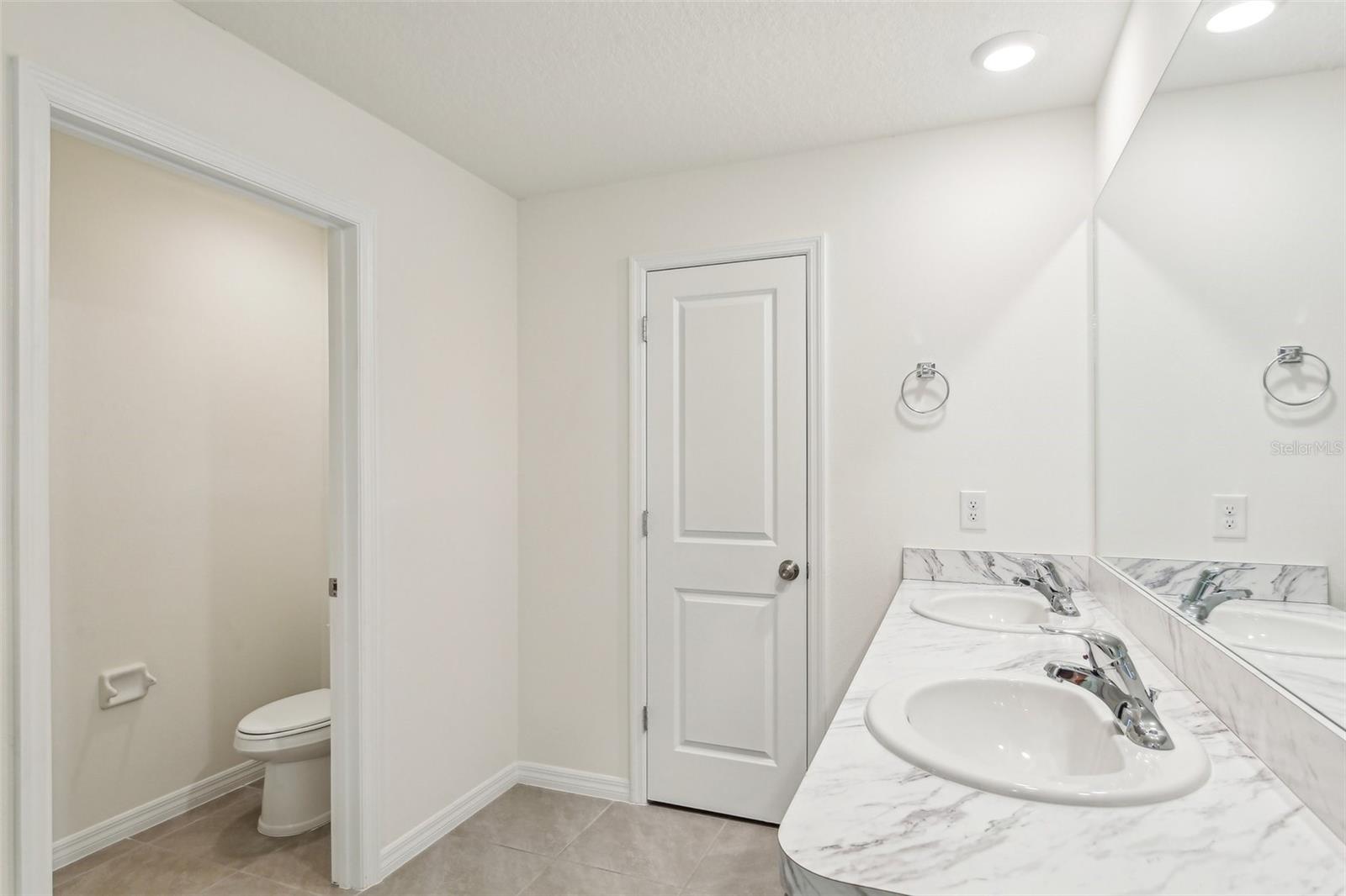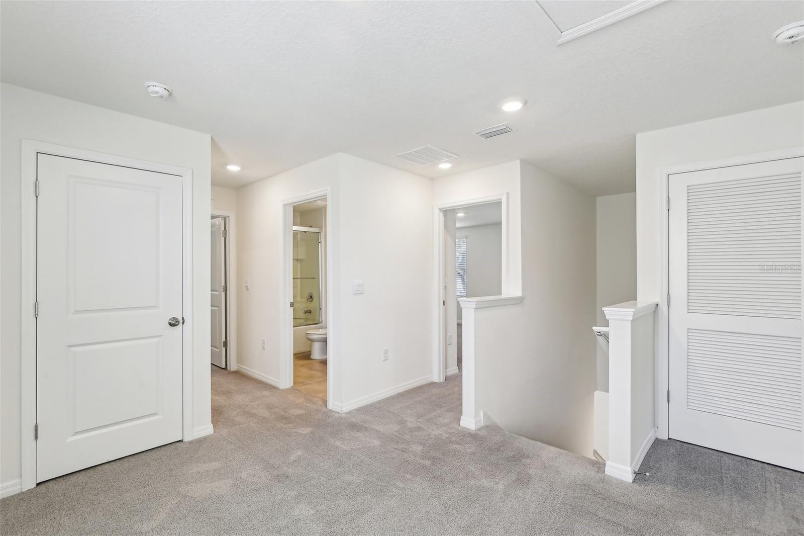 Welcome to 36557 Night Strawberry Ct – a beautifully upgraded 2023-built D.R. Horton "Elston" model nestled in the desirable Heritage Hills community of Dade City! This stunning two-story, all-concrete block construction home sits on an oversized cul-de-sac lot with no right-side neighbor and a fully fenced PVC yard—offering ultimate privacy and space to relax or entertain. Step inside and enjoy the open-concept layout featuring upgraded Luxury Vinyl Plank flooring in the living and dining areas. The modern kitchen overlooks both spaces, creating a seamless flow perfect for everyday living and gatherings. The first floor also includes a convenient powder bath, two storage closets, and a covered outdoor patio. Upstairs, the spacious primary suite boasts an oversized walk-in closet and a luxurious ensuite bathroom with dual vanities, tile-to-ceiling shower with glass door, and a linen closet. Three additional bedrooms share a well-appointed full bath, also with tile to the ceiling and a shower/tub combo for worry-free moisture protection. A generous loft offers the perfect space for a home office, media area, or playroom, and includes its own storage closet. Best of all, NO CDD, NO flood zone, and located in a peaceful cul-de-sac setting—this home truly has it all. Don’t miss your opportunity—schedule your private showing today!
