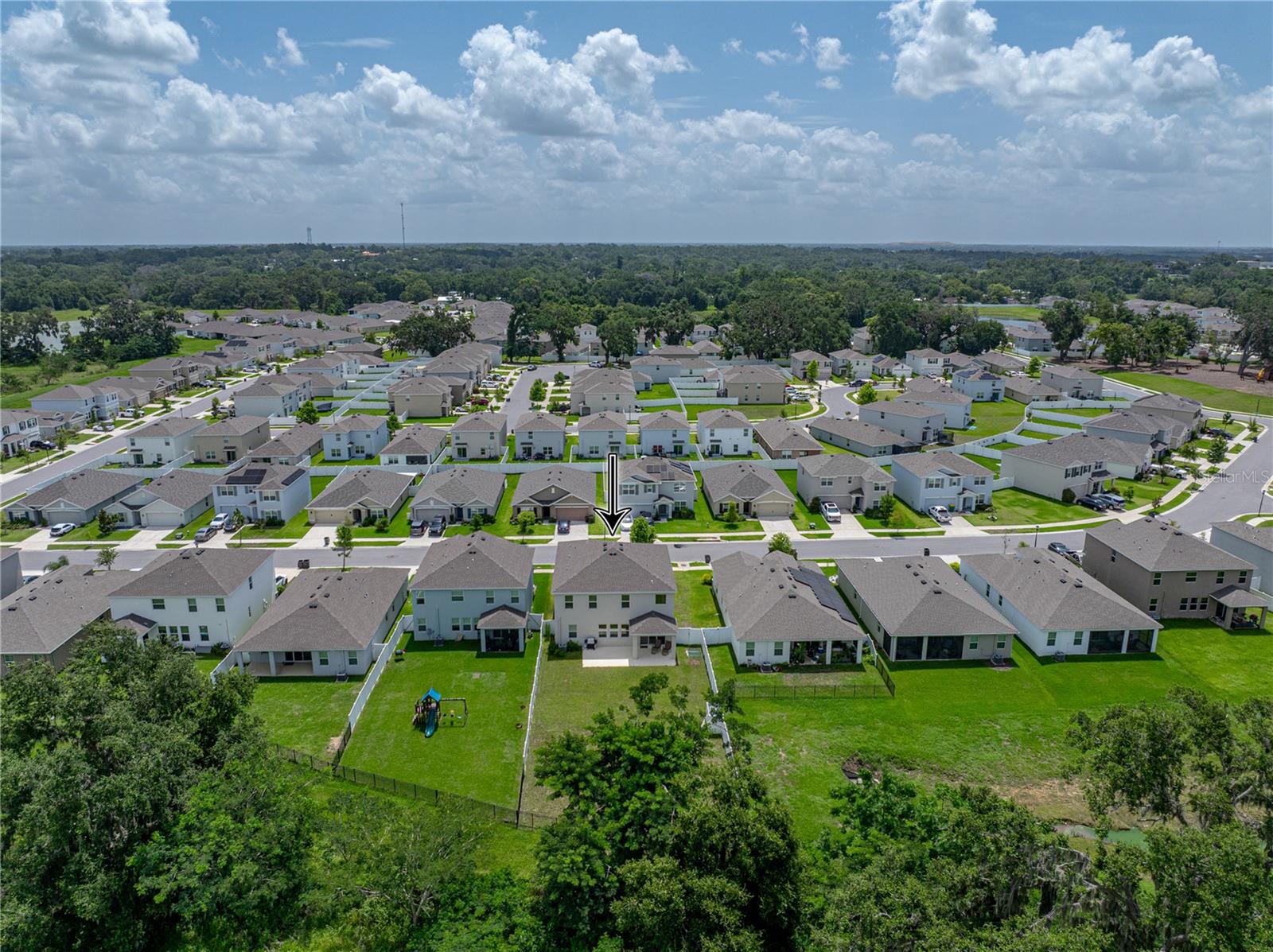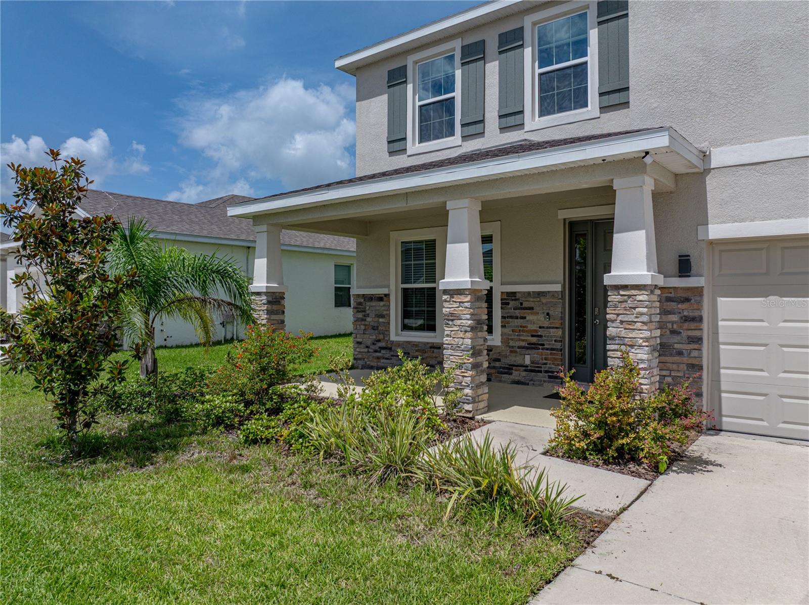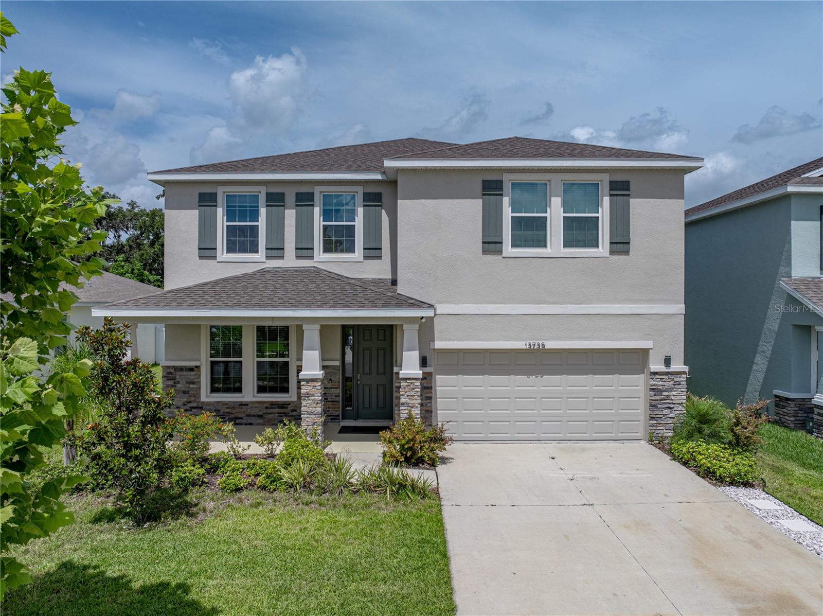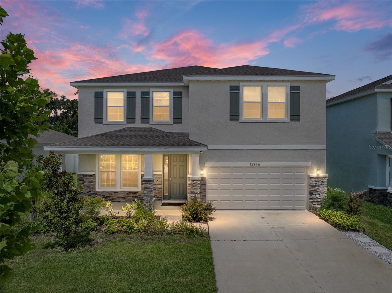 Stylish, spacious, and superbly located, this 4 bedroom + office + loft, 3 bath, 2-story home in Heritage Hills offers the kind of flexibility and aesthetic that homeowners love, just minutes from Burk’s Park and Downtown Dade City. Sidewalk-lined streets and stone-accented elevations welcome you to this thoughtfully designed home, featuring a 2 car garage and a large covered front porch to sip your morning coffee from. Inside, a dedicated office sits near the front of the home for maximum privacy. Easy-to-maintain tile flooring flows throughout the sweeping, open- concept main living areas, where a tray ceiling crowns the living room and a sleek modern light fixture adds flair to the dining area. Triple sliding doors offer a seamless connection to the covered back patio for easy indoor/outdoor living. The kitchen is both beautiful and practical, providing granite countertops, stainless steel appliances, matte black finishes, a central island with breakfast bar seating, a butler’s pantry, and a large walk-in pantry for all your storage needs! A spacious first-floor guest bedroom and full bathroom provide a secluded option for overnight visitors. Nearby, a mudroom nook near the garage access creates the perfect landing zone for bags, shoes, and daily essentials. Plush carpeted stairs lead to an expansive loft currently used as a media room, an ideal space to relax or reconfigure to suit your lifestyle. The primary suite is a grand retreat, privately tucked away behind double doors and offering a tray ceiling, a roomy sitting area, an oversized walk-in closet with direct access to the laundry room, and a luxurious ensuite with dual granite-topped vanities, a garden tub, a walk-in shower, and a water closet. Bedrooms 3 and 4 also share the upper level, each generously sized, with ceiling fans, ample closet space, and easy access to the home’s third full bath featuring dual sinks and a tub/shower combo. Distinctive features of this elevated residence include carefully chosen accent walls, extra built-in storage in the garage, abundant storage closets, and a thoughtfully designed floor plan. Out back, you can enjoy your own peaceful escape with privacy-fenced sides, tree-lined views at the rear, a covered patio for shaded lounging, and an open patio for soaking in the Florida sunshine. This home boasts the largest lot in the community - a feature the new homeowners can enjoy to its fullest. Located in a low-HOA community offering a neighborhood playground and quick access to major highways, local parks, and the small-town charm of Downtown Dade City- this home checks every box. Schedule your showing today!