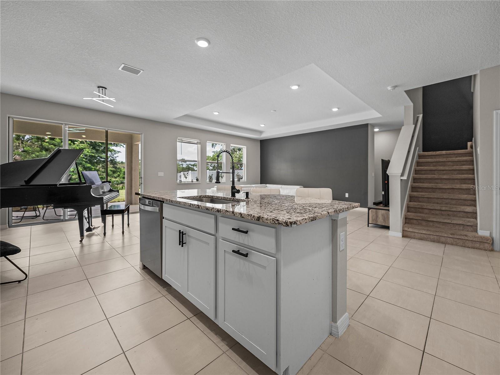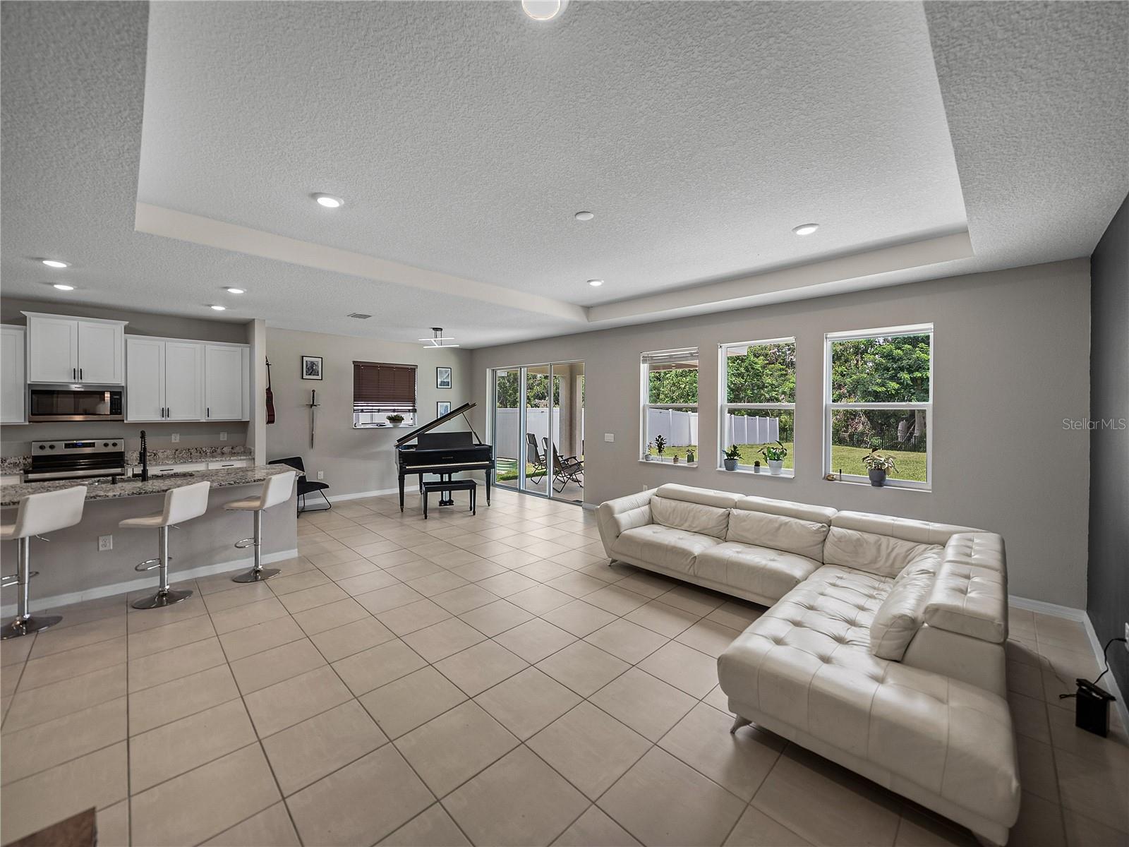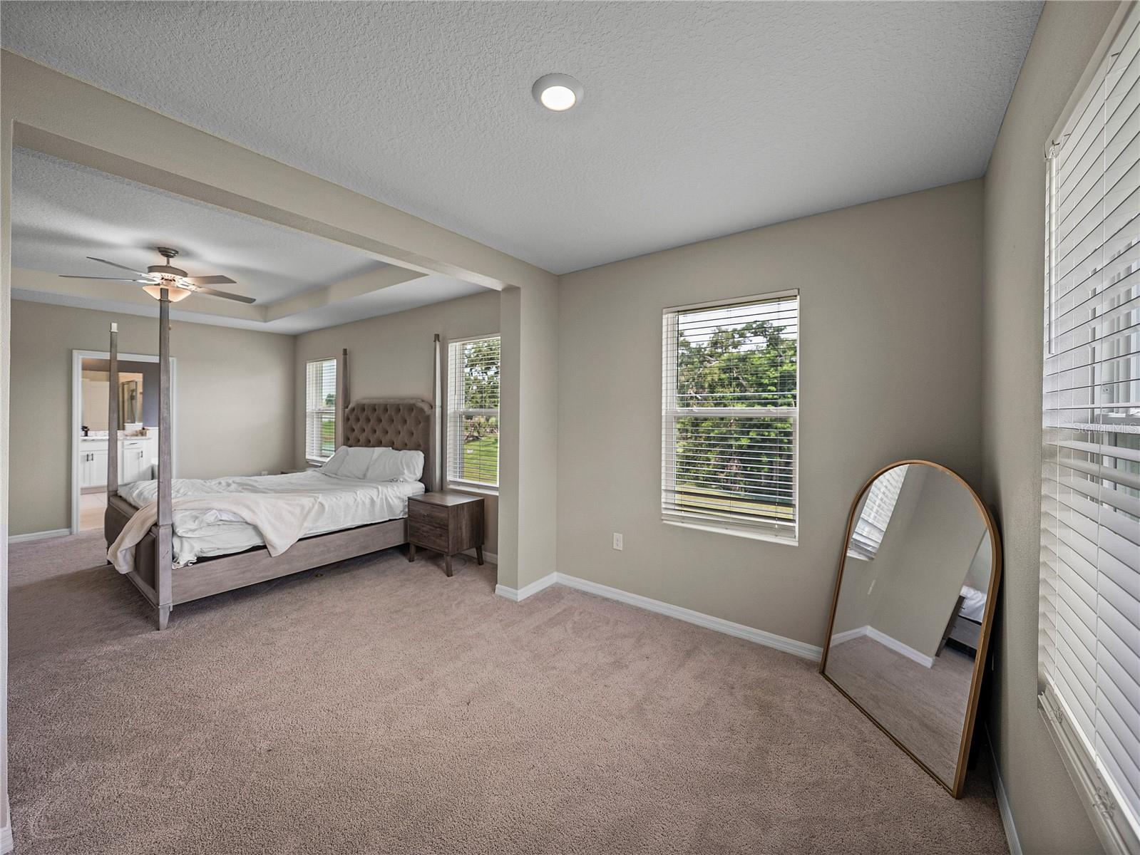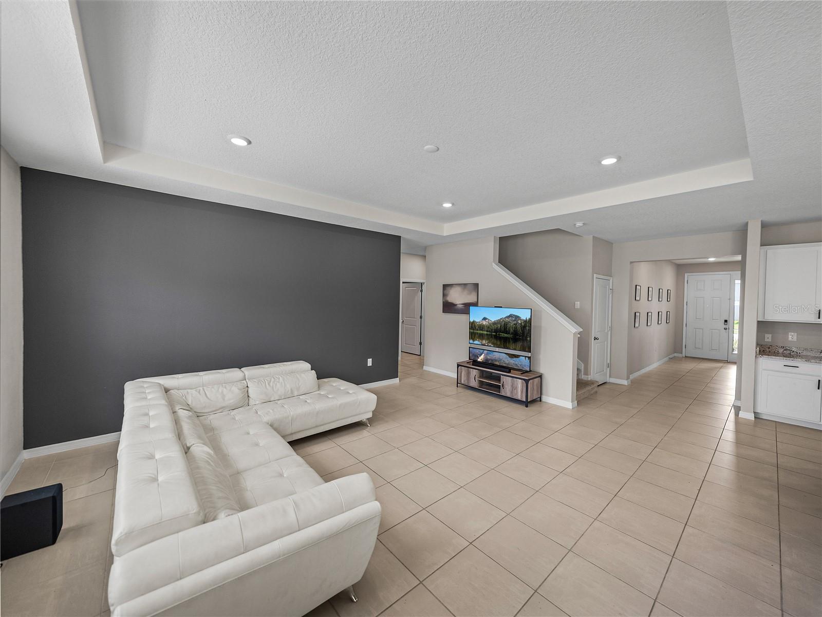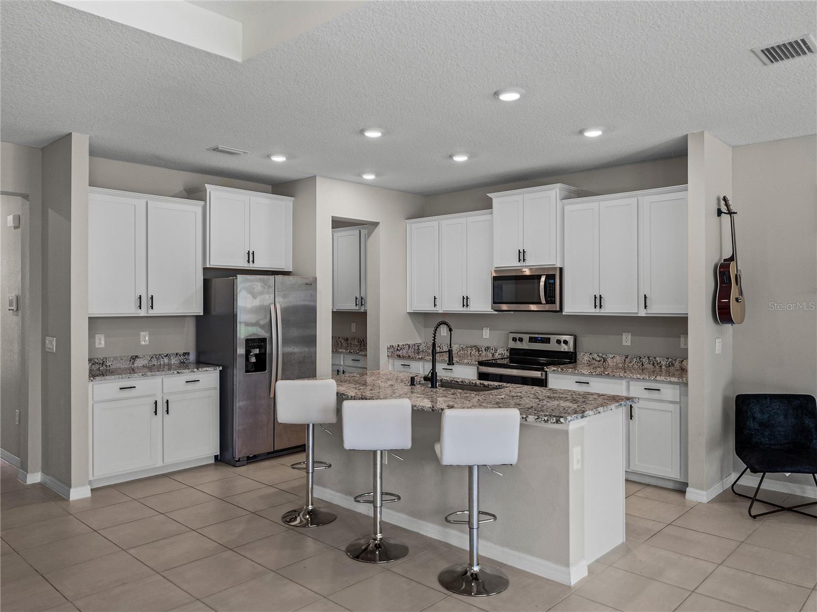 Stylish, spacious, and superbly located, this 4 bedroom + office + loft, 3 bath, 2-story home in Heritage Hills offers the kind of flexibility and aesthetic that homeowners love, just minutes from Burk’s Park and Downtown Dade City. Sidewalk-lined streets and stone-accented elevations welcome you to this thoughtfully designed home, featuring a 2 car garage and a large covered front porch to sip your morning coffee from. Inside, a dedicated office sits near the front of the home for maximum privacy. Easy-to-maintain tile flooring flows throughout the sweeping, open- concept main living areas, where a tray ceiling crowns the living room and a sleek modern light fixture adds flair to the dining area. Triple sliding doors offer a seamless connection to the covered back patio for easy indoor/outdoor living. The kitchen is both beautiful and practical, providing granite countertops, stainless steel appliances, matte black finishes, a central island with breakfast bar seating, a butler’s pantry, and a large walk-in pantry for all your storage needs! A spacious first-floor guest bedroom and full bathroom provide a secluded option for overnight visitors. Nearby, a mudroom nook near the garage access creates the perfect landing zone for bags, shoes, and daily essentials. Plush carpeted stairs lead to an expansive loft currently used as a media room, an ideal space to relax or reconfigure to suit your lifestyle. The primary suite is a grand retreat, privately tucked away behind double doors and offering a tray ceiling, a roomy sitting area, an oversized walk-in closet with direct access to the laundry room, and a luxurious ensuite with dual granite-topped vanities, a garden tub, a walk-in shower, and a water closet. Bedrooms 3 and 4 also share the upper level, each generously sized, with ceiling fans, ample closet space, and easy access to the home’s third full bath featuring dual sinks and a tub/shower combo. Distinctive features of this elevated residence include carefully chosen accent walls, extra built-in storage in the garage, abundant storage closets, and a thoughtfully designed floor plan. Out back, you can enjoy your own peaceful escape with privacy-fenced sides, tree-lined views at the rear, a covered patio for shaded lounging, and an open patio for soaking in the Florida sunshine. This home boasts the largest lot in the community - a feature the new homeowners can enjoy to its fullest. Located in a low-HOA community offering a neighborhood playground and quick access to major highways, local parks, and the small-town charm of Downtown Dade City- this home checks every box. Schedule your showing today!