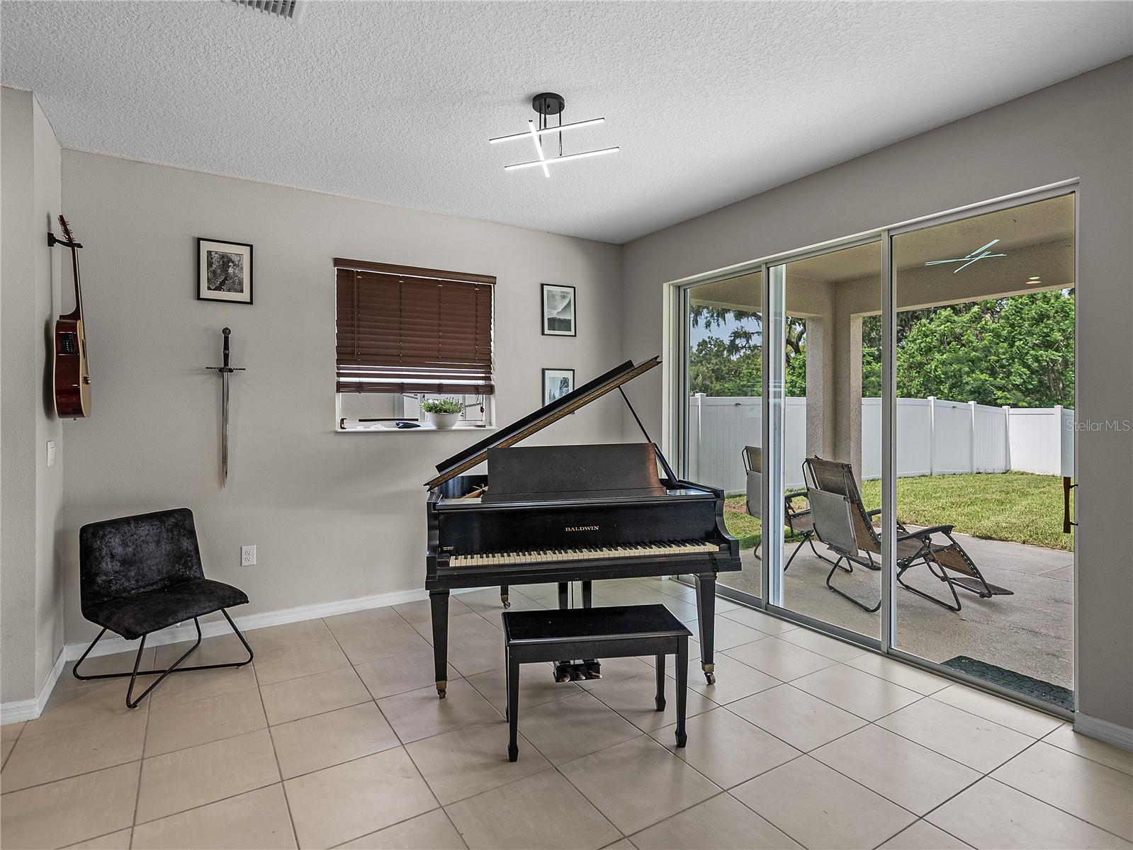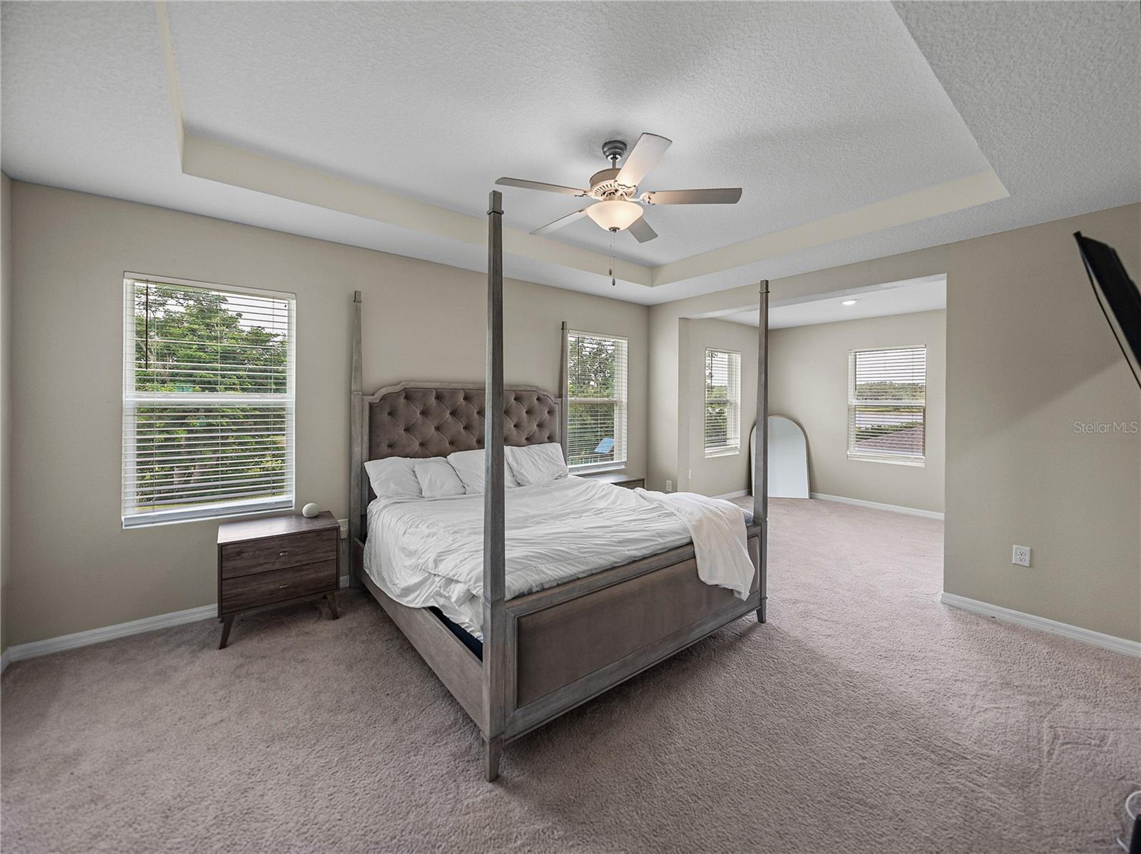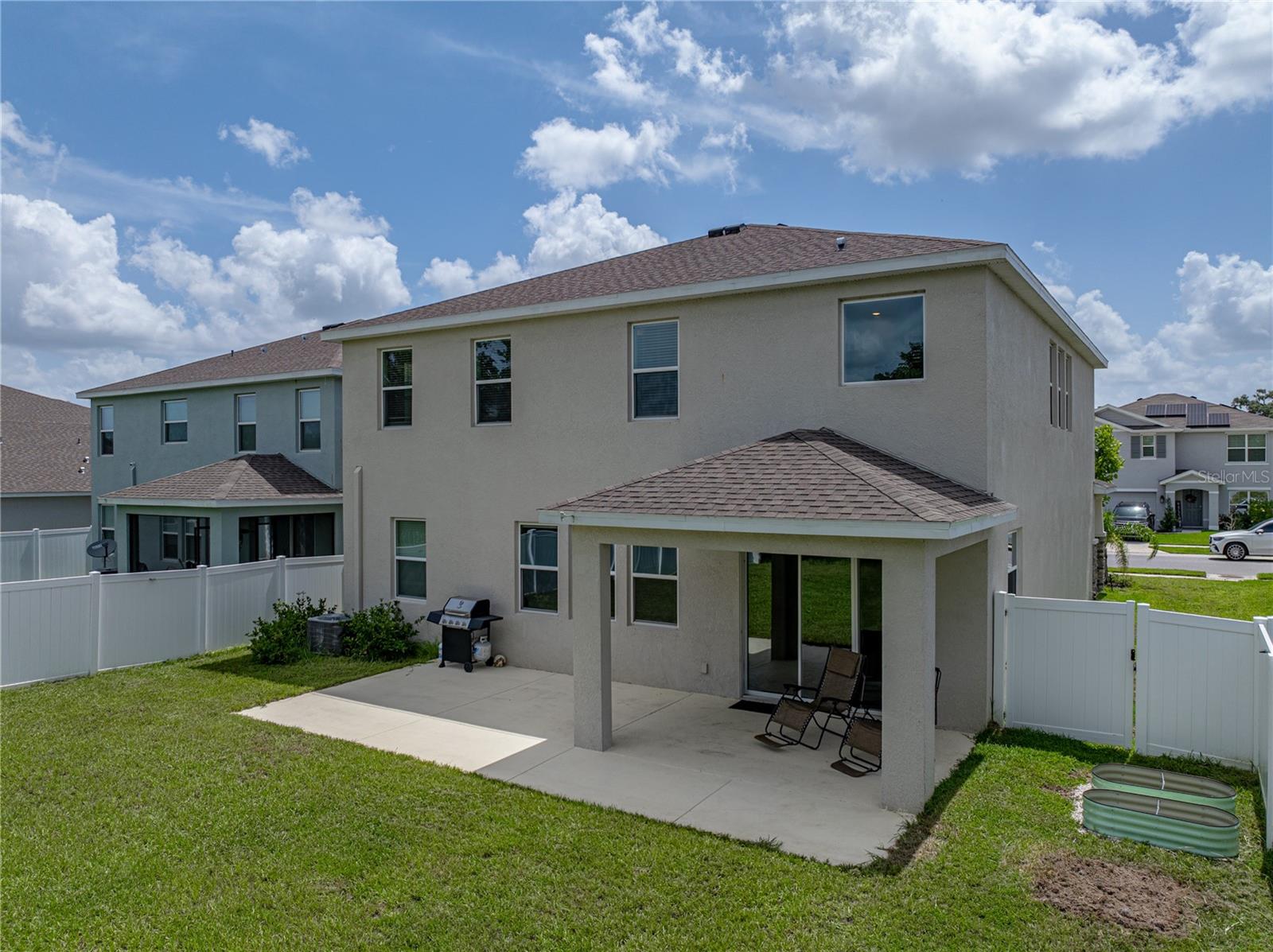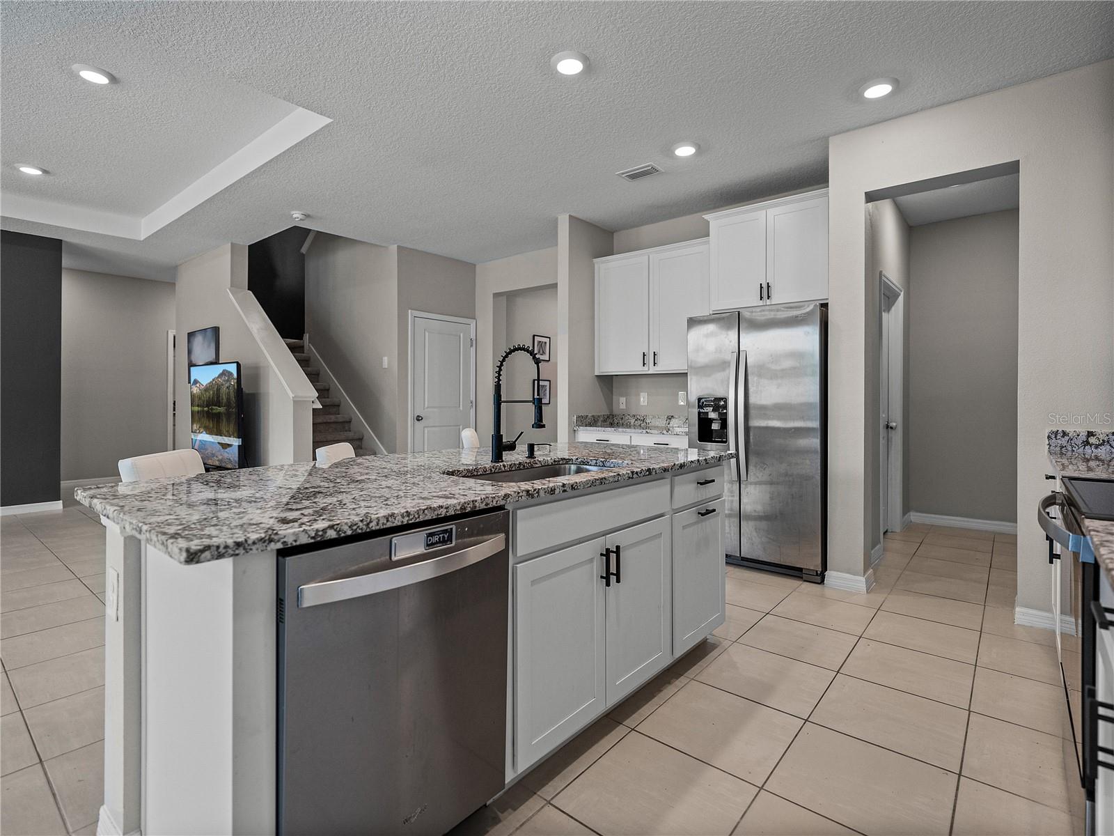 Stylish, spacious, and superbly located, this 4 bedroom + office + loft, 3 bath, 2-story home in Heritage Hills offers the kind of flexibility and aesthetic that homeowners love, just minutes from Burk’s Park and Downtown Dade City. Sidewalk-lined streets and stone-accented elevations welcome you to this thoughtfully designed home, featuring a 2 car garage and a large covered front porch to sip your morning coffee from. Inside, a dedicated office sits near the front of the home for maximum privacy. Easy-to-maintain tile flooring flows throughout the sweeping, open- concept main living areas, where a tray ceiling crowns the living room and a sleek modern light fixture adds flair to the dining area. Triple sliding doors offer a seamless connection to the covered back patio for easy indoor/outdoor living. The kitchen is both beautiful and practical, providing granite countertops, stainless steel appliances, matte black finishes, a central island with breakfast bar seating, a butler’s pantry, and a large walk-in pantry for all your storage needs! A spacious first-floor guest bedroom and full bathroom provide a secluded option for overnight visitors. Nearby, a mudroom nook near the garage access creates the perfect landing zone for bags, shoes, and daily essentials. Plush carpeted stairs lead to an expansive loft currently used as a media room, an ideal space to relax or reconfigure to suit your lifestyle. The primary suite is a grand retreat, privately tucked away behind double doors and offering a tray ceiling, a roomy sitting area, an oversized walk-in closet with direct access to the laundry room, and a luxurious ensuite with dual granite-topped vanities, a garden tub, a walk-in shower, and a water closet. Bedrooms 3 and 4 also share the upper level, each generously sized, with ceiling fans, ample closet space, and easy access to the home’s third full bath featuring dual sinks and a tub/shower combo. Distinctive features of this elevated residence include carefully chosen accent walls, extra built-in storage in the garage, abundant storage closets, and a thoughtfully designed floor plan. Out back, you can enjoy your own peaceful escape with privacy-fenced sides, tree-lined views at the rear, a covered patio for shaded lounging, and an open patio for soaking in the Florida sunshine. This home boasts the largest lot in the community - a feature the new homeowners can enjoy to its fullest. Located in a low-HOA community offering a neighborhood playground and quick access to major highways, local parks, and the small-town charm of Downtown Dade City- this home checks every box. Schedule your showing today!