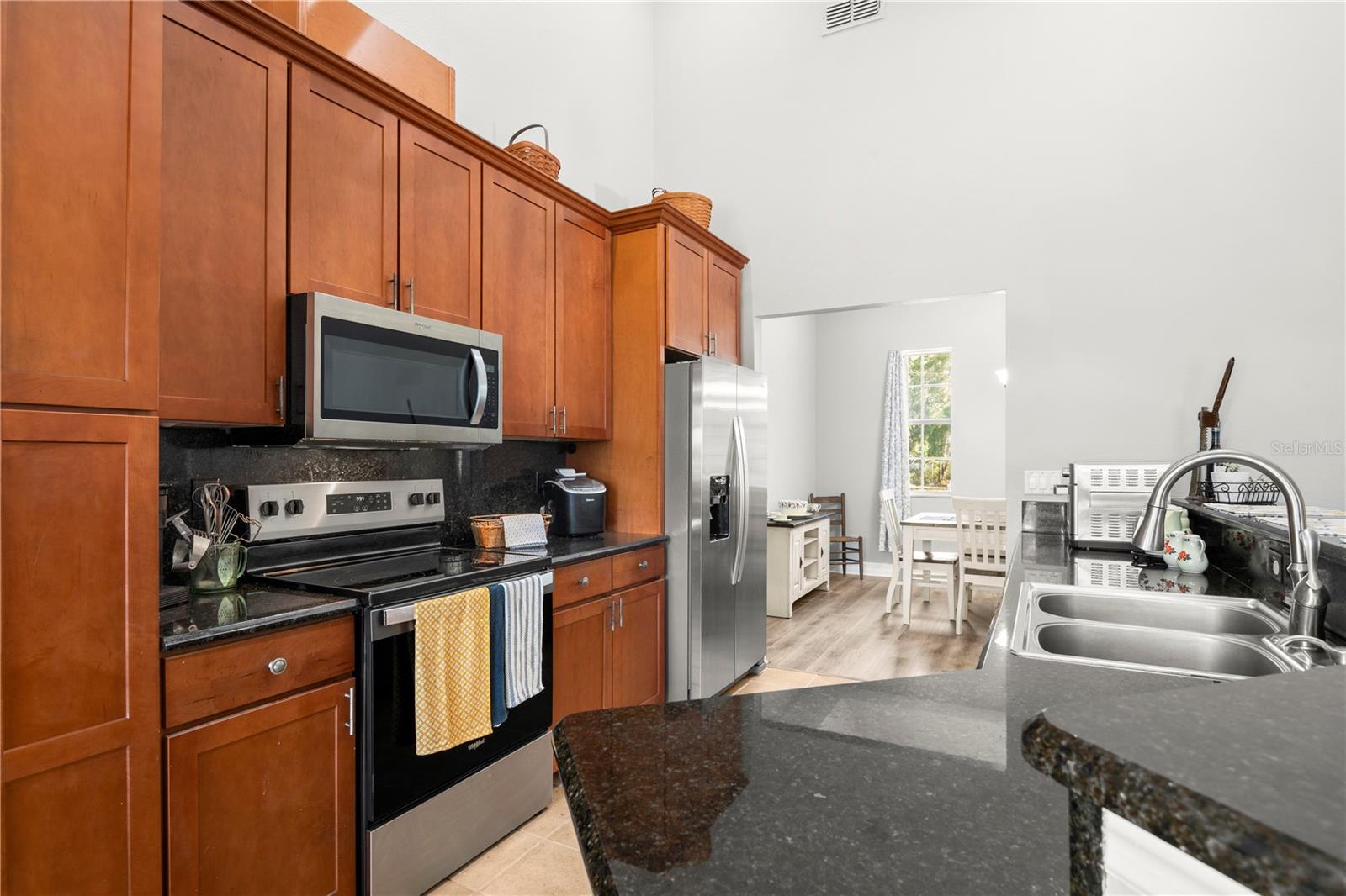 Escape to your own private retreat in this stunning 3-bedroom, 3-bath, w/ bonus room, split-level home located on a spacious 0.49-acre lot in the beautiful Ridge Manor area of Dade City, FL. The home has been completely updated from the brand new roof to new flooring throughout and everything in between with a sophisticated attention to detail. The entrance boasts a cathedral ceiling that flows seamlessly into the open-concept family room and kitchen, creating an airy and inviting atmosphere. Unwind by the cozy warmth of the stone wood-burning fireplace, gracing both the family room and kitchen. Then indulge yourself in the exquisitely designed master bath featuring dual sinks, a luxurious tub, and a spacious walk-in shower with dual shower heads. Upstairs is a huge media room wired for sound and ready for family movie or game nights. Out back you'll find a large fenced backyard with detached workshop perfect for all your hobbies. Additional features include a two-car attached garage with room for the toys. This 2006-built home, featuring brick and vinyl siding, offers the perfect blend of elegance and comfort.