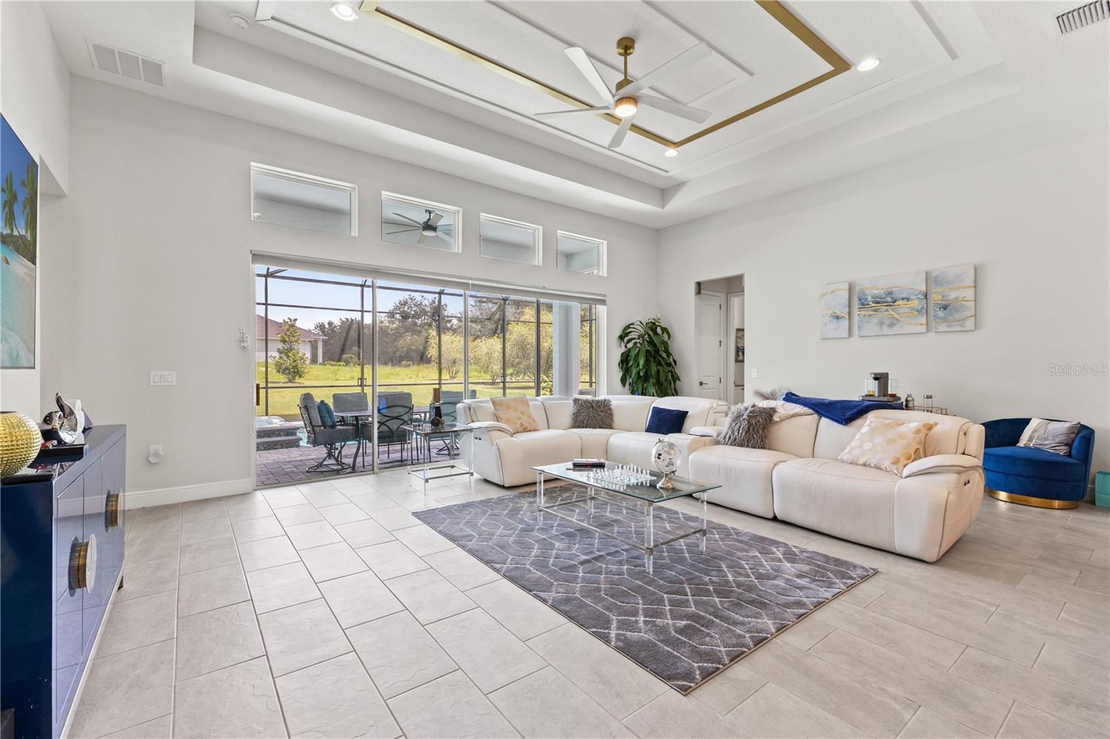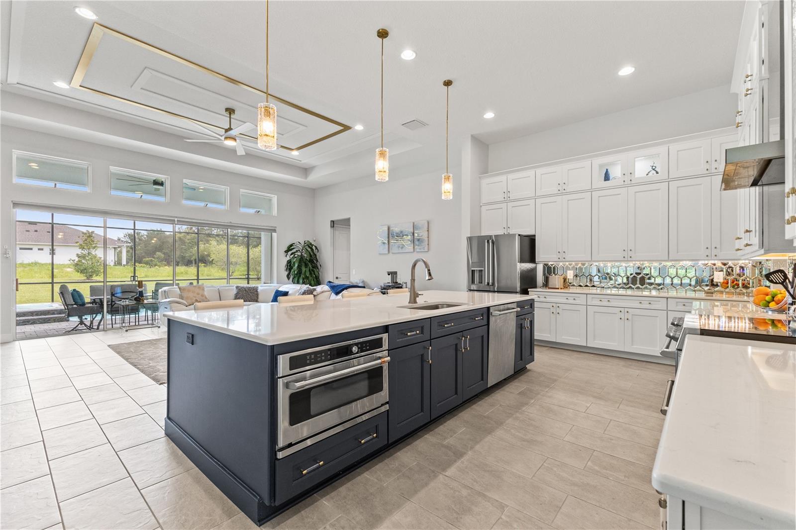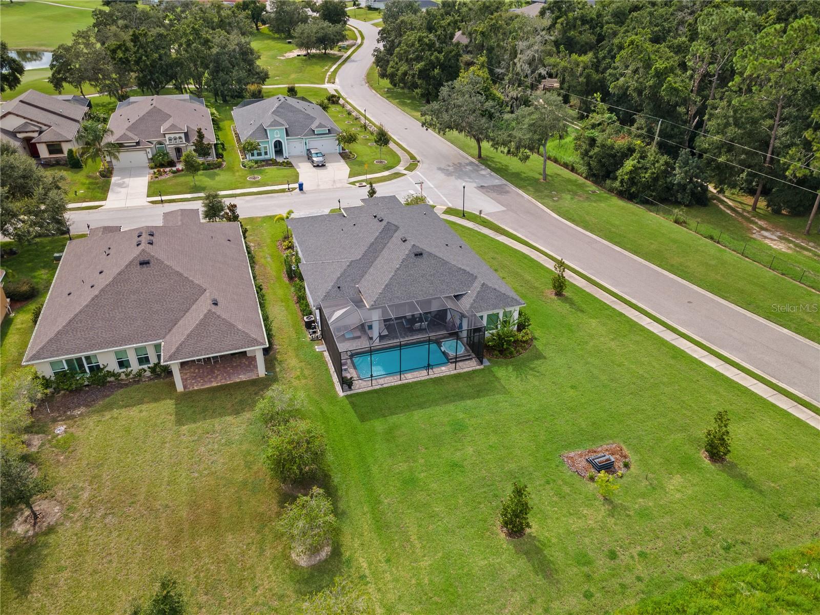 Welcome to 13444 Trailing Moss, a stately residence on a large 1/3-acre corner lot in the prestigious Lake Jovita Golf & Country Club, an upscale, guard-gated community. Known for its scenic rolling hills, sparkling lakes, and resort-style amenities, Lake Jovita features two championship golf courses, tennis and pickleball courts, a fitness center, a community pool, a new dog park, and a beautiful park that sits right in your backyard. The South Course has even hosted USGA U.S. Open local qualifying events, adding to the community’s prestige. With over 3,000 square feet of living space on a single-story floor plan, this home was designed for both elegance and functionality. The upgraded layout includes three spacious bedrooms, three full bathrooms, and an expanded bonus room with stylish barn doors, perfect for entertaining, a media lounge with surround sound, or even a private retreat. Plus, there’s an additional home office at the front of the home with upgraded hardwood floors, ideal for those working remotely or needing a dedicated workspace. The split-bedroom layout offers exceptional privacy, and the master suite is a true retreat with a spa-like ensuite featuring a free-standing soaking tub, dual vanities, and a massive walk-in closet. At the heart of the home lies the chef’s kitchen, designed to impress both everyday cooks and gourmet entertainers. Outfitted with 42-inch soft-close cabinets and custom uppers, this kitchen offers ample storage and timeless style. The elegant cabinetry is paired with sleek quartz countertops, a large center island with bar seating, and upgraded stainless steel appliances, making meal prep and hosting a delight. Thoughtful touches like a walk-in pantry and custom lighting add both convenience and character. Soaring 12-foot ceilings in the common areas, paired with 10-foot ceilings in the bedrooms and 8-foot doors throughout, create an open, airy atmosphere that enhances the home’s sense of space and luxury. The family room showcases a panoramic slider, allowing seamless indoor/outdoor living and perfect views of the backyard retreat. Step outside into your own private resort. In the expansive backyard, you’ll find a dreamy heated saltwater pool and spa, fully screened-in for year-round enjoyment. The outdoor cooking area is perfect for poolside dining, while the home’s unique location backing up to the park allows you to stroll straight from your backyard into the community’s green space. Additional highlights include exquisite trim work throughout, a three-car tandem garage with abundant storage, an electric vehicle charger, and a whole-home water softener for added comfort. Every detail has been thoughtfully curated to blend luxury, practicality, and timeless style. At 13444 Trailing Moss, you’ll enjoy the perfect balance of refined living and relaxed Florida charm, all in one of the Tampa Bay area’s most sought-after gated golf course communities.