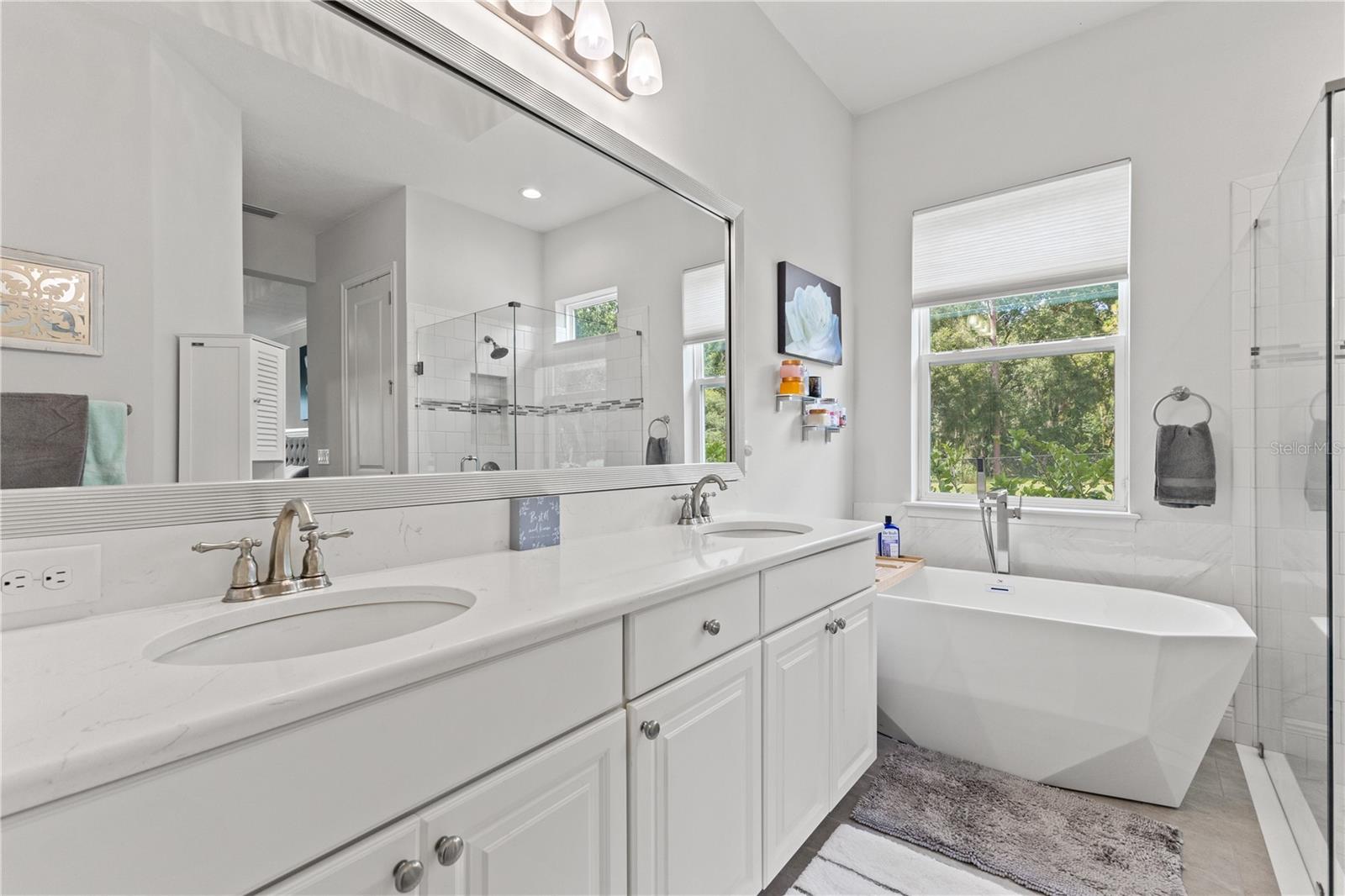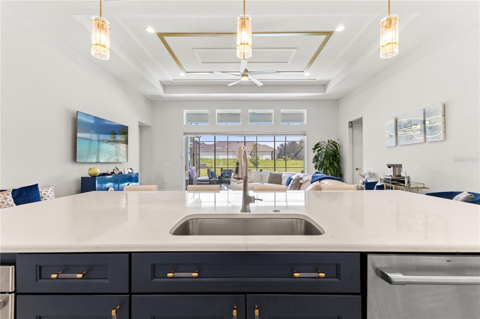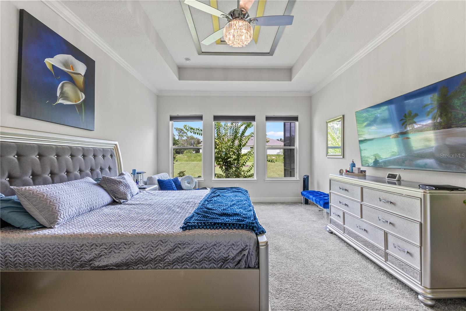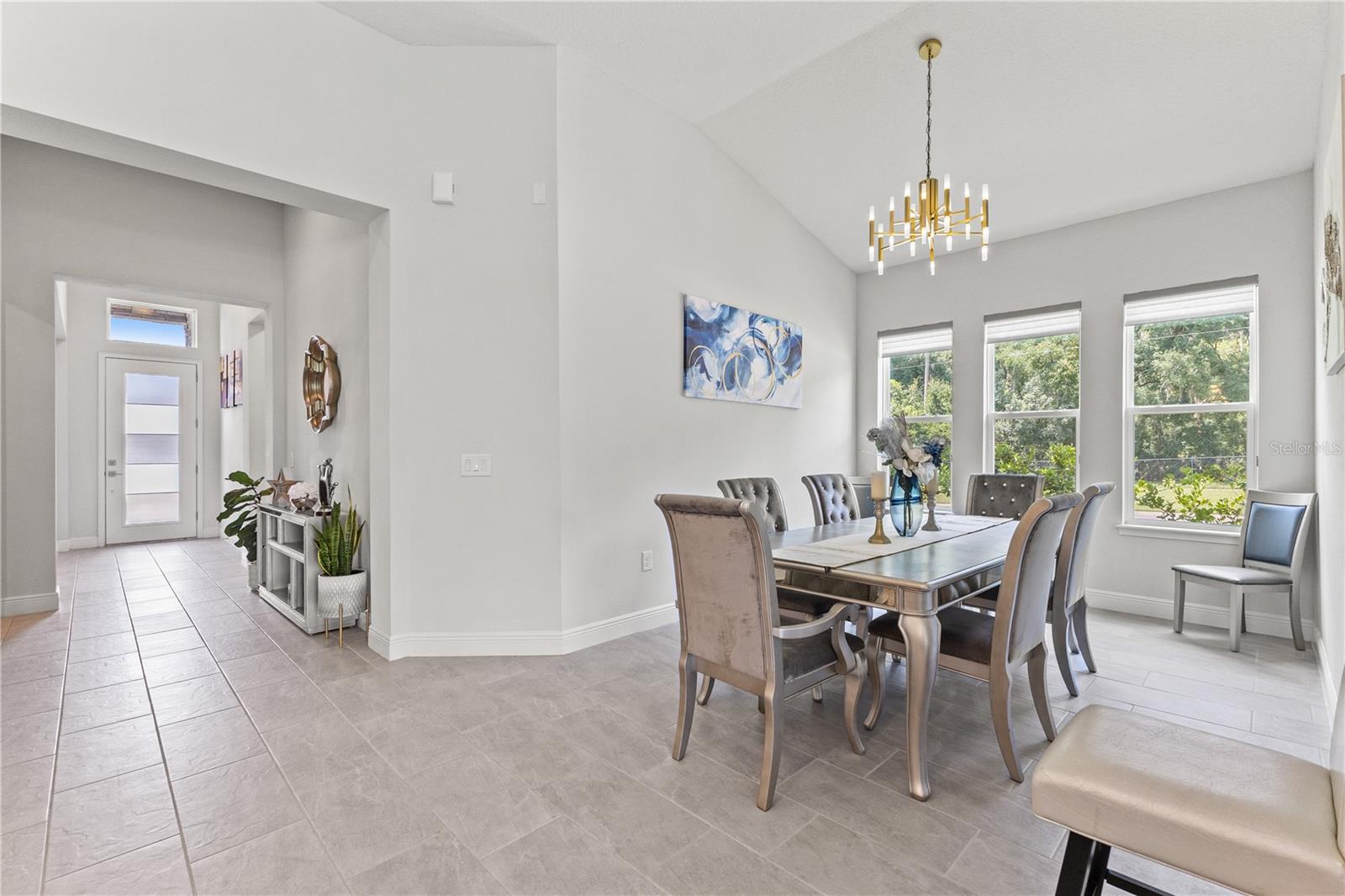Welcome to 13444 Trailing Moss, a stately residence on a large 1/3-acre corner lot in the prestigious Lake Jovita Golf & Country Club, an upscale, guard-gated community. Known for its scenic rolling hills, sparkling lakes, and resort-style amenities, Lake Jovita features two championship golf courses, tennis and pickleball courts, a fitness center, a community pool, a new dog park, and a beautiful park that sits right in your backyard. The South Course has even hosted USGA U.S. Open local qualifying events, adding to the community’s prestige. With over 3,000 square feet of living space on a single-story floor plan, this home was designed for both elegance and functionality. The upgraded layout includes three spacious bedrooms, three full bathrooms, and an expanded bonus room with stylish barn doors, perfect for entertaining, a media lounge with surround sound, or even a private retreat. Plus, there’s an additional home office at the front of the home with upgraded hardwood floors, ideal for those working remotely or needing a dedicated workspace. The split-bedroom layout offers exceptional privacy, and the master suite is a true retreat with a spa-like ensuite featuring a free-standing soaking tub, dual vanities, and a massive walk-in closet. At the heart of the home lies the chef’s kitchen, designed to impress both everyday cooks and gourmet entertainers. Outfitted with 42-inch soft-close cabinets and custom uppers, this kitchen offers ample storage and timeless style. The elegant cabinetry is paired with sleek quartz countertops, a large center island with bar seating, and upgraded stainless steel appliances, making meal prep and hosting a delight. Thoughtful touches like a walk-in pantry and custom lighting add both convenience and character. Soaring 12-foot ceilings in the common areas, paired with 10-foot ceilings in the bedrooms and 8-foot doors throughout, create an open, airy atmosphere that enhances the home’s sense of space and luxury. The family room showcases a panoramic slider, allowing seamless indoor/outdoor living and perfect views of the backyard retreat. Step outside into your own private resort. In the expansive backyard, you’ll find a dreamy heated saltwater pool and spa, fully screened-in for year-round enjoyment. The outdoor cooking area is perfect for poolside dining, while the home’s unique location backing up to the park allows you to stroll straight from your backyard into the community’s green space. Additional highlights include exquisite trim work throughout, a three-car tandem garage with abundant storage, an electric vehicle charger, and a whole-home water softener for added comfort. Every detail has been thoughtfully curated to blend luxury, practicality, and timeless style. At 13444 Trailing Moss, you’ll enjoy the perfect balance of refined living and relaxed Florida charm, all in one of the Tampa Bay area’s most sought-after gated golf course communities.