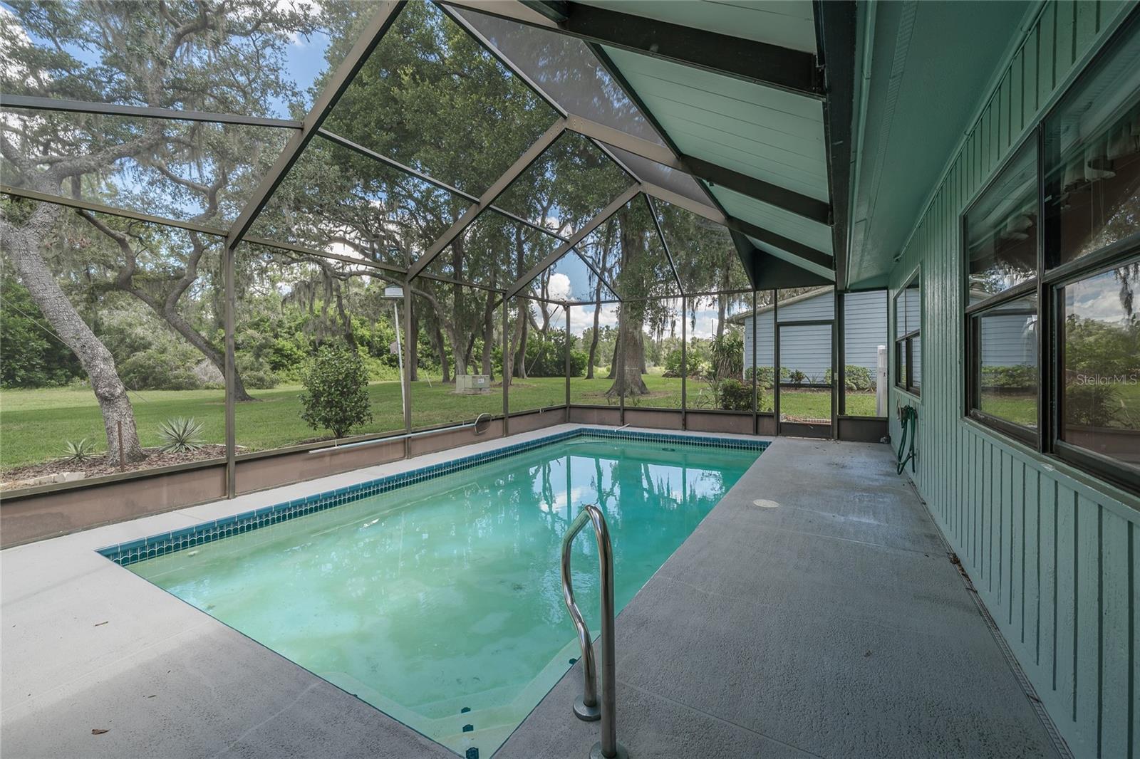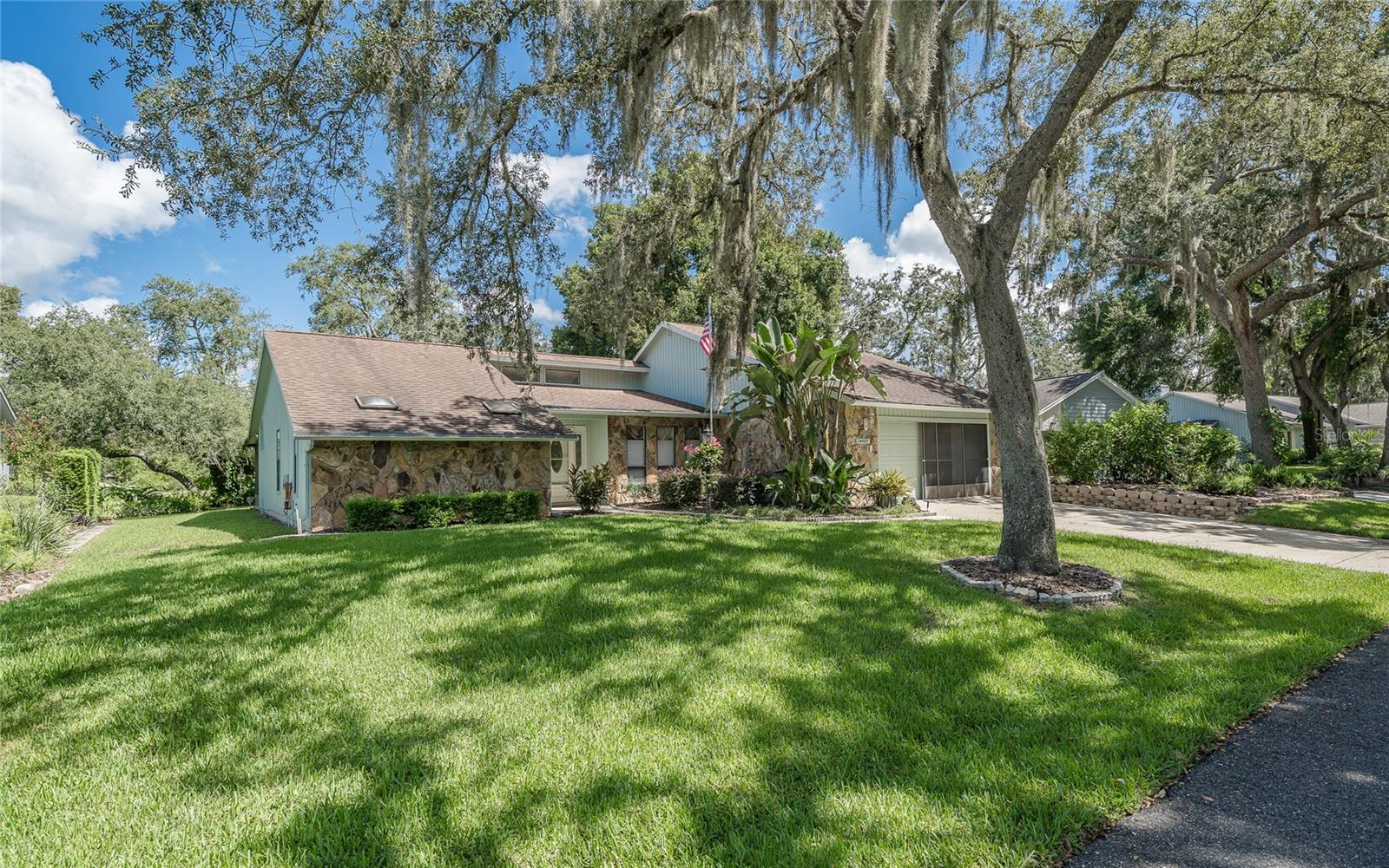 SOME PHOTOS HAVE BEEN VIRTUALLY STAGED. A TRUE FLORIDA LIFESTYLE AWAITS YOU HERE! This beautifully manicured 3/2/2 home trimmed with Zyrian stone is nestled in the trees and overlooks a scenic natural preserve. The great room with formal dining greets you with engineered wood flooring and volume ceilings - talk about a WOW effect! Custom French doors lead into the oversized Florida room which is a perfect place to enjoy the Super Bowl and so many other fun activities. The deluxe eat-in kitchen if fully applianced and is complete with solid surface counters and custom cabinets. It is open to the great room so the chef in the kitchen will never need to feel isolated. The inside laundry room is ready to use with the washer and dryer included. The bedrooms are split which is great for privacy. The spacious primary suite has an oversized walk-in closet and a luxurious bath with a walk-in shower plus garden tub. When you leave the Florida room, you'll enter an oversized screened lanai with vinyl enclosures which allow for year 'round enjoyment. Next you'll discover the inviting, caged in-ground pool! How much better can it get? The Whispering Oaks Estates community is a Master planned community with private roads, a recreation center and a super affordable HOA - this year, the annual dues are just $277 - that's ANNUAL not MONTHLY! The golf course property JUST SOLD to a new owner who has exciting plans to reopen the golf course! Soon you can enjoy a great country club lifestyle. And if you love convenience, the location is super central to so many places - I-75, Florida's famous gulf coast beaches, Tampa and Orlando and all of their attractions and amenities, Ocala, the charming downtowns of Dade City and Brooksville and so much more. The Rails to Trails hiking trails are nearby as well as the winding Withlacoochee River. Come see for yourself! LET'S MAKE A DEAL! NOW JUST $375,000!