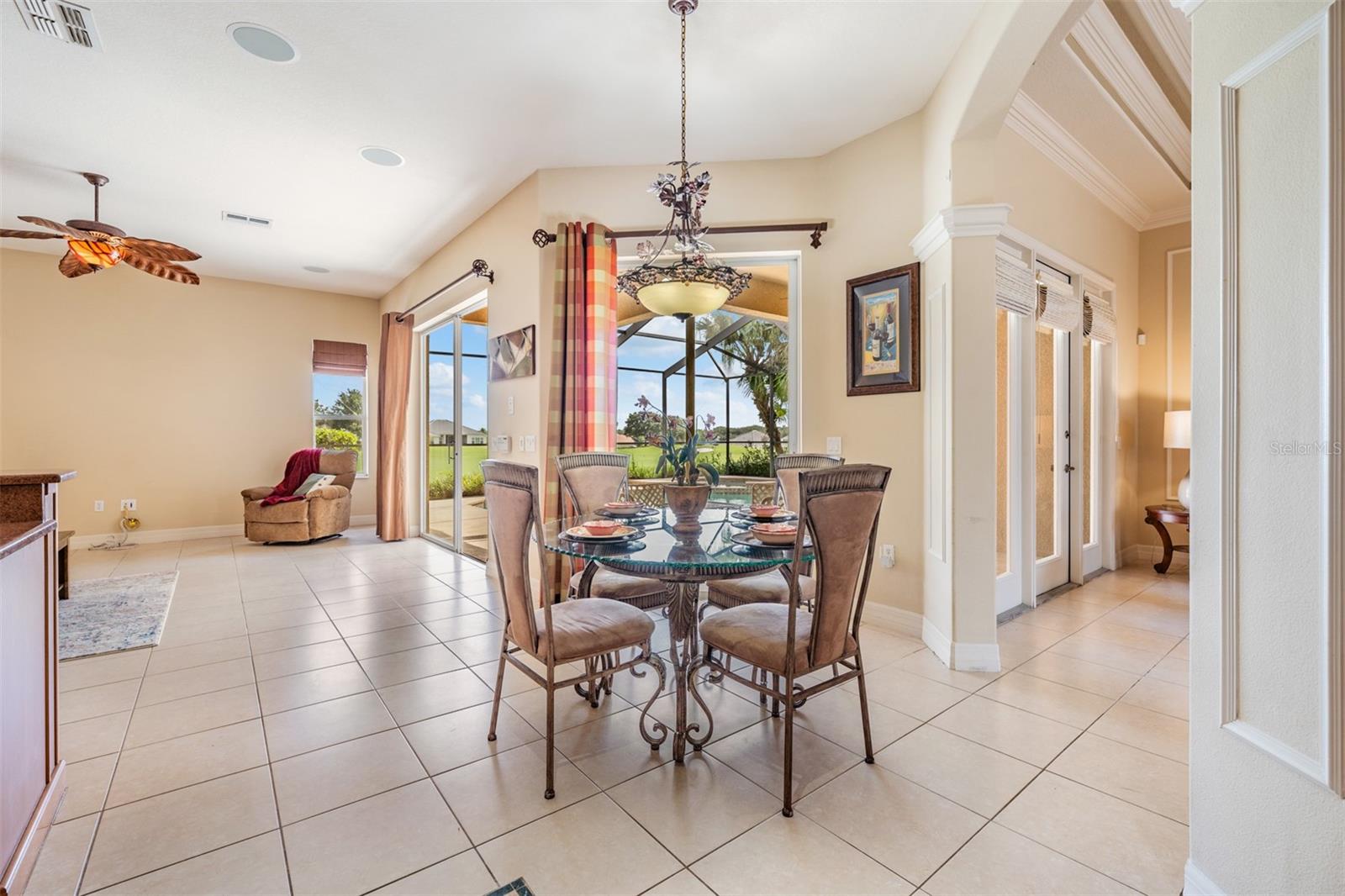 MOTIVATED SELLER in LAKE JOVITA GOLF & COUNTRY CLUB in the Rolling HILLS of East Pasco IS the place to BE! Behind the lushly landscaped, Security Guard GATED entrance, you will find Private winding streets around sparkling ponds and championship Golf course views, making this established community, the BEST KEPT SECRET! Here is your chance to live the DREAM situated on a STUNNING GOLF COURSE, in a custom 4-bedroom, 3-bath home with bonus flex space, perfectly positioned on a premium lot with breathtaking views. From the moment you enter through the double etched-glass doors into the tile foyer, you’ll notice the craftsmanship... columns, arches, niches, crown molding and detailed woodwork throughout. The open living and dining room offers a light, airy feel, with French doors that lead directly to the pool and lanai. A private office/den with double doors and large window overlooks the lush front landscaping. The spacious kitchen and family room combination is ideal for entertaining, featuring Silestone counters, wood cabinetry, center island, breakfast bar, stainless appliances including double ovens and French-door refrigerator plus a sunny breakfast nook with views of the pool and golf course. Step outside to your private oasis with a sparkling pool and spillover spa, perfect for relaxing as you watch golfers in the distance with 2 seating areas. The three-way split bedroom plan ensures privacy. The owner’s retreat boasts a tray ceiling, bay window seating area with pool access, and features a luxurious spa-like bath with dual vanities, Silestone counters, Columns framing the Roman soaking tub, and an oversized walk-in shower. Guest quarters at the rear of the home include a bonus flex room with plantation shutters... ideal for an in-law suite, home gym, or media room—plus a 4th bedroom, full bath, separate entrance, and pool access. The two additional bedrooms share a private wing with a full bath and laundry room. Recent updates include: Water Heater (2025), Bosch dishwasher, custom closet organizers and freshly landscaped backyard. New CARPET in front office. Some photos show rooms that were previously staged. Living in Lake Jovita Golf & Country Club IS a special lifestyle with low quarterly HOA (no CDD fees) that covers well-maintained common areas and a private neighborhood park with tennis, pickleball, basketball, walking trails, playground, dog parks, and open green space. Optional memberships give access to the clubhouse with two championship golf courses, clay tennis courts, fitness center, social events, dining options and jr olympic size pool. Located just minutes from a newer Publix Supermarket, the new Lagoon communities, Wiregrass Mall, Tampa Premium Outlets, The Grove at Wesley Chapel, Krate dining & entertainment and major highways... this home offers the perfect balance of tranquility and convenience—close to Tampa, but without the traffic! Priced thousands below appraisal due to Owner transfer...Don’t MISS this rare opportunity to LIVE the Lake Jovita Golf & Country Club lifestyle! CALL TODAY!