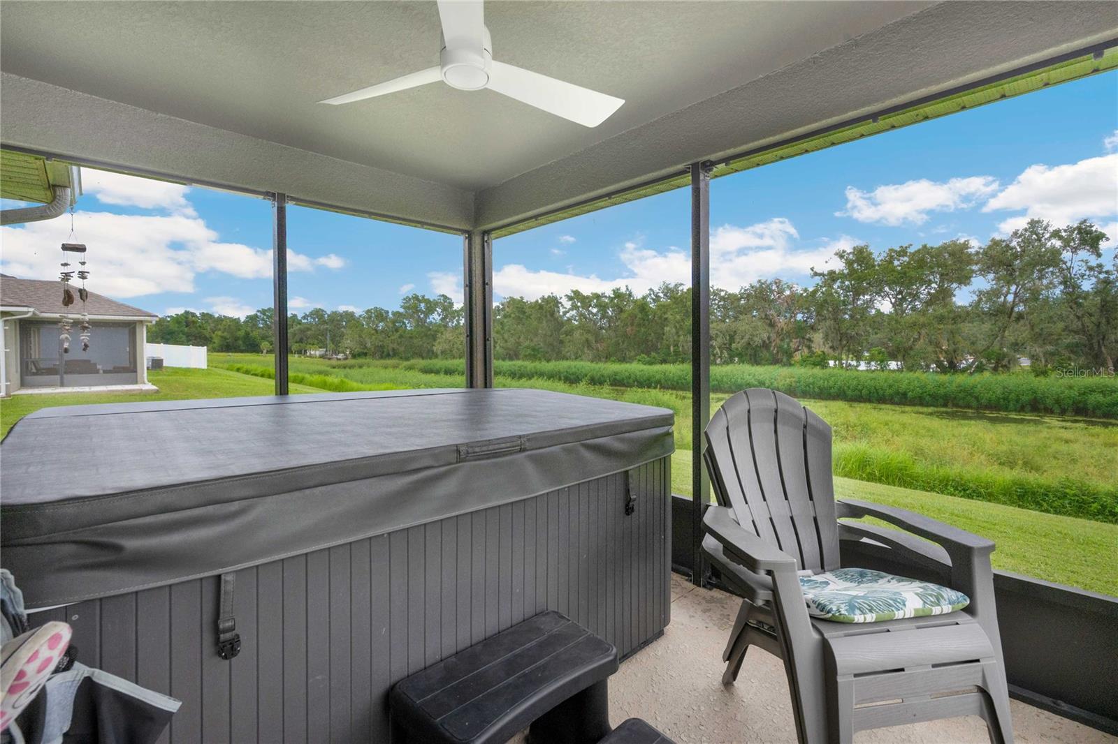 Welcome to your dream home in the highly desirable Abbey Glen community!Built in 2023, this immaculate 4bedroom 2 bath residence offers a perfect blend of comfort, style, and functionality- all in a quiet neighborhood with no rear neighbors.Step inside to discover an bright, open-concept floor plan with elegant tile flooring throughout the main living areas and plush carpeting in the bedrooms. The spacious kitchen is a chef’s dream, featuring white cabinetry, granite countertops, stainless steal appliances, a large island with breakfast bar seating, and a generous pantry. Enjoy flexible living with an oversized living room and a versatile bonus/flex room ideal for an home office, media room, or playroom. The luxurious primary suite offers a walk in closet and an en-suite bath with dual sinks and a walk in shower. Unwind outdoors in your screened-in lanai with a private hot tub and peaceful green views-no rear neighbors, just nature! Additional highlights include an indoor laundry room, an 2-car garage, upgraded fixtures and All appliances are included. Conveniently located near shopping, dining, and major roadways, this home truly has it all! Don’t miss your chance to own this stunning home in a quiet, friendly neighborhood—schedule your private showing today!