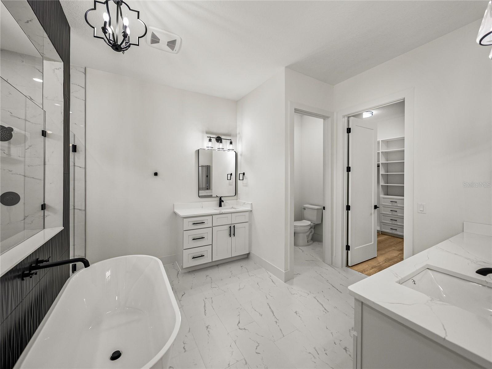 A fresh life of luxury begins in this remarkable 3,197 sq ft custom home built in 2025, perfectly placed at the end of a cul-de-sac within an intimate eight-home community. Sitting on just over an acre, close to all that Dade City has to offer, this 5 bedroom, 4 bath, 3 car garage property delivers a thoughtful layout, high-end finishes, and plenty of space indoors and out with 4,667 sq ft under roof. A charming front porch greets you with classic board-and-batten accents, modern colors, and just the right touch of farmhouse character. Inside, soaring vaulted ceilings with warm wood beams immediately draw the eye upward, setting the tone for the expansive open layout. Luxury wood-look vinyl plank floors run seamlessly throughout much of the home, connecting the living room, dining area, and chef’s kitchen into one flowing, light-filled space. Large sliding glass doors open to a generous covered back porch, extending your living space outdoors for easy entertaining or quiet evenings. The kitchen was designed for beauty, function, and entertainment, featuring striking two-toned cabinetry with matte black hardware, a built-in double oven and microwave, a cooktop, a stainless steel dishwasher, and a refrigerator. A massive center island offers breakfast bar seating, while glass-faced upper cabinets and a spacious walk-in butler’s pantry provide abundant storage and display space. Privately tucked near the front of the home, the first of two suite-style bedrooms offers a one-of-a-kind retreat. Its spa-inspired bathroom includes a dual-entry walk-through shower, a freestanding soaking tub, two separate vanities, and a large custom-organized walk-in closet. Down the hall are a full guest bath, a guest bedroom or office, and a well-appointed laundry room. On the opposite side of the home, a third bedroom with its own private ensuite and walk-in closet offers plenty of privacy, while two additional bedrooms share a beautifully designed Jack and Jill bath with dual sinks and a walk-in shower. The oversized three-car garage is ideal for car enthusiasts or anyone who values extra space. Every detail in this home was carefully chosen to create a truly fresh start for its very first owner. Contact us today to arrange your private showing and experience this exceptional property for yourself.