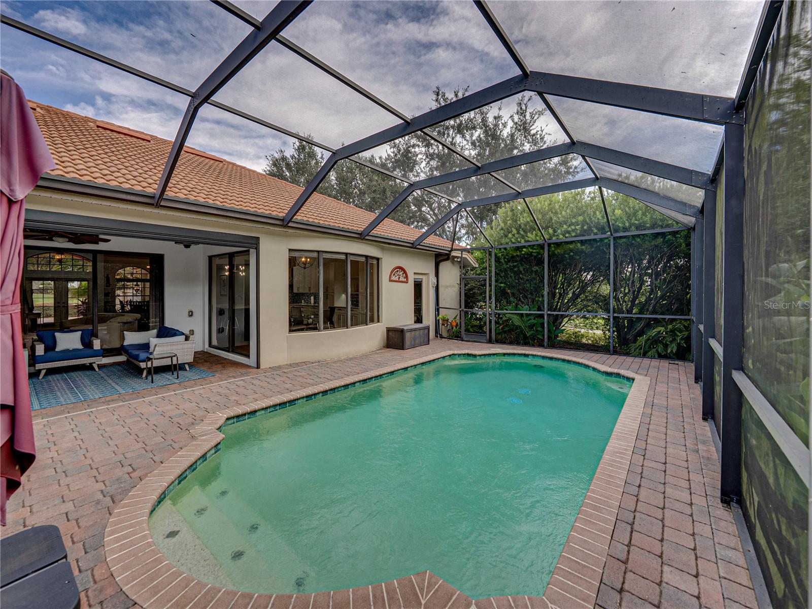 A lifestyle of luxury and leisure awaits in this fully renovated 3 bedroom, 3 bath, 3 car garage pool home, perfectly set on a corner lot just steps from Lake Jovita’s incredible amenities. A long paver drive leads to manicured landscaping and a welcoming covered entry. Inside, soaring ceilings and an open, light-filled layout create an immediate sense of elegance, while sweeping views of the pool create a feeling of tranquil Florida living. The brand-new kitchen is a showpiece, designed for daily living and entertaining. Stone countertops, custom cabinetry, new stainless steel appliances, and an eye-catching backsplash elevate the space, while the central island with multiple dining options: a breakfast bar, formal dining area, and bay-window dinette, make gatherings and everyday dining effortless. An expansive 18x21 living room brings the outdoors in with triple sliding doors that open to the screened pool deck, where covered seating, a spa, and a sparkling pool await behind the privacy of lush landscaping. A dedicated office near the entry offers the perfect retreat for work or study. The primary suite is a serene sanctuary with two walk-in closets and a fully reimagined ensuite bath featuring a dual vanity, designer lighting, and a custom glass surrounded walk-in shower with multiple showerheads. Two additional bedrooms are thoughtfully placed: one with a walk-in closet and nearby access to an updated guest bath, and the other with its own ensuite access to the full pool bath for seamless convenience. Several major upgrades add to this home’s incredible value: a whole-house generator with an owned 250 gallon propane tank, 2024 water heater, new luxury vinyl plank flooring throughout most of the home, new LED lighting, an updated kitchen and bathrooms, pool equipment, custom blinds, an outdoor electric screen, and so much more. It is set within the highly regarded Lake Jovita community that includes a 24 guarded gate and access to a playground, basketball and pickleball courts, a dog park, and walking trails. Optional membership packages to the Golf and Country Club can include access to 2 18-hole golf courses, a clubhouse with a restaurant and fitness center, a Jr. Olympic size swimming pool, tennis courts, and more! This home is the epitome of comfortable, updated, resort style living in a fantastic location. Do not miss you chance to experience it in person- call today!