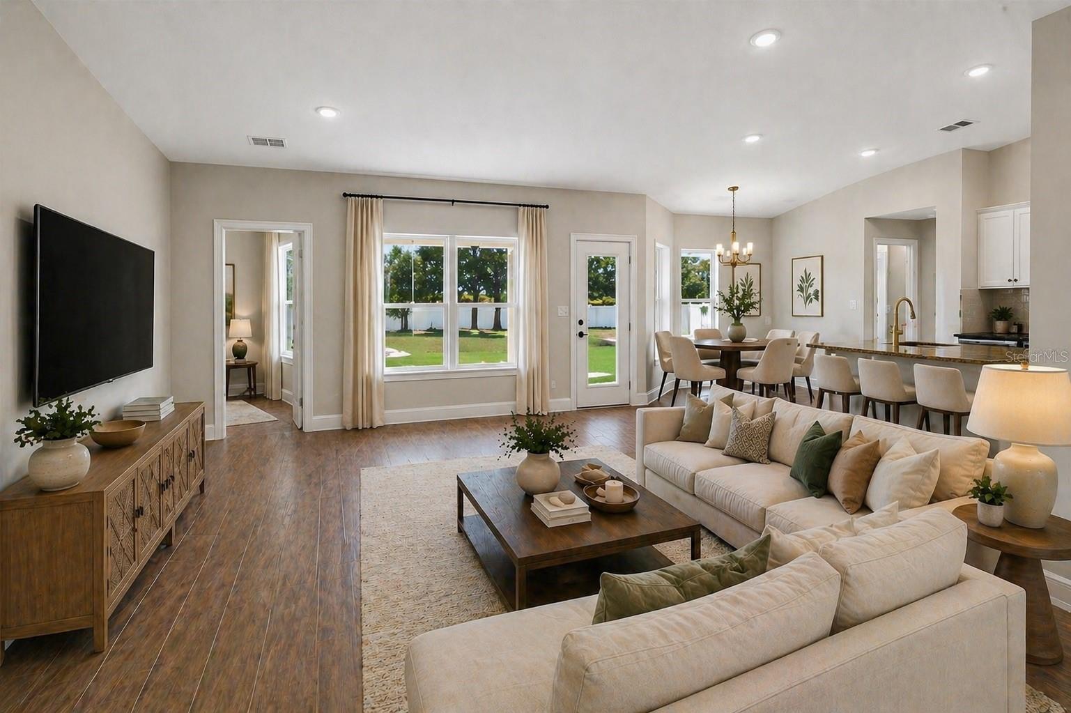 Photos may not represent the actual home and are used to illustrate the floor plan, layout, and features. Finishes and elevations may vary. Why wait to build? This brand-new 2330 sq ft Adams Homes estate home offers 4 bedrooms, 2 bathrooms, a living room, and a separate family room on a full one-acre homesite in Hill Country Estates. Step inside to an open, spacious layout with ceramic tile in main areas, plush carpeted bedrooms, vaulted ceilings, and beautiful backyard views. The modern kitchen features snow soft-close cabinetry, granite countertops, a deep drawer bank, trash/recycle pullout, pantry, breakfast nook, and generous countertop space perfect for everyday living and entertaining. The owner’s suite includes dual walk-in closets, a tiled shower, and relaxing garden tub. All bathrooms are equipped with matching granite and soft-close cabinetry. Exterior features include 42" stone accents, lush landscaping, full yard irrigation, and a 3-car side-entry garage with top-row windows and separate openers. Additional upgrades include 5¼" baseboards, double-pane low-E windows, a 50-gallon water heater, modern 5-panel doors, and a large covered lanai ideal for outdoor dining or a future pool. NO CDD and NO flood zone. Enjoy estate-style privacy with the convenience of Dade City’s charming shops, restaurants, and annual events just minutes away. Interested in seeing the quality and layout firsthand? Visit the Adams Homes model home at Abbey Glen to find out more information. Ready to move now and start living the lifestyle you’ve been waiting for! Interested in seeing the quality and layout firsthand? Visit the Adams Homes model home at Hill Country Estates to explore this floorplan in person. Model Address: 37423 Hidden View Circle, Dade City, FL 33523 Some photos have been virtually staged to help buyers visualize the property's potential. The property will be shown unfurnished