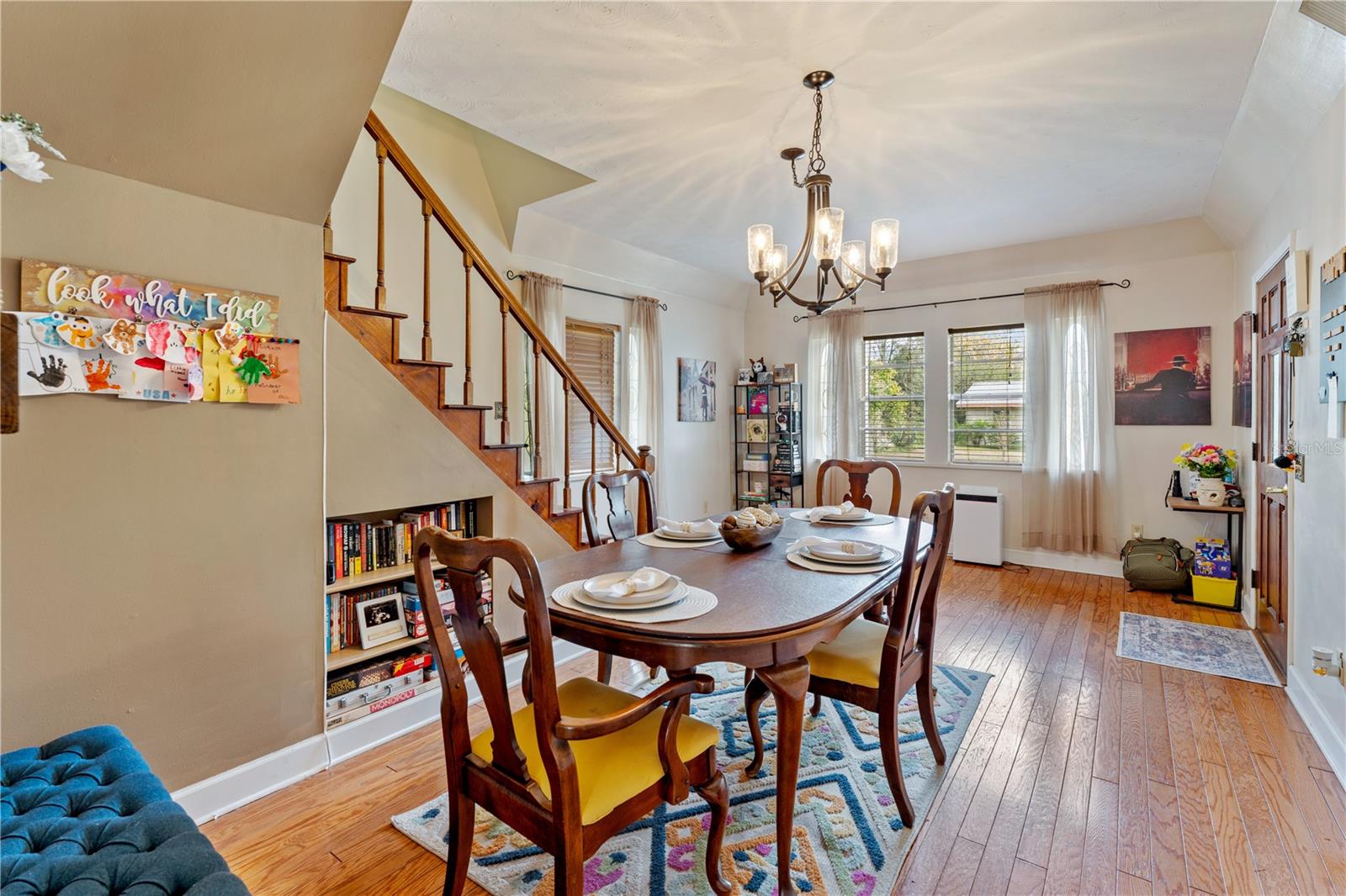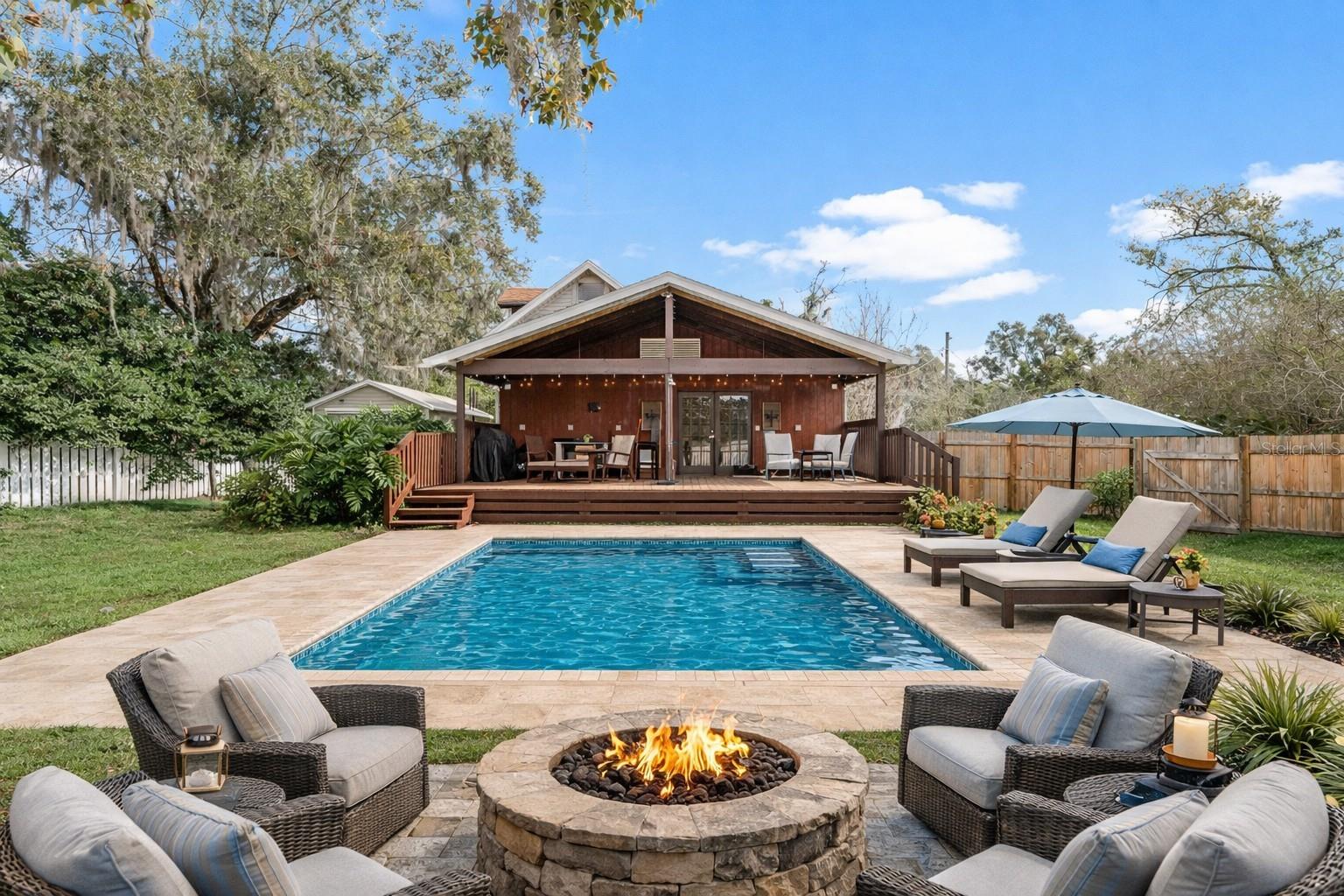 One or more photo(s) has been virtually staged. Built in 1939, this charming 4-bedroom, 2-bath, two-story home is rich in character and offers endless potential, situated on a spacious lot with room to grow. Original details shine throughout, including stained glass windows in the primary bedroom and entryway, hardwood floors throughout the first floor, and a beautiful craftsmanship staircase that highlights timeless detail and quality construction. The home features a dedicated dining area and a warm, inviting layout with unique architectural touches. Outdoors, enjoy a fire pit perfect for entertaining, a shed ideal for gardening or additional storage, a large, fenced backyard, and an expansive rear deck. The roof is less than 5 years old, providing added peace of mind. Conveniently located near shopping, dining, and entertainment in downtown Dade City, this property is a fantastic opportunity for homeowners or investors alike. Don’t miss your chance to make this classic home your own.