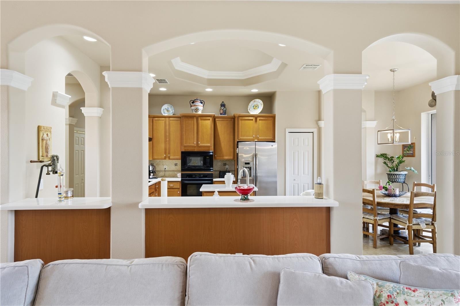 This beautiful 3 bedroom, 3 bath room, 3-car garage home in gated Lake Jovita Golf and Country Club, features ample arches, columns, niches, moldings, and tray ceilings throughout its 2,153 sf of living area. The open floor plan is perfect for entertaining and its numerous windows allow for an abundance of natural light. Sitting on a 1/2 acre lot with scenic views towards the front and the backyard facing the golf course, Lake Jovita is conveniently located 20 minutes from the shopping, dining, and entertainment scene of Wesley Chapel and nearby the small historic feel of downtown Dade City. It offers low quarterly HOA fees covering common areas and a community park. A clubhouse, two championship golf courses, gym, tennis courts, pool, and dining. Ready to enjoy this stunning property? Make it yours! *Membership to the clubhouse is optional. *Grass color in 1 aerial photo has been 'virtually improved'; no other changes.
