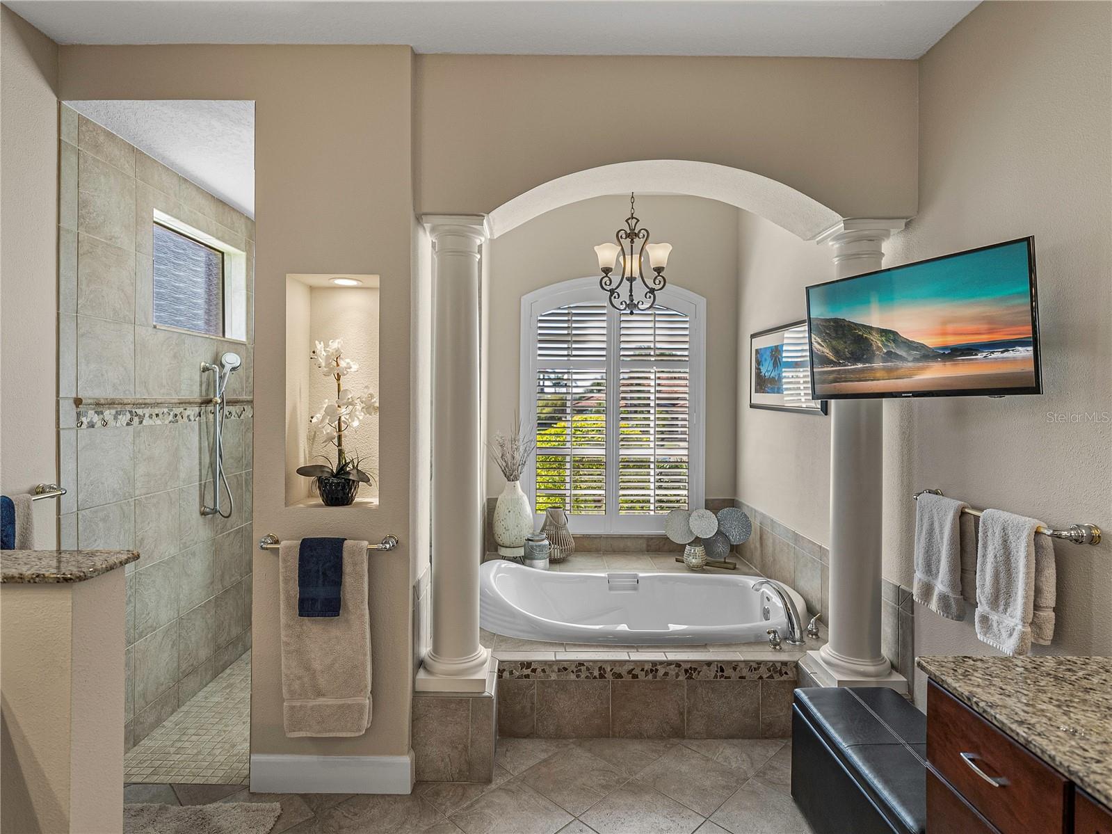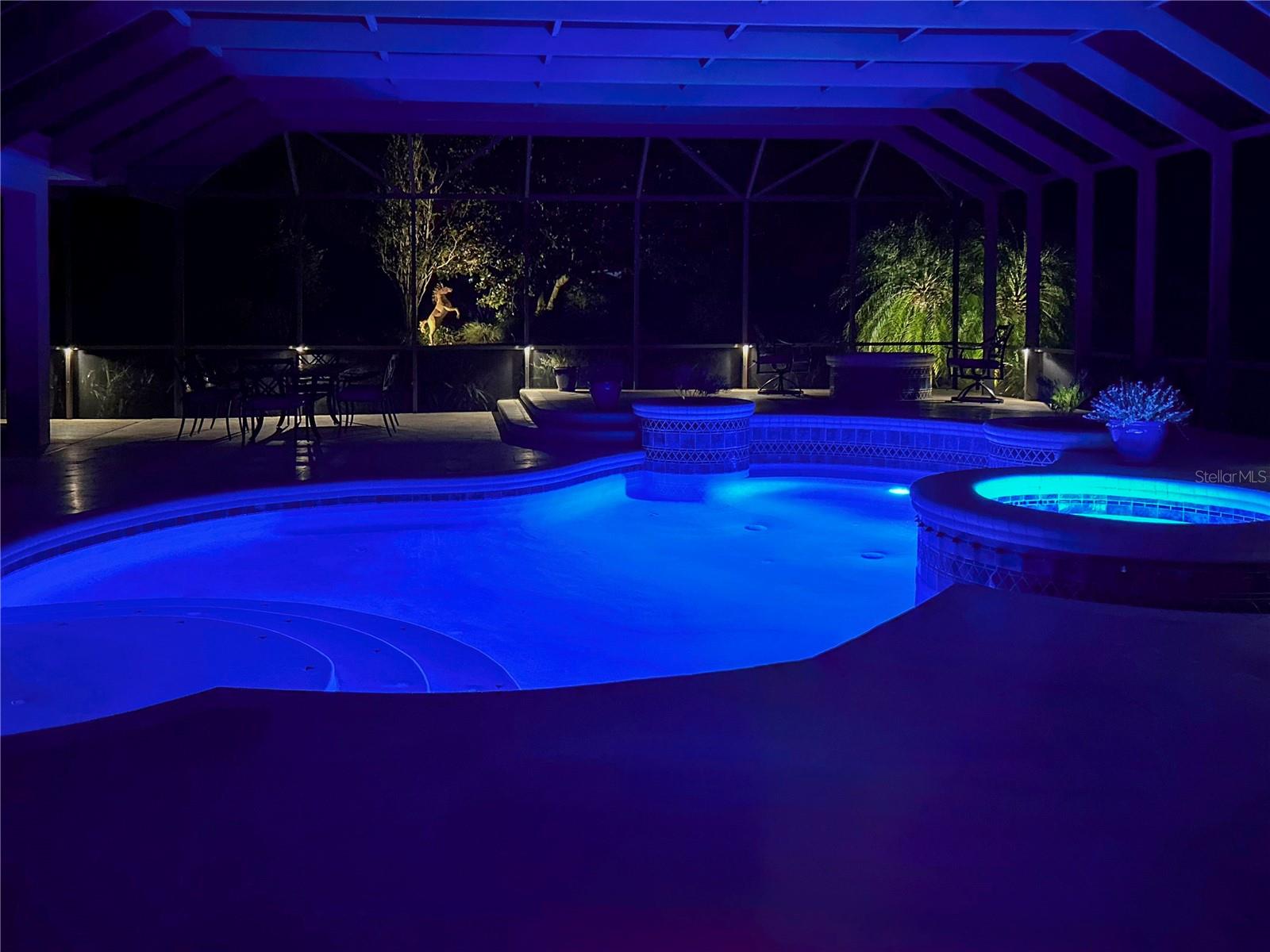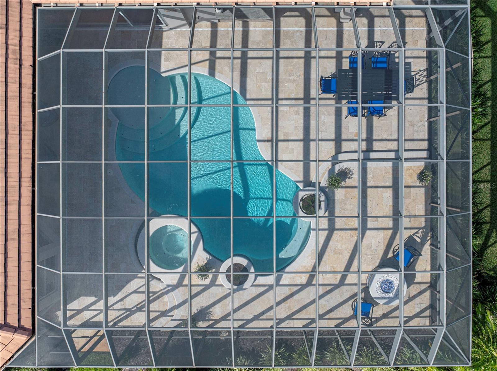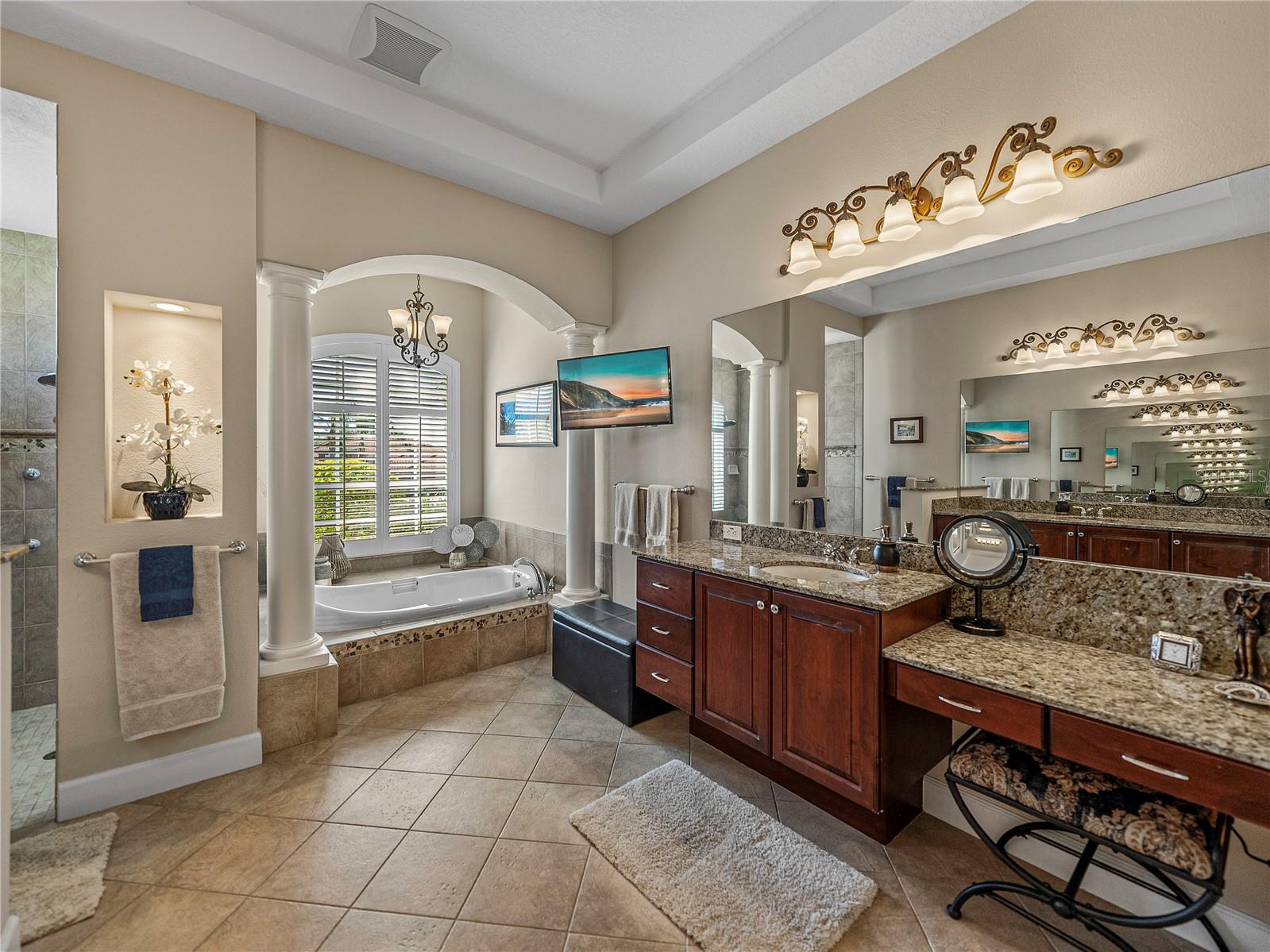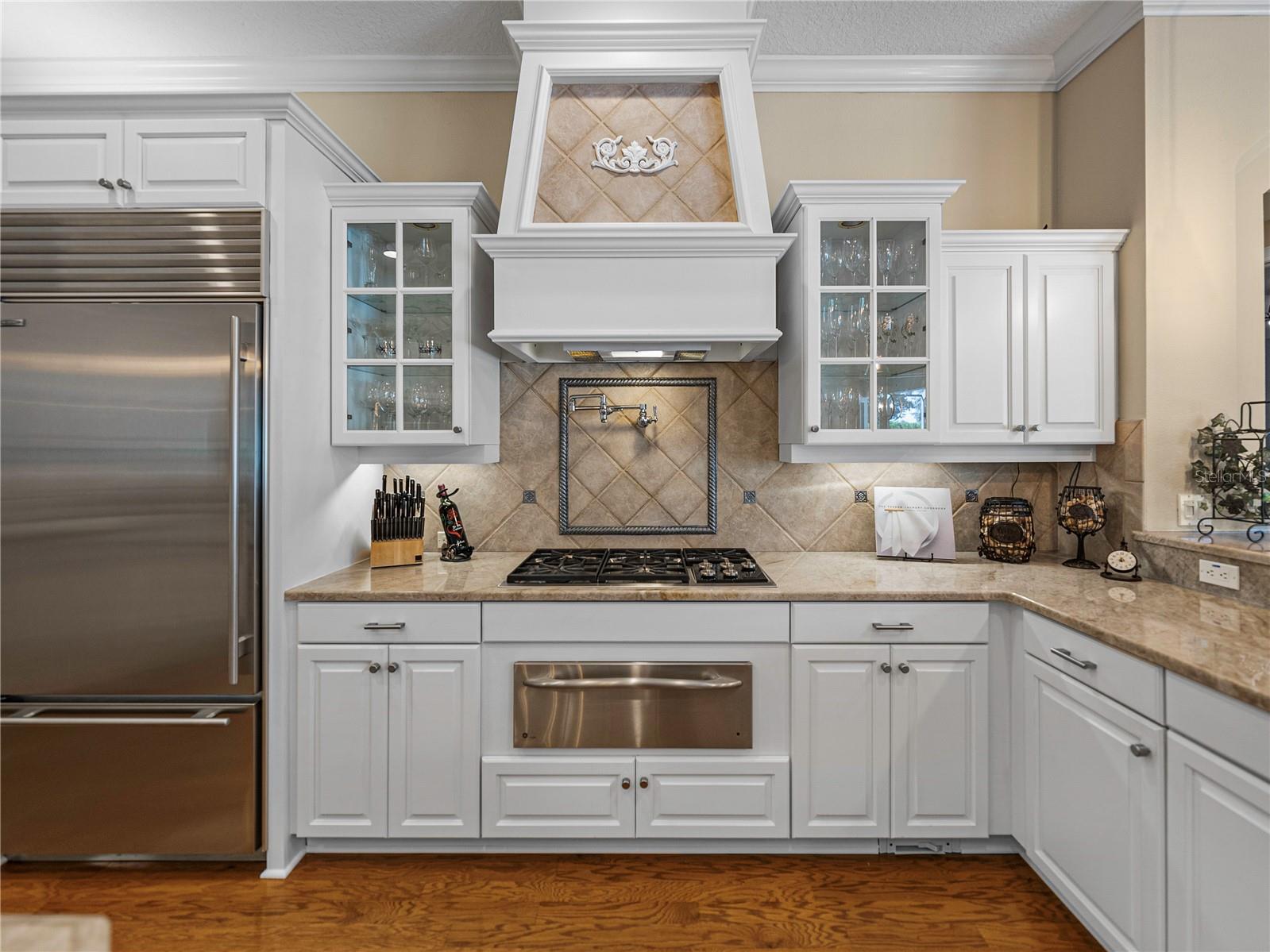 Extraordinary luxury home, located in the exclusive, gated community of Lake Jovita Golf and Country Club. This stunning home is situated among the tranquil rolling hills, on an expansive and beautifully landscaped ¾ acre lot. Special exterior features include a large and welcoming covered front porch, a circular paver driveway and sidewalks, plus a large private back yard. Discerning buyers will appreciate the quality construction, upgrades and finishes throughout this well-appointed home. The split bedroom floor plan includes all the spaces desired for today’s lifestyle, beginning with the office and adjacent half-bathroom, formal dining and living room with gas fireplace, and a fabulous open kitchen and family room combo. The guest wing of the home includes 3 guest bedrooms, 2 guest bathrooms and a bonus room with a new built-in wine bar, electric wall fireplace and access to the lanai. The highly updated kitchen is loaded with beautiful, refinished cabinetry and plenty of quartz countertop workspace, including a center island and bar, with seating for 4, a breakfast nook and a large walk-in pantry. Professional-grade appliances include a Sub-Zero refrigerator, Wolf 5-burner gas cooktop, exhaust hood, and a pot-filler. New Wolf double ovens, microwave and Bosch dishwasher installed in 2022. Large panoramic sliding glass doors in the living room, family room and bonus room provide abundant natural light and open to the massive lanai oasis with 2 covered areas, new travertine tile decking, an over-sized pool and spa with Pentair pool lighting, a fire pit and outdoor kitchen. The spacious primary bedroom includes a seating area, and two large walk-in closets with custom California Closet built-ins, plus a splendid ensuite bathroom, with large double vanities, a roomy walk-in shower, soaking tub and private water closet. New systems and numerous upgrades, have been completed during the past 5 years, including: a whole house Generac 22kw generator, whole house water purification system, Trane air conditioner and thermostats, Permakote Roof coating with 15 year warranty, new water heater, smoke and carbon monoxide detectors, digital door locks, new irrigation well tank with irrigation switch, gorgeous landscape lighting, plus new interior paint, shutters and hardwood flooring throughout the home, with tile flooring in the bathrooms and laundry room. Also, new frameless shower doors in all baths, remote control shades on the sliding glass doors in the family and bonus room, plus updated interior light fixtures. The oversized 3-car garage has New Age stone composite tile flooring and plenty of room for storage in the garage AND the attic. Lake Jovita is a warm and welcoming, gated, resort community with 2 championship golf courses, tennis courts, fitness center, community pool, basketball and pickleball courts, a beautiful park with paved walking path, a playground and separate dog parks for small and larger dogs. We are conveniently located near excellent shopping, restaurants, medical & educational facilities, and unlimited entertainment options. Located only 6 miles from I-75, with easy access to other major highways and two international airports. Don’t miss your opportunity to own this special home and enjoy all that Lake Jovita and the Greater Tampa & Orlando Region have to offer.