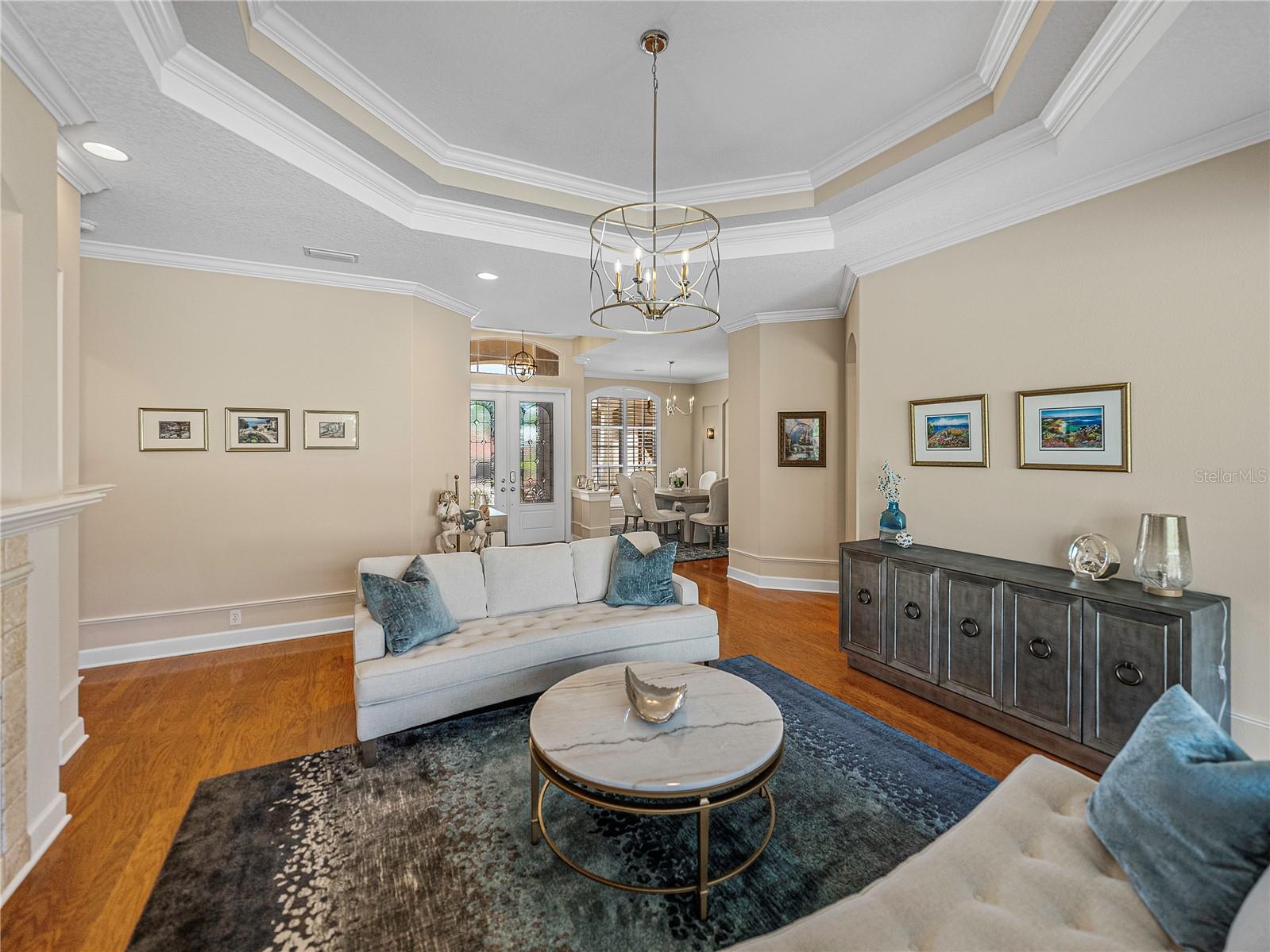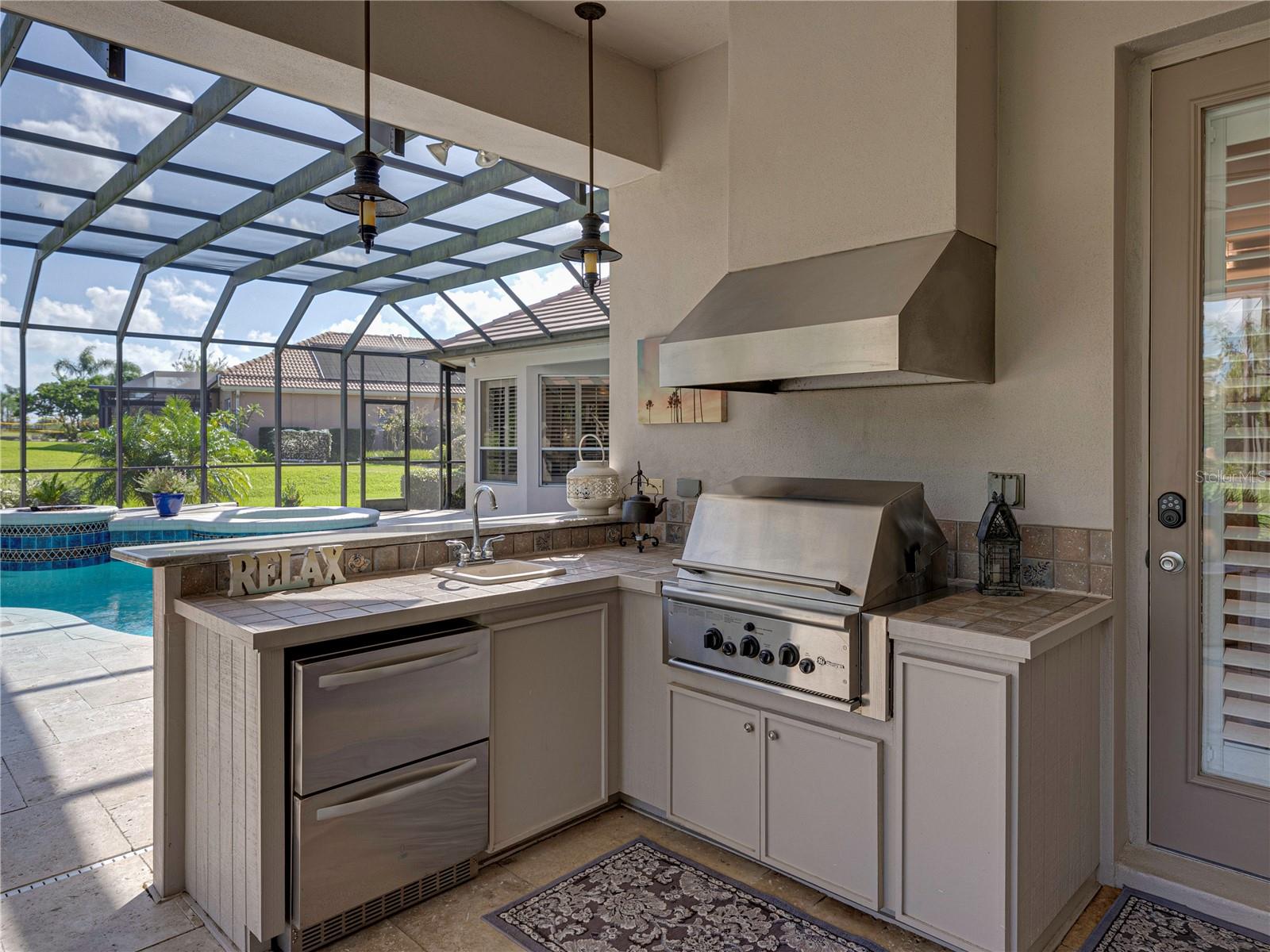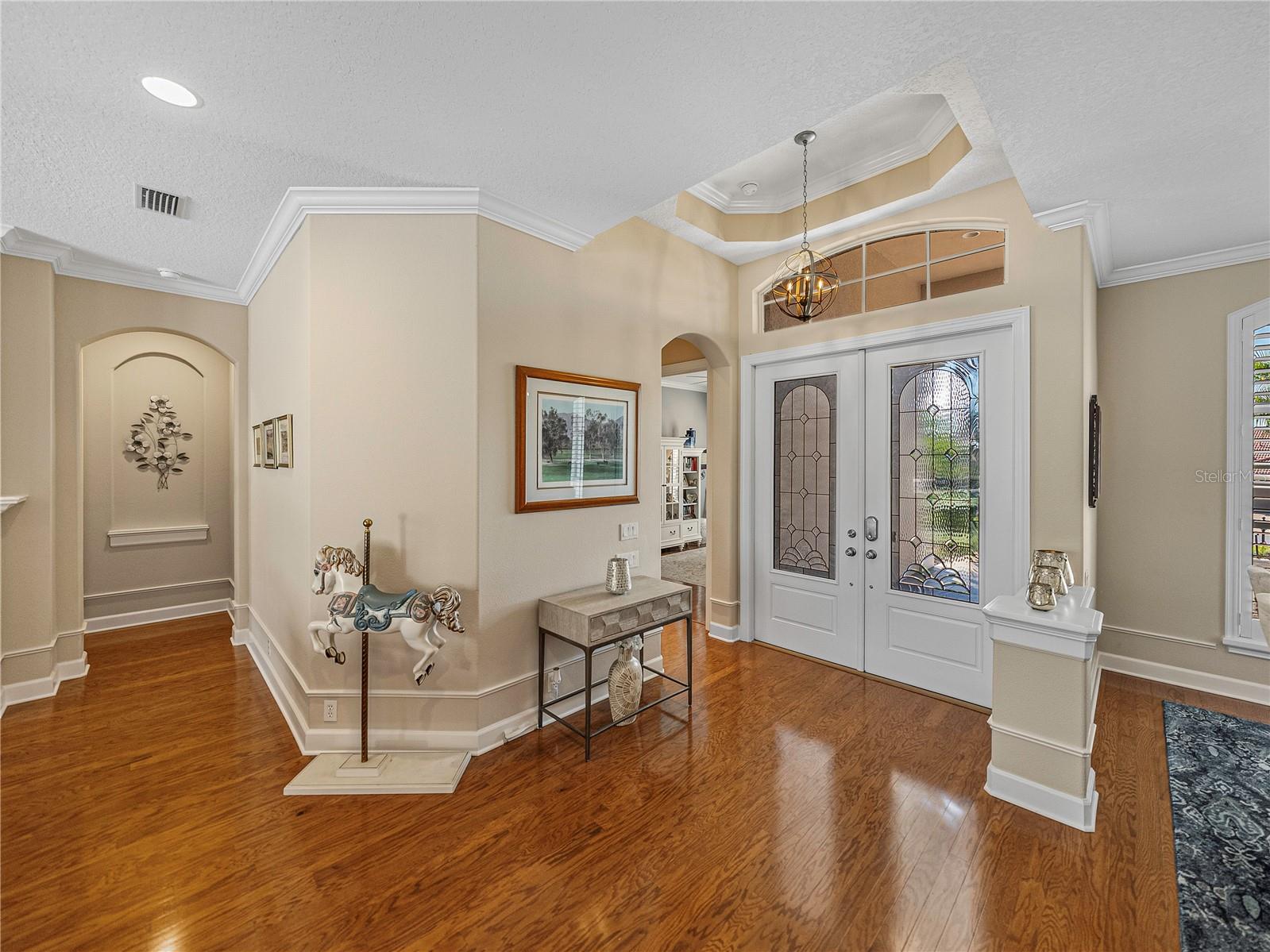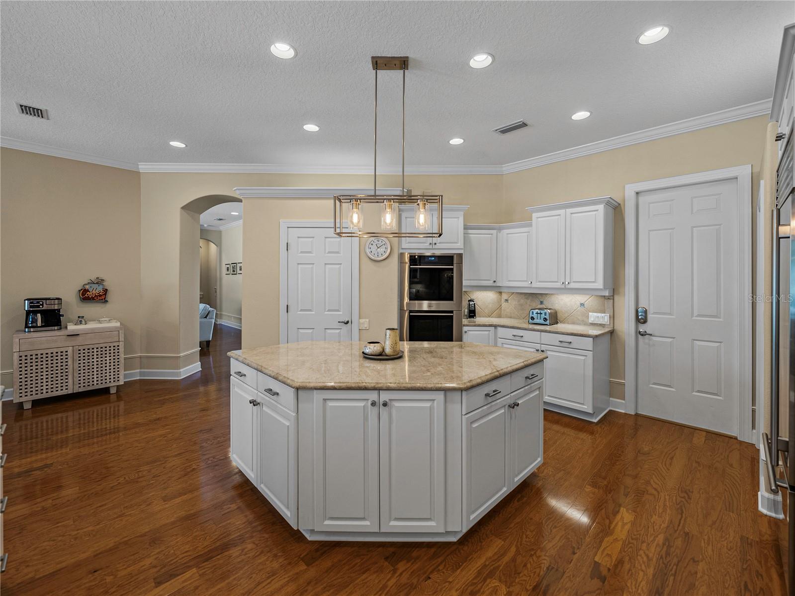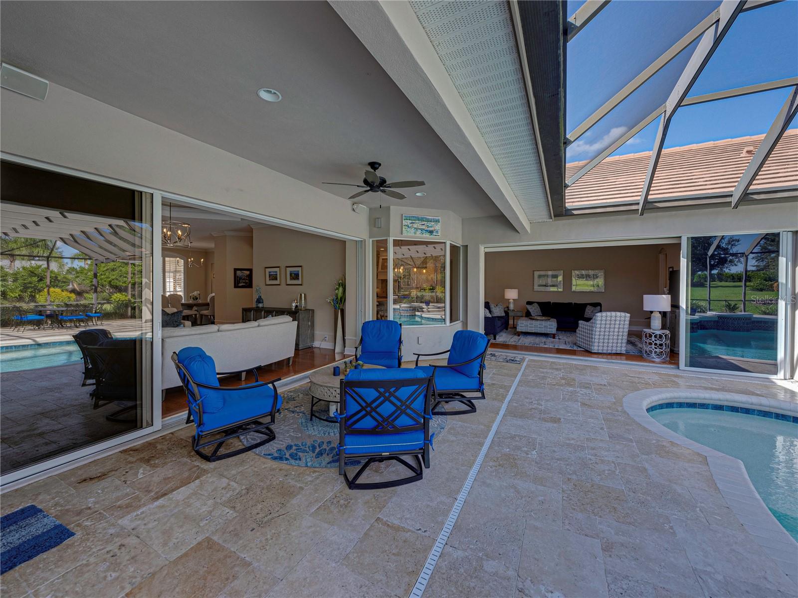 Extraordinary luxury home, located in the exclusive, gated community of Lake Jovita Golf and Country Club. This stunning home is situated among the tranquil rolling hills, on an expansive and beautifully landscaped ¾ acre lot. Special exterior features include a large and welcoming covered front porch, a circular paver driveway and sidewalks, plus a large private back yard. Discerning buyers will appreciate the quality construction, upgrades and finishes throughout this well-appointed home. The split bedroom floor plan includes all the spaces desired for today’s lifestyle, beginning with the office and adjacent half-bathroom, formal dining and living room with gas fireplace, and a fabulous open kitchen and family room combo. The guest wing of the home includes 3 guest bedrooms, 2 guest bathrooms and a bonus room with a new built-in wine bar, electric wall fireplace and access to the lanai. The highly updated kitchen is loaded with beautiful, refinished cabinetry and plenty of quartz countertop workspace, including a center island and bar, with seating for 4, a breakfast nook and a large walk-in pantry. Professional-grade appliances include a Sub-Zero refrigerator, Wolf 5-burner gas cooktop, exhaust hood, and a pot-filler. New Wolf double ovens, microwave and Bosch dishwasher installed in 2022. Large panoramic sliding glass doors in the living room, family room and bonus room provide abundant natural light and open to the massive lanai oasis with 2 covered areas, new travertine tile decking, an over-sized pool and spa with Pentair pool lighting, a fire pit and outdoor kitchen. The spacious primary bedroom includes a seating area, and two large walk-in closets with custom California Closet built-ins, plus a splendid ensuite bathroom, with large double vanities, a roomy walk-in shower, soaking tub and private water closet. New systems and numerous upgrades, have been completed during the past 5 years, including: a whole house Generac 22kw generator, whole house water purification system, Trane air conditioner and thermostats, Permakote Roof coating with 15 year warranty, new water heater, smoke and carbon monoxide detectors, digital door locks, new irrigation well tank with irrigation switch, gorgeous landscape lighting, plus new interior paint, shutters and hardwood flooring throughout the home, with tile flooring in the bathrooms and laundry room. Also, new frameless shower doors in all baths, remote control shades on the sliding glass doors in the family and bonus room, plus updated interior light fixtures. The oversized 3-car garage has New Age stone composite tile flooring and plenty of room for storage in the garage AND the attic. Lake Jovita is a warm and welcoming, gated, resort community with 2 championship golf courses, tennis courts, fitness center, community pool, basketball and pickleball courts, a beautiful park with paved walking path, a playground and separate dog parks for small and larger dogs. We are conveniently located near excellent shopping, restaurants, medical & educational facilities, and unlimited entertainment options. Located only 6 miles from I-75, with easy access to other major highways and two international airports. Don’t miss your opportunity to own this special home and enjoy all that Lake Jovita and the Greater Tampa & Orlando Region have to offer.