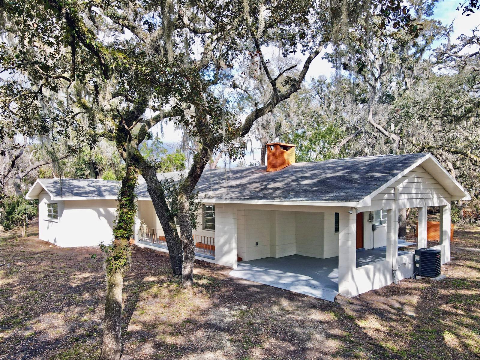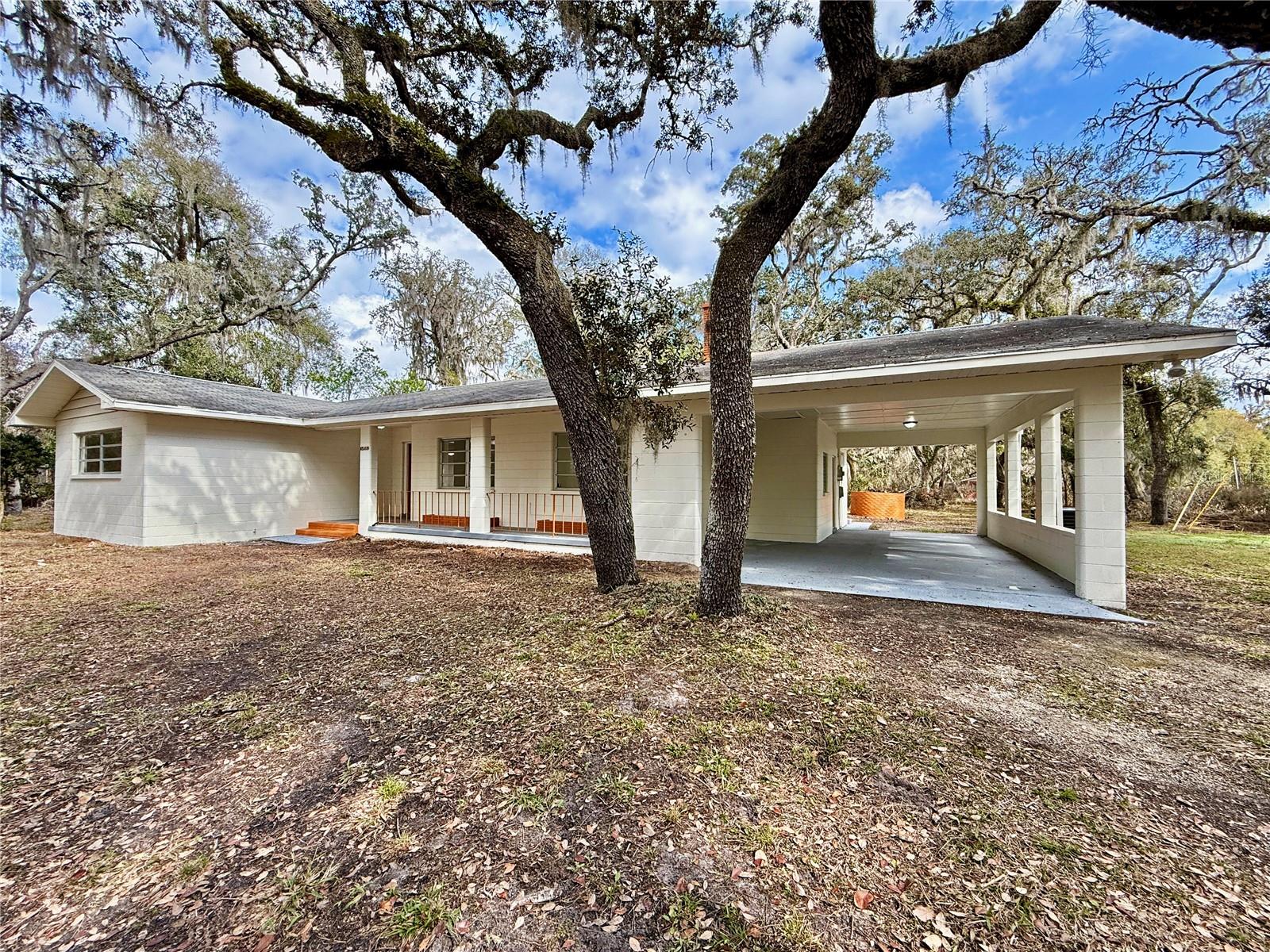***BRAND NEW ROOF WILL BE INSTALLED AT CLOSING*** MODERN LUXURY meets timeless Old FLORIDA CHARM beneath a canopy of mature oak trees draped in Spanish moss. This BEAUTIFULLY REMODELED home sits on a rare OVERSIZED HOMESITE of over 1/3 acre, offering shade, privacy, and a peaceful natural setting. Situated on a UNIQUE INSIDE-CURVE CORNER LOT, the property features a CIRCULAR DRIVEWAY and DRIVE-THROUGH CARPORT IN A PORTE-COCHÈRE DESIGN, connected to the entrance by a long COVERED FRONT PORCH. Inside, the home showcases a BRIGHT OPEN-CONCEPT LAYOUT with large PORCELAIN TILE FLOORING throughout. The BRAND-NEW DESIGNER KITCHEN features shaker cabinetry, stainless steel appliances, modern lighting, and a stunning QUARTZ WATERFALL ISLAND that anchors the living space. The spacious living room is highlighted by a charming BRICK FIREPLACE. Both bathrooms have been BEAUTIFULLY UPDATED with SPA-STYLE TILE SHOWERS, QUARTZ VANITIES, and MODERN FIXTURES. The home also offers 3 SEPARATE ENTRANCES, creating flexibility for a home office, guest suite, or multi-generational living. With a NEWER AC, a BRAND NEW ROOF installed prior to closing, NEW KITCHEN, BATHROOM, FLOORING, FRESH PAINT, and NO HOA. this TURNKEY PROPERTY offers both COMFORT & FREEDOM. Conveniently located near State Rd 50 (Cortez Blvd) with direct access toward Orlando, the home is also minutes from I-75, the famous Withlacoochee State Trail, and Cypress Lake Preserve — perfect for nature lovers and outdoor enthusiasts. Schedule your private showing today!