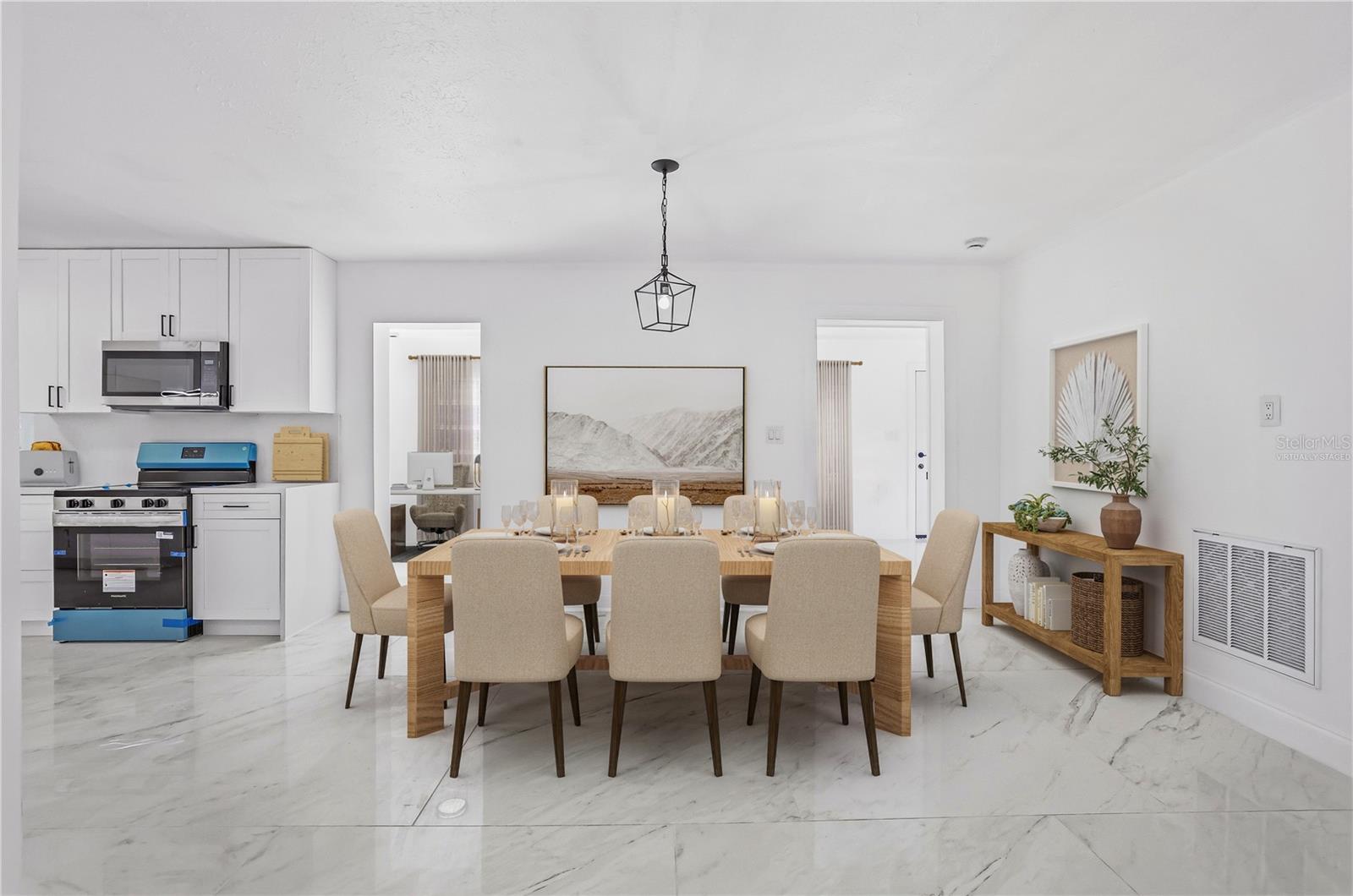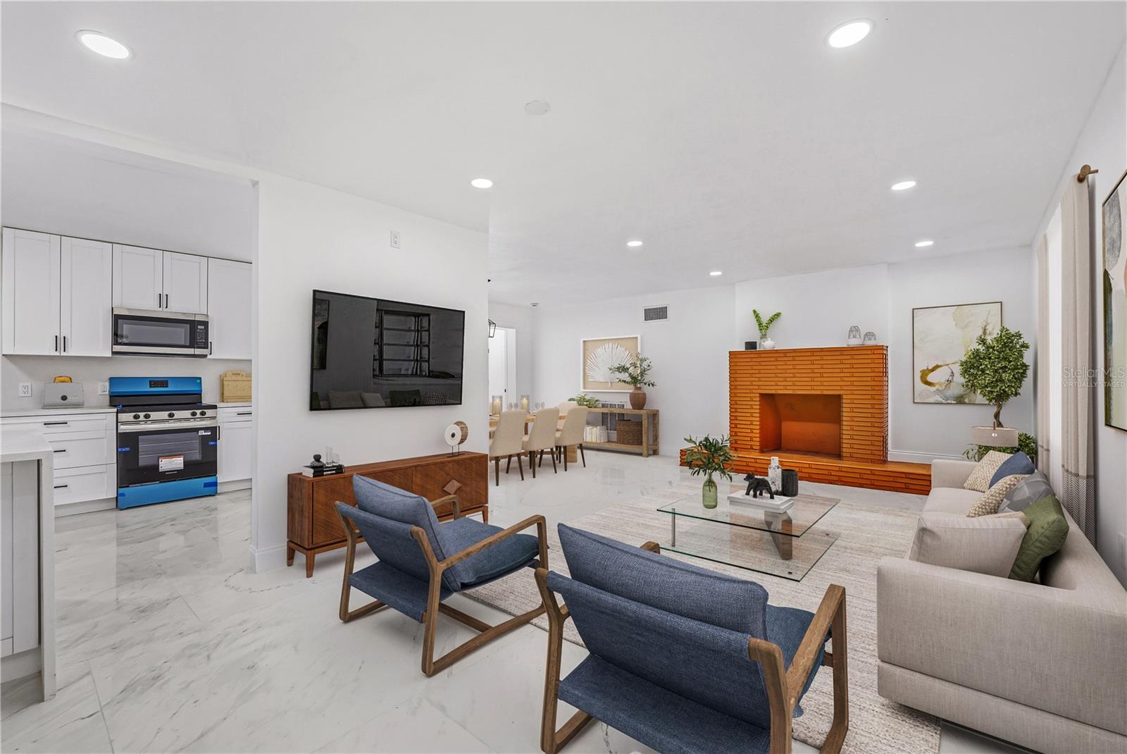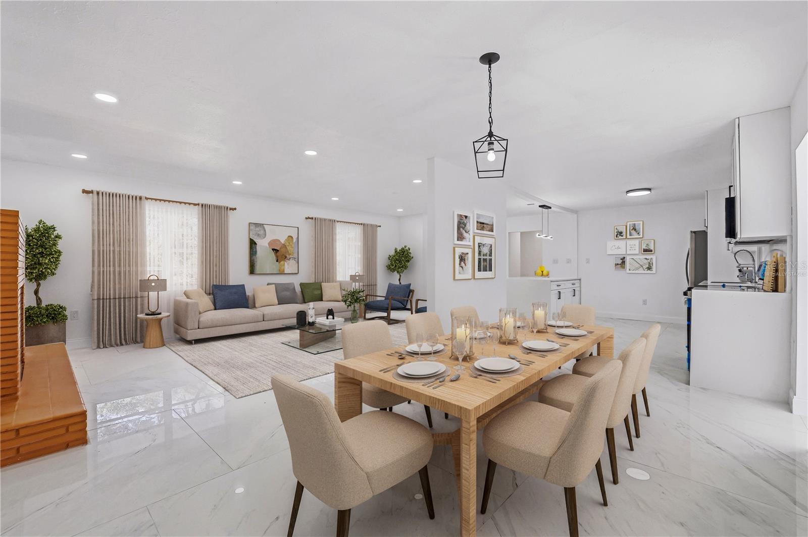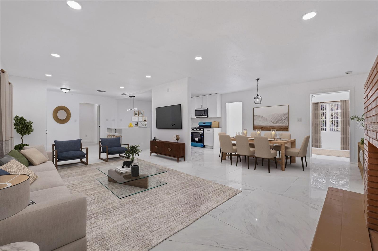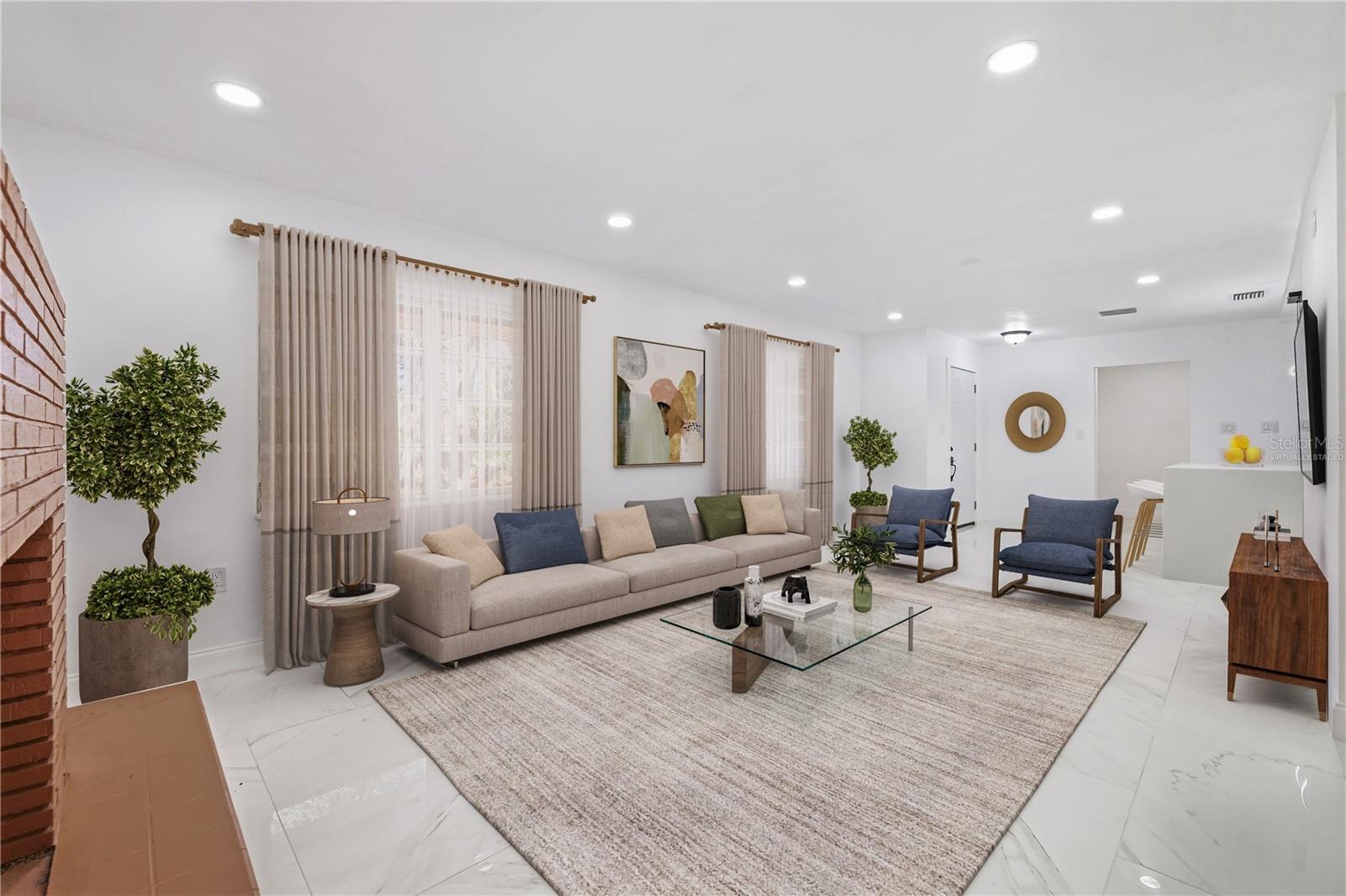 One or more photo(s) has been virtually staged. ***BRAND NEW ROOF WILL BE INSTALLED AT CLOSING & SELLER HELPING WITH BUYER'S CLOSING COSTS and/or RATE BUY-DOWN*** MODERN LUXURY meets timeless Old FLORIDA CHARM beneath a canopy of mature oak trees draped in Spanish moss. This BEAUTIFULLY REMODELED home sits on a rare OVERSIZED HOMESITE of over 1/3 acre, offering shade, privacy, and a peaceful natural setting. Situated on a UNIQUE INSIDE-CURVE CORNER LOT, the property features a CIRCULAR DRIVEWAY and DRIVE-THROUGH CARPORT IN A PORTE-COCHÈRE DESIGN, connected to the entrance by a long COVERED FRONT PORCH. Inside, the home showcases a BRIGHT OPEN-CONCEPT LAYOUT with large PORCELAIN TILE FLOORING throughout. The BRAND-NEW DESIGNER KITCHEN features shaker cabinetry, stainless steel appliances, modern lighting, and a stunning QUARTZ WATERFALL ISLAND that anchors the living space. The spacious living room is highlighted by a charming BRICK FIREPLACE. Both bathrooms have been BEAUTIFULLY UPDATED with SPA-STYLE TILE SHOWERS, QUARTZ VANITIES, and MODERN FIXTURES. The home also offers 3 SEPARATE ENTRANCES, creating flexibility for a home office, guest suite, or multi-generational living. With a NEWER AC, a BRAND NEW ROOF installed prior to closing, NEW KITCHEN, BATHROOM, FLOORING, FRESH PAINT, and NO HOA. this TURNKEY PROPERTY offers both COMFORT & FREEDOM. Conveniently located near State Rd 50 (Cortez Blvd) with direct access toward Orlando, the home is also minutes from I-75, the famous Withlacoochee State Trail, and Cypress Lake Preserve — perfect for nature lovers and outdoor enthusiasts. Schedule your private showing today!