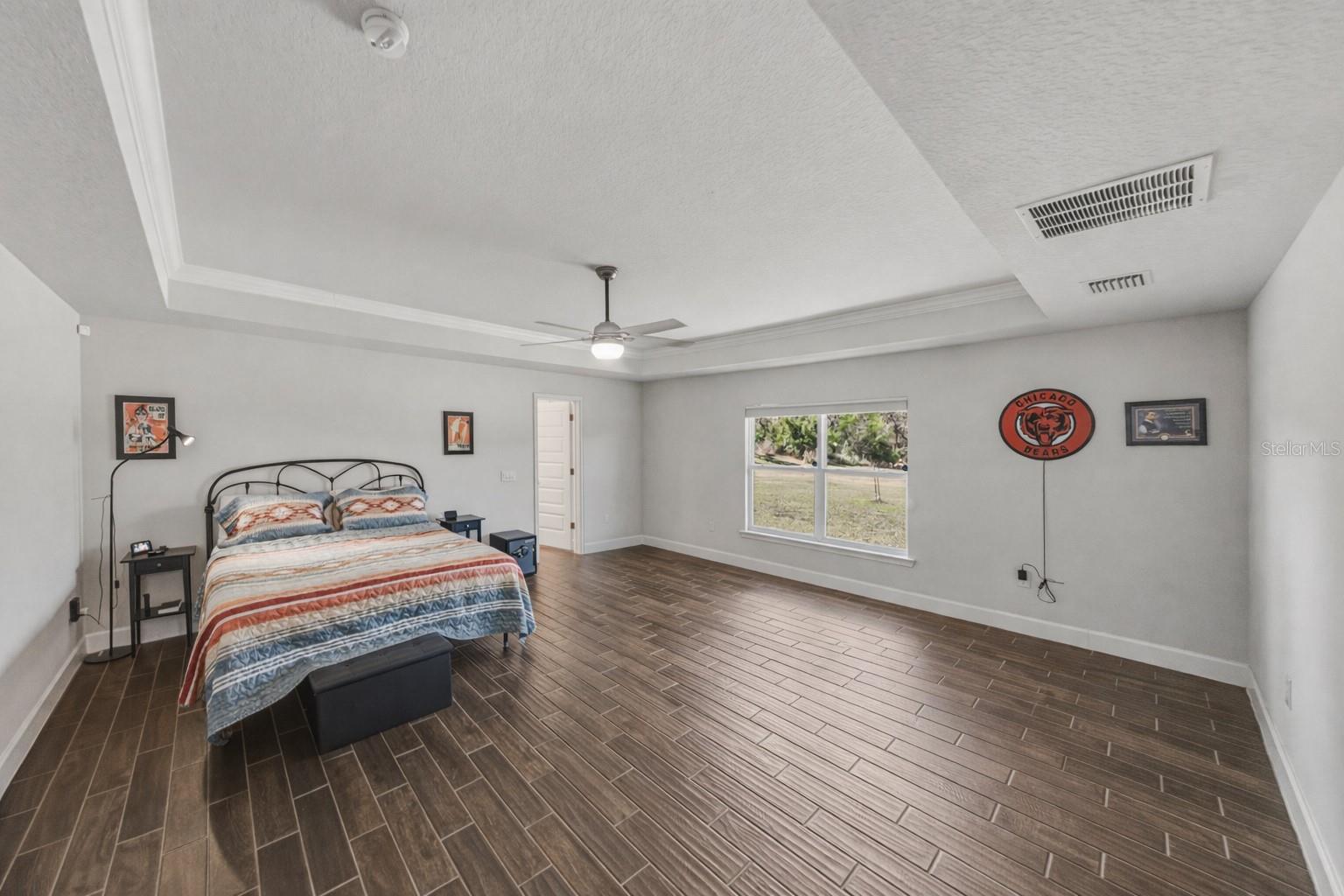 Set on two expansive acres within the gated community of Tara Oaks Plantation, this 2023 built 4 bedroom, 3 bath, 3 car garage home delivers the space, privacy, and sprawling layout that make acreage living so appealing. A long extended driveway creates a striking approach to the property, leading to the side facing 3 car garage and a walkway guiding guests to the covered front entry. The exterior combines attractive landscaping with stone accents and Hardie shake details, giving the home a refined yet welcoming presence from the moment you arrive. Inside, soaring vaulted ceilings and tile flooring throughout create a bright, open atmosphere across the main living areas. Just off the entry, a formal sitting room and dedicated dining space provide flexibility for hosting gatherings, holiday meals, or creating additional lounge space. The heart of the home is the impressive 18x20 family room, offering generous space for large furnishings, a ceiling fan, and direct access to the covered back porch. This room connects comfortably with the dining area and kitchen while still allowing each space to feel defined. Thoughtfully positioned just off the main living areas, the eat-in chef’s kitchen provides connection without being directly exposed to the entire room. Granite countertops offer extensive prep space alongside a central island, breakfast bar seating, and a full 4 piece stainless steel appliance package. Storage is a standout feature here with abundant cabinetry and an oversized walk-in pantry that conveniently connects to the laundry room. The primary suite is impressive in scale with a spacious 20x17 bedroom, two large walk-in closets, and a well-appointed ensuite bathroom featuring dual granite topped sinks, a walk-in shower, a separate soaking tub, and a private water closet. Bedrooms two through four are located down the hall and are all generously sized, with one featuring its own walk-in closet. Two additional full bathrooms serve this wing of the home and carry the same finishes and style found throughout the property. Out back, the large covered porch overlooks a wide open backyard framed by a wooded backdrop, creating a peaceful setting with plenty of room to add a pool, garden, or simply enjoy the surrounding acreage. Tara Oaks Plantation offers the rare combination of gated privacy and large homesites, all while being conveniently positioned between Dade City and Lakeland with easy access to US 98 for shopping, dining, and local conveniences. If you have been searching for a newer construction home with acreage, generous living space, and a tranquil gated setting, this property is well worth a closer look. Schedule your private showing today!
