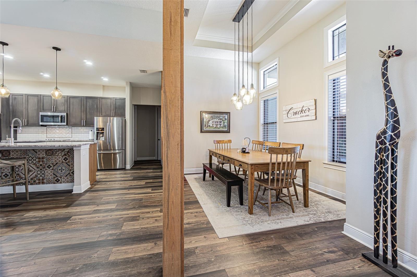 Want ROOM TO ROAM that is Country Close? Your search is over! Must see this exceptional custom-built 4 bedroom, 3 bath, 3 car garage home, perfectly positioned on a full acre just outside the city limits of San Antonio, Florida in the GATED Community of Kumquat Landings—where you’ll enjoy NO CDD fees and a low annual HOA. Cedar covered front entrance adds to the curb appeal inviting you to enter thru the double doors! Built in 2018 by Joshua Gilman, this thoughtfully designed residence offers a spacious open floor plan ideal for entertaining family & friends, featuring high-end laminate flooring and tile throughout, soaring 14-foot ceilings, crown molding, transom windows for added natural light and a light, bright, energy-efficient feel with tinted windows. Casual Elegance abounds in the expansive great room which flows into the dining area and is OPEN to a stunning chef’s kitchen, complete with granite countertops, custom dove-tailed wood cabinets, subway tile backsplash, two GE wall ovens, a massive island with contrast tile base, pendant lighting, a stainless steel farmhouse sink and seating for six, plus a HUGE walk-in pantry large enough for a freezer or 2nd refrigerator. A flexible space off the kitchen provides endless possibilities for a breakfast nook, a play area, or even a wet bar. The split-bedroom layout ensures privacy, with a luxurious owner’s retreat overlooking the large backyard and featuring a spa-like ensuite with a freestanding elegant soaking tub and a beautifully renovated walk-in shower. The additional bedrooms, one set up as a home office, the other as a guest bedroom at the rear, are generously sized and filled with natural light, while ceiling fans throughout the home and on the screened back porch enhance comfort year-round. Outdoors, the property is just as impressive with a fenced yard, irrigation system, firepit area, clumping bamboo for privacy, and a screened lanai overlooking the expansive backyard, already wired for a future pool and outdoor kitchen. Car enthusiasts, hobbyists, and those needing extra storage will appreciate the impressive 24x30 metal building/workshop on a concrete slab, complete with two 10-foot roll-up doors, foam insulation, metal roof, windows for natural light, 30,000 BTU mini-split AC, water, utility sink, electric, internet, and a 220V RV hookup, along with additional parking space for trailers, RVs, or equipment. Additional highlights include a whole-house 22KW Generac generator with buried propane tank, CareSoft Elite water filtration system, gutters, plantation shutters, interior laundry room with utility sink and storage, well and septic, 2019 AC, and exterior security cameras that convey. Located North of Tampa near Wesley Chapel and Dade City with easy access to shopping, outlets, restaurants, medical facilities, fitness and major highways for easy commute to work, Ocala, Orlando, Tampa, Airports or the Gulf Beaches! This one-of-a-kind property truly offers the life you want, county zoned... an ideal place to call home! CALL TODAY!