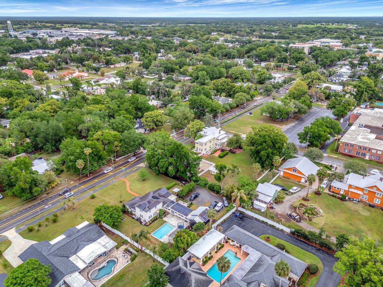 Experience the perfect blend of historic charm and modern luxury in this beautifully remodeled 4-bedroom, 3-bath home, ideally situated on an oversized lot in the heart of Dade City. Offering approximately 2,480 square feet of heated living space, this one-of-a-kind property delivers character, functionality, and lifestyle all with NO HOA and NO CDD and fully paid off solar panels. Step inside to find refinished hardwood floors, abundant natural light, and thoughtfully designed living spaces that flow seamlessly from room to room. The showstopping chef’s kitchen features custom wood cabinetry, quartz countertops, a large center island, stainless steel appliances, and a stunning brick oven alcove that is perfect for both everyday living and entertaining. The spacious main floor primary suite is a true retreat with a beautifully updated en-suite bath featuring a clawfoot soaking tub, walk-in shower, direct access to the laundry room and two walk-in closets. The main floor is complete with a sun room that could be used as an office or den space, a second bedroom, full bath and one of the home’s standout features a fully enclosed breezeway, adding over 500 square feet of additional living space that is ideal for indoor/outdoor entertaining or a relaxed lounge area. Upstairs, two additional bedrooms and a loft provide flexible space for guests, family, or a media room. Step outside to your private backyard oasis complete with a saltwater pool, expansive paver patio, gazebo, and fully fenced yard with plenty of green space to enjoy. The property also includes an oversized garage/workshop, gated driveway with ample parking, a chicken coop and a Tesla charger. Additional highlights include updated pool systems, and energy-efficient features throughout. Located just minutes from charming Downtown Dade City, you’ll enjoy easy access to local shops, dining, and year-round events while still having the space and privacy rarely found within city limits. This is a rare opportunity to own a truly unique, character-filled home with modern upgrades in one of Dade City’s most desirable locations.