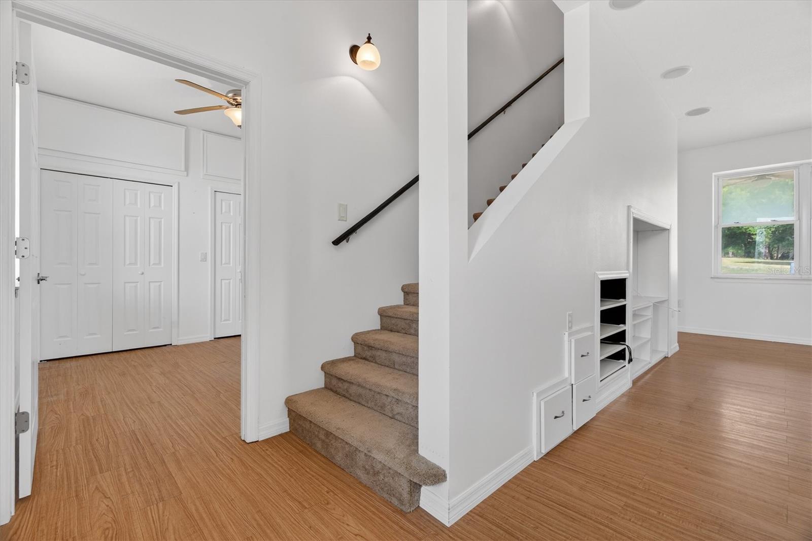 Welcome to your private slice of country living in the heart of Pasco County. Situated on 2.5 peaceful acres, this 2009-built home offers the perfect blend of space, functionality, and opportunity. With 2,460 square feet, this two-story layout features a highly desirable floor plan, including a primary suite on the first floor along with additional living space and bedrooms upstairs—ideal for separation, flexibility, or hosting guests. The home offers a clean and open canvas for the next owner to personalize and make it their own. Step outside and enjoy the quiet surroundings from the wrap-around porch, perfect for morning coffee or unwinding in the evenings. The property also includes a large garage/workshop—ideal for storing vehicles, equipment, or creating your own workspace. Recent updates include a brand new HVAC system, giving peace of mind to the next owner. With no immediate neighbors and plenty of usable land, this property is perfect for those seeking space, privacy, and a more relaxed lifestyle—while still being within reach of nearby conveniences. Whether you're looking to settle into country living, need room for your hobbies, or want a property with long-term potential, this one checks all the boxes.
