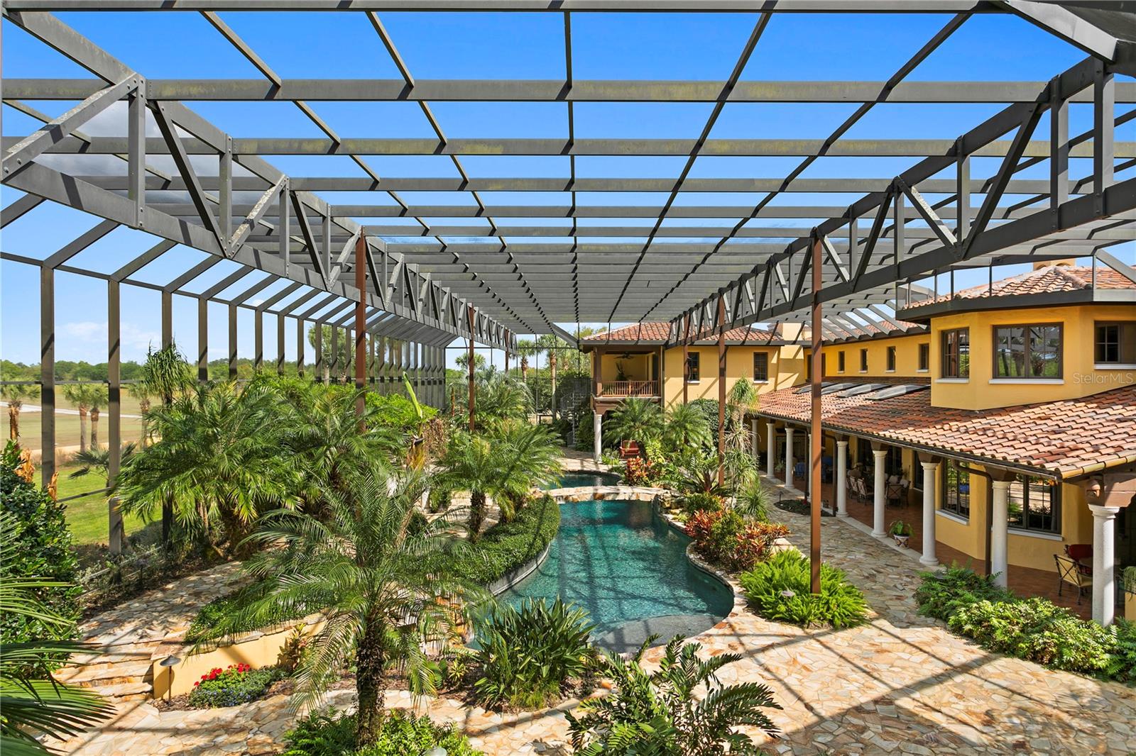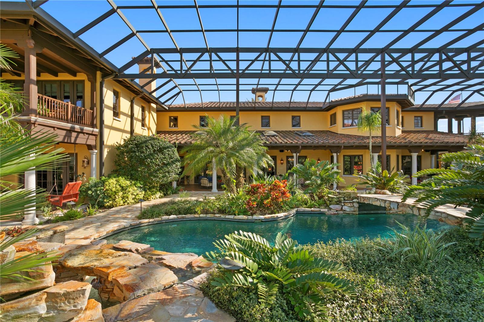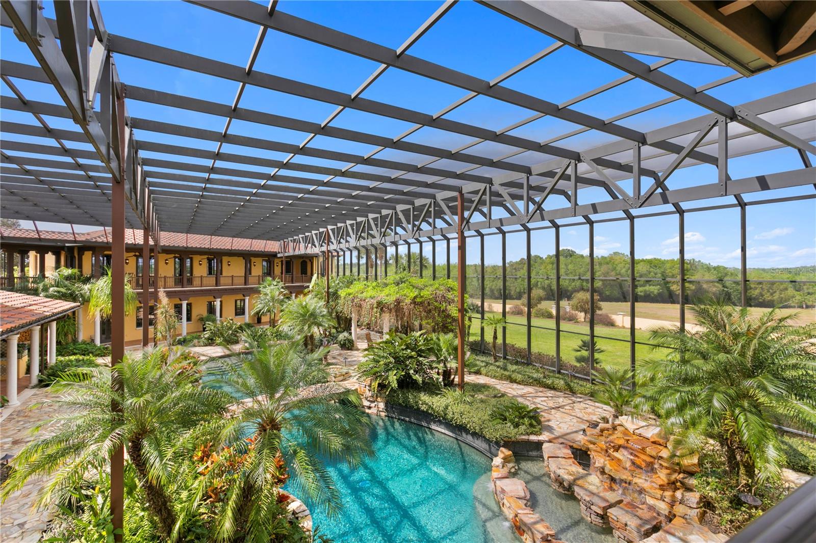 New price reduction in Dade City, Florida! Discover a breathtaking Hacienda-style home nestled within a sprawling 200-acre expanse. This remarkable estate offers unparalleled privacy and seclusion. The authentic design of the residence, featuring a distinctive red tiled roof, adobe-style stucco walls, ornate ironwork, graceful archways, and intricate custom woodwork, exudes an ambiance of serene elegance. Situated within 3 acres of walled grounds adorned with mature landscaping and charming decorative lighting, the residence features Smart Home technology with remote control capabilities via web applications. The entire property, accessible through two gated entrances, is securely fenced and partially cross-fenced, encompassing approximately 4.5 miles of four-board fencing, presenting an opportunity to create a private and secluded family compound. Equestrian enthusiasts will delight in the amenities, including a two-story Cypress Horse Barn with a fully air-conditioned second floor, complete with a full bathroom and two additional rooms suitable for offices, grooms quarters, or recreational spaces limited only by imagination. Additionally, there are two hay storage barns and an equipment barn. The main level of the residence features a spacious open-concept layout comprising a great room, dining area, and a kitchen adorned with bespoke cabinetry, including appliance cabinetry, and top-of-the-line Viking and Subzero appliances. With five bedrooms, five full bathrooms, and three half bathrooms, there's ample space for family and guests. The luxurious owner's suite boasts an oversized walk-in shower, a lavish bath, and custom-designed walk-in closets with dedicated dressing areas. Completing this idyllic retreat are two private terraces overlooking a vast 9,850 square-foot screened patio featuring a Pebble Tec lagoon-style pool and lush gardens, perfect for relaxation and outdoor entertaining. Nestled in Dade City, this charming estate offers convenient access to I-75, providing effortless travel to bustling Tampa or vibrant Orlando. Embrace the tranquility and luxury of countryside living while being within reach of urban amenities and attractions. Ideal for those seeking a family compound or a secluded sanctuary offering ultimate privacy and luxury living. Moreover, Dade City itself offers plenty of attractions and activities to explore. Delve into the local culture by browsing antique shops or indulge in retail therapy at The Grove at Wesley Chapel or Tampa Premium Outlets. For outdoor enthusiasts, there's Giraffe Ranch: Florida Wildlife Park, Withlacoochee River Park, and Tree Hoppers Aerial Adventure Park. Enjoy nostalgic entertainment at Joy-Lan Drive-In Theatre or tee off at the beautiful Lake Jovita Golf & Country Club. Additionally, with Downtown Tampa, the Channel District, Historic Ybor City, and Hyde Park just a quick drive down I-75, residents have easy access to a myriad of dining, shopping, and entertainment options. Families will appreciate the top-rated schools within the Pasco County School District, while high school graduates can pursue higher education at esteemed institutions like The University of South Florida, Pasco-Hernando State College, and St. Leo University. Experience the best of both worlds in Dade City—a serene retreat with endless opportunities for recreation and education.