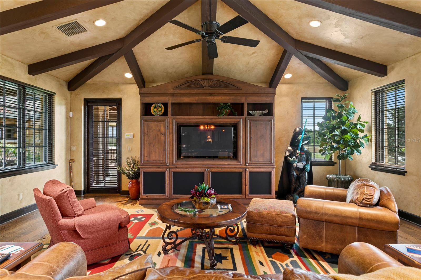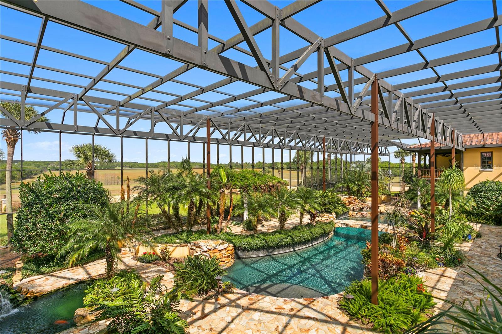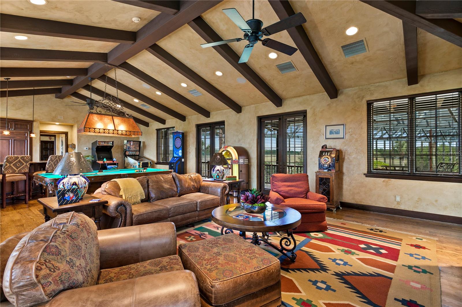 New price reduction in Dade City, Florida! Discover a breathtaking Hacienda-style home nestled within a sprawling 200-acre expanse. This remarkable estate offers unparalleled privacy and seclusion. The authentic design of the residence, featuring a distinctive red tiled roof, adobe-style stucco walls, ornate ironwork, graceful archways, and intricate custom woodwork, exudes an ambiance of serene elegance. Situated within 3 acres of walled grounds adorned with mature landscaping and charming decorative lighting, the residence features Smart Home technology with remote control capabilities via web applications. The entire property, accessible through two gated entrances, is securely fenced and partially cross-fenced, encompassing approximately 4.5 miles of four-board fencing, presenting an opportunity to create a private and secluded family compound. Equestrian enthusiasts will delight in the amenities, including a two-story Cypress Horse Barn with a fully air-conditioned second floor, complete with a full bathroom and two additional rooms suitable for offices, grooms quarters, or recreational spaces limited only by imagination. Additionally, there are two hay storage barns and an equipment barn. The main level of the residence features a spacious open-concept layout comprising a great room, dining area, and a kitchen adorned with bespoke cabinetry, including appliance cabinetry, and top-of-the-line Viking and Subzero appliances. With five bedrooms, five full bathrooms, and three half bathrooms, there's ample space for family and guests. The luxurious owner's suite boasts an oversized walk-in shower, a lavish bath, and custom-designed walk-in closets with dedicated dressing areas. Completing this idyllic retreat are two private terraces overlooking a vast 9,850 square-foot screened patio featuring a Pebble Tec lagoon-style pool and lush gardens, perfect for relaxation and outdoor entertaining. Nestled in Dade City, this charming estate offers convenient access to I-75, providing effortless travel to bustling Tampa or vibrant Orlando. Embrace the tranquility and luxury of countryside living while being within reach of urban amenities and attractions. Ideal for those seeking a family compound or a secluded sanctuary offering ultimate privacy and luxury living. Moreover, Dade City itself offers plenty of attractions and activities to explore. Delve into the local culture by browsing antique shops or indulge in retail therapy at The Grove at Wesley Chapel or Tampa Premium Outlets. For outdoor enthusiasts, there's Giraffe Ranch: Florida Wildlife Park, Withlacoochee River Park, and Tree Hoppers Aerial Adventure Park. Enjoy nostalgic entertainment at Joy-Lan Drive-In Theatre or tee off at the beautiful Lake Jovita Golf & Country Club. Additionally, with Downtown Tampa, the Channel District, Historic Ybor City, and Hyde Park just a quick drive down I-75, residents have easy access to a myriad of dining, shopping, and entertainment options. Families will appreciate the top-rated schools within the Pasco County School District, while high school graduates can pursue higher education at esteemed institutions like The University of South Florida, Pasco-Hernando State College, and St. Leo University. Experience the best of both worlds in Dade City—a serene retreat with endless opportunities for recreation and education.