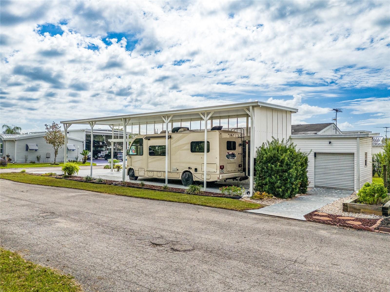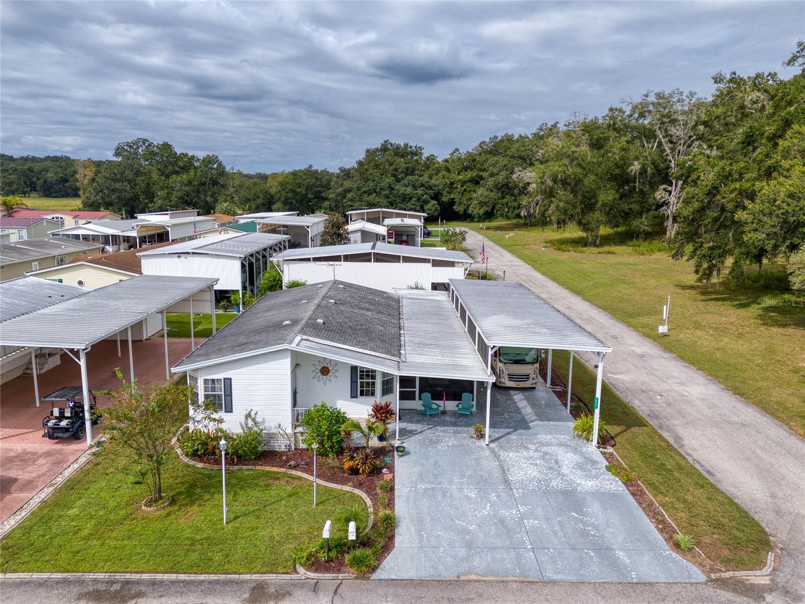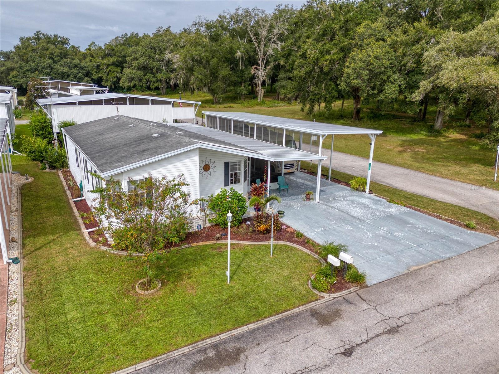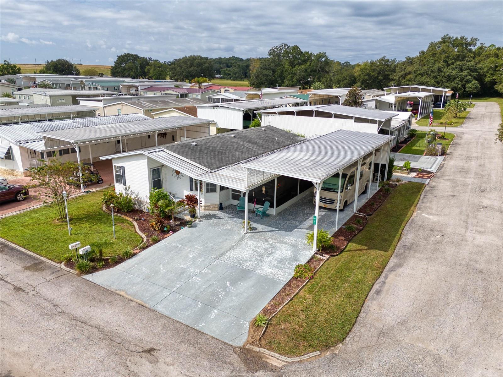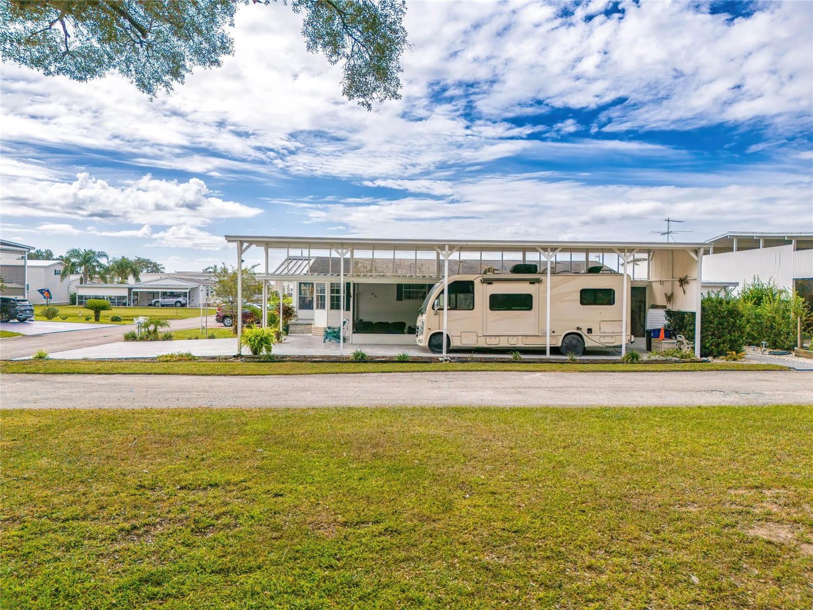 MOVE-IN READY! Bring the RV! Sellers are open to rent or lease options on this beautifully maintained 2-bedroom, 2-bath manufactured home, perfectly situated on a corner lot in the active 55+ community of Hampton Court in Dade City. Enjoy a spacious open floor plan with high ceilings, neutral finishes, and a large screened lanai—perfect for Florida living. The kitchen offers a center island, cooktop, stainless steel appliances, and plenty of cabinets, while the master suite features a walk-in closet and dual vanity. RV lovers will appreciate the huge 26’ x 53’ covered carport with 50-amp and 30-amp hookups, sewer, water, and electric—ideal for all sizes of RVs. Community amenities include a heated pool, clubhouse, pickleball, shuffleboard, bocce ball, crafts, bingo, and more. Maintenance fees cover water, sewer, trash, and grounds. Conveniently located just 2 miles from shopping, dining, and medical facilities. YOU OWN THE LAND—no lot rent! Don’t miss this chance to own (or lease) a low-maintenance home in a vibrant community. Schedule your private showing today!