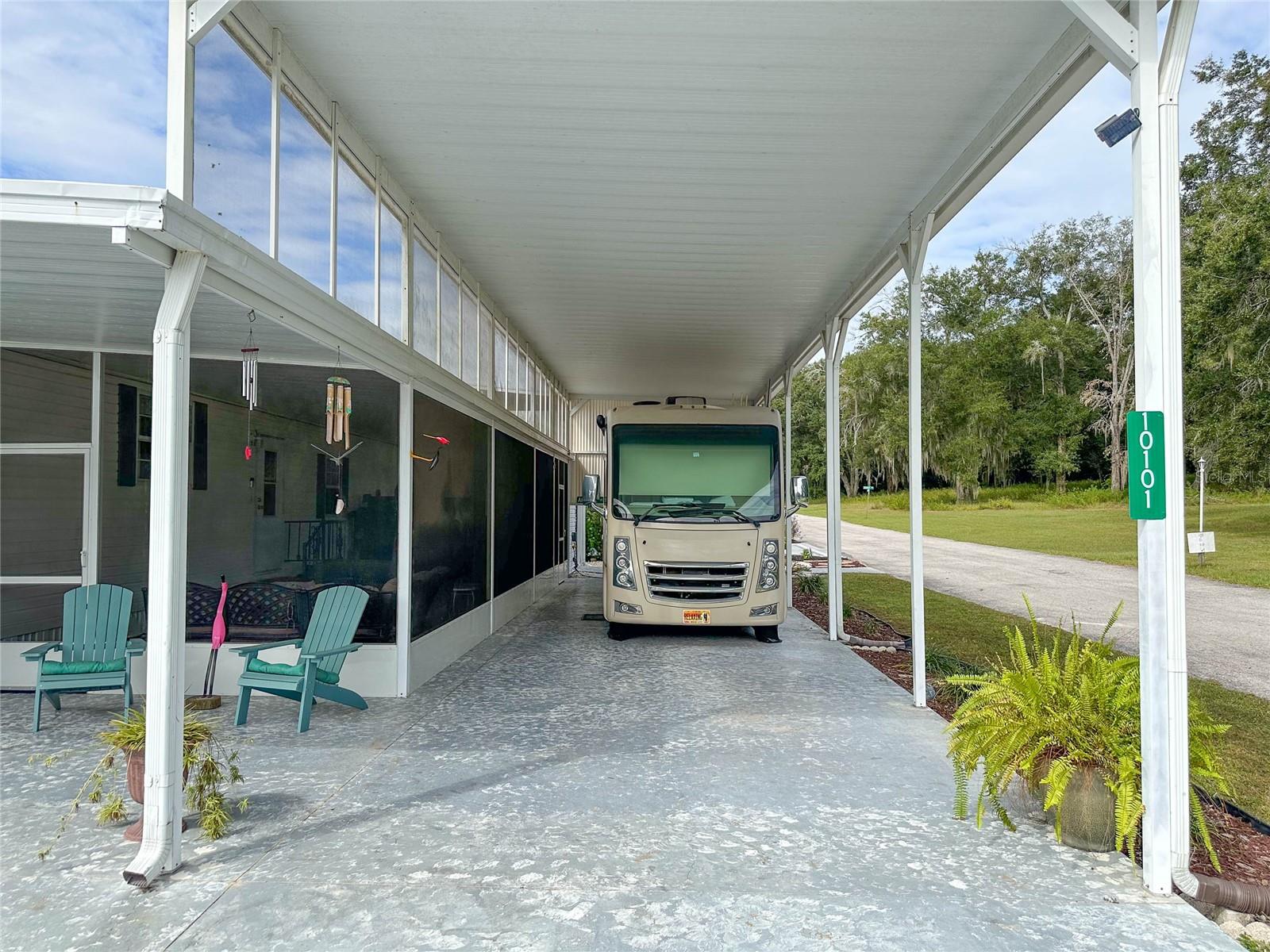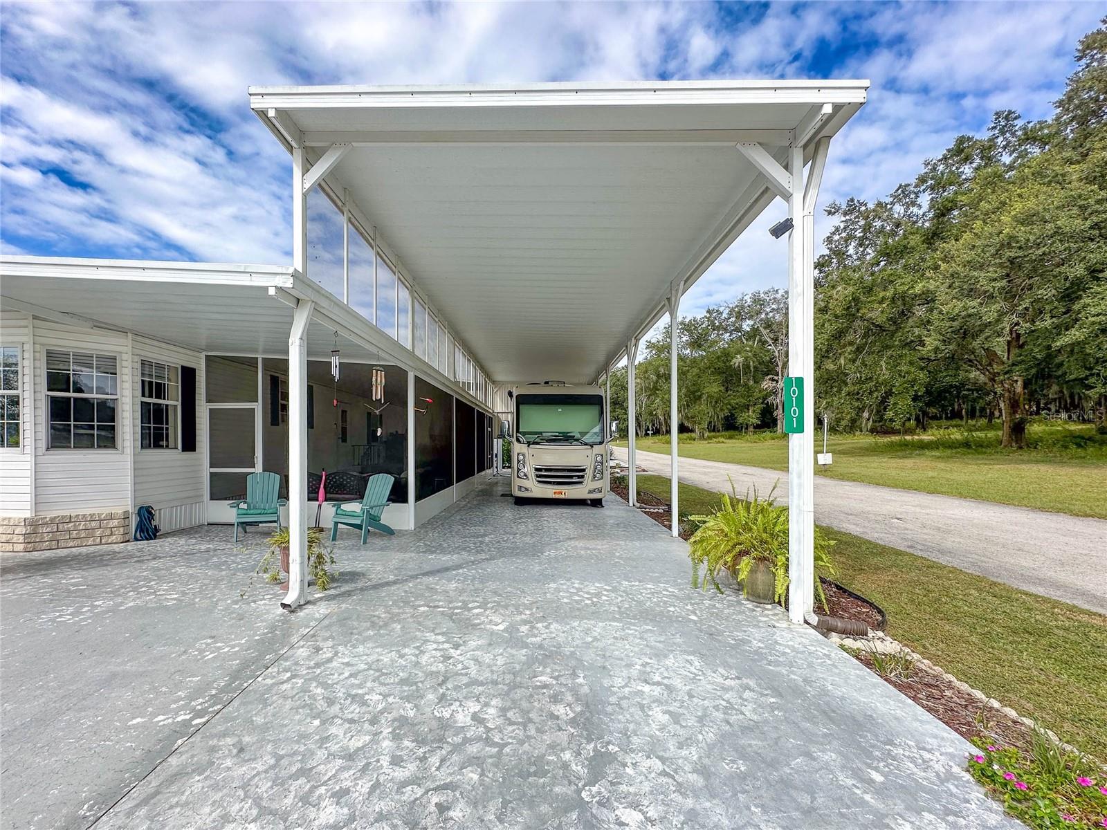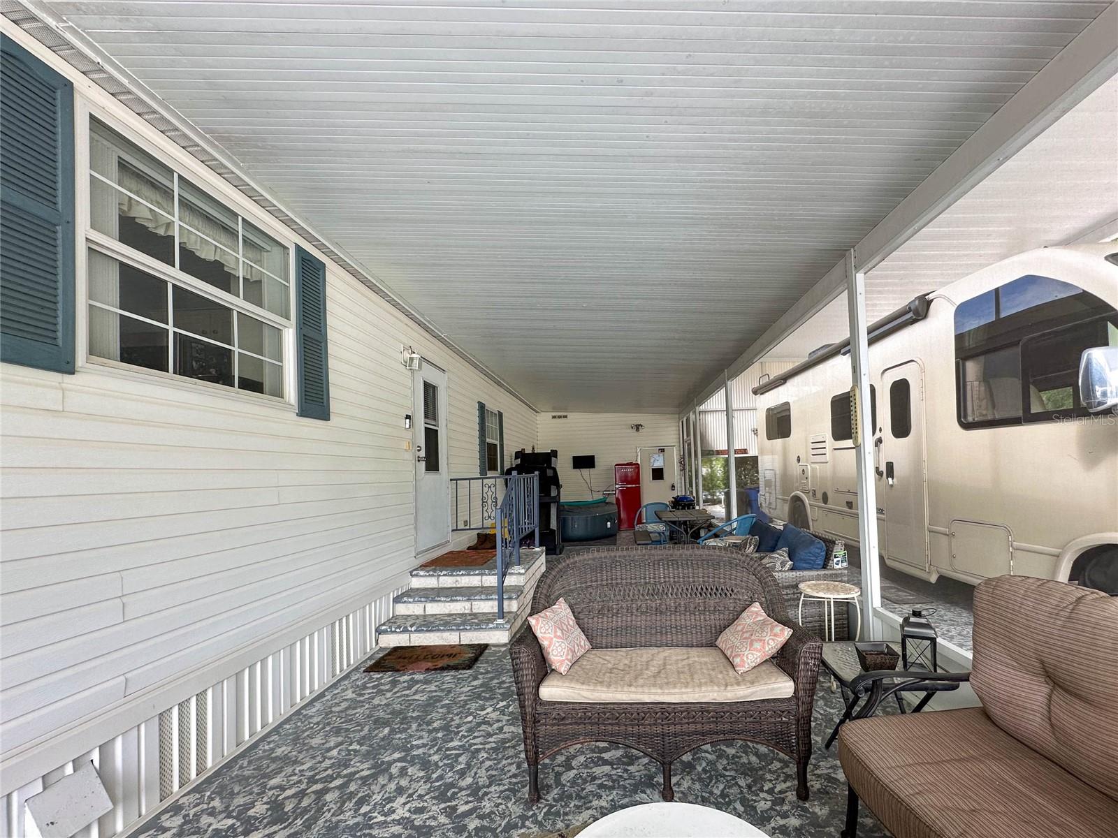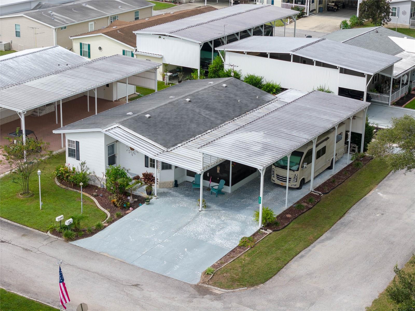 MOVE-IN READY! Bring the RV! Sellers are open to rent or lease options on this beautifully maintained 2-bedroom, 2-bath manufactured home, perfectly situated on a corner lot in the active 55+ community of Hampton Court in Dade City. Enjoy a spacious open floor plan with high ceilings, neutral finishes, and a large screened lanai—perfect for Florida living. The kitchen offers a center island, cooktop, stainless steel appliances, and plenty of cabinets, while the master suite features a walk-in closet and dual vanity. RV lovers will appreciate the huge 26’ x 53’ covered carport with 50-amp and 30-amp hookups, sewer, water, and electric—ideal for all sizes of RVs. Community amenities include a heated pool, clubhouse, pickleball, shuffleboard, bocce ball, crafts, bingo, and more. Maintenance fees cover water, sewer, trash, and grounds. Conveniently located just 2 miles from shopping, dining, and medical facilities. YOU OWN THE LAND—no lot rent! Don’t miss this chance to own (or lease) a low-maintenance home in a vibrant community. Schedule your private showing today!