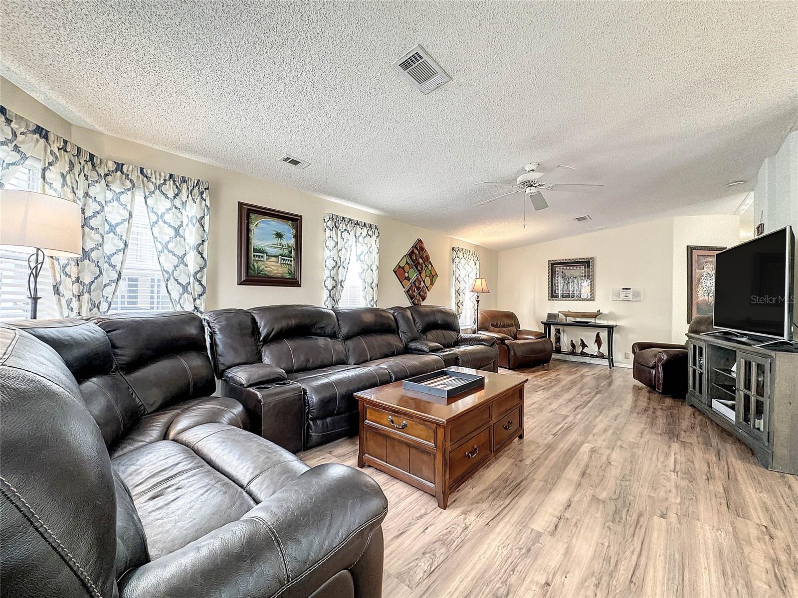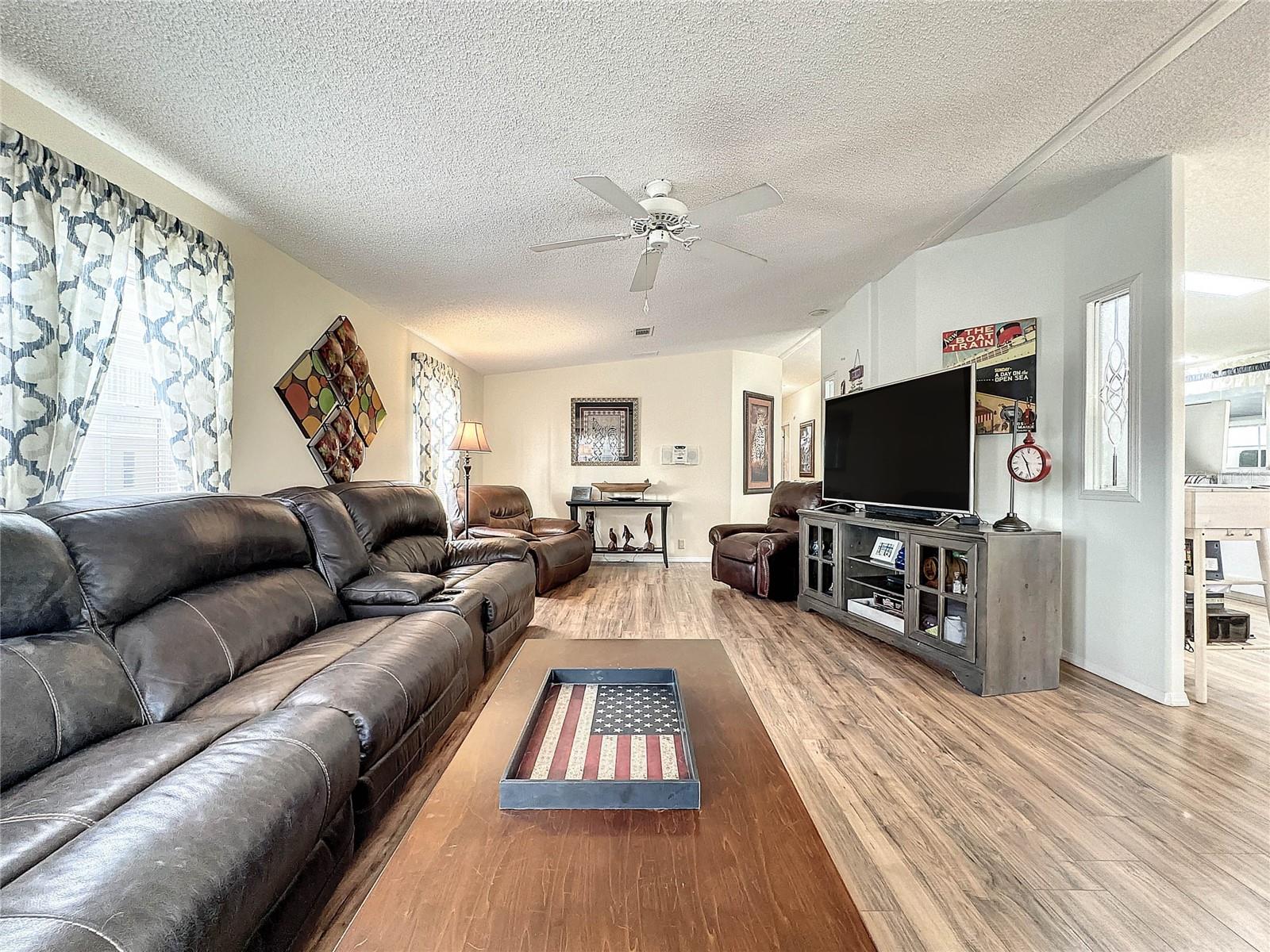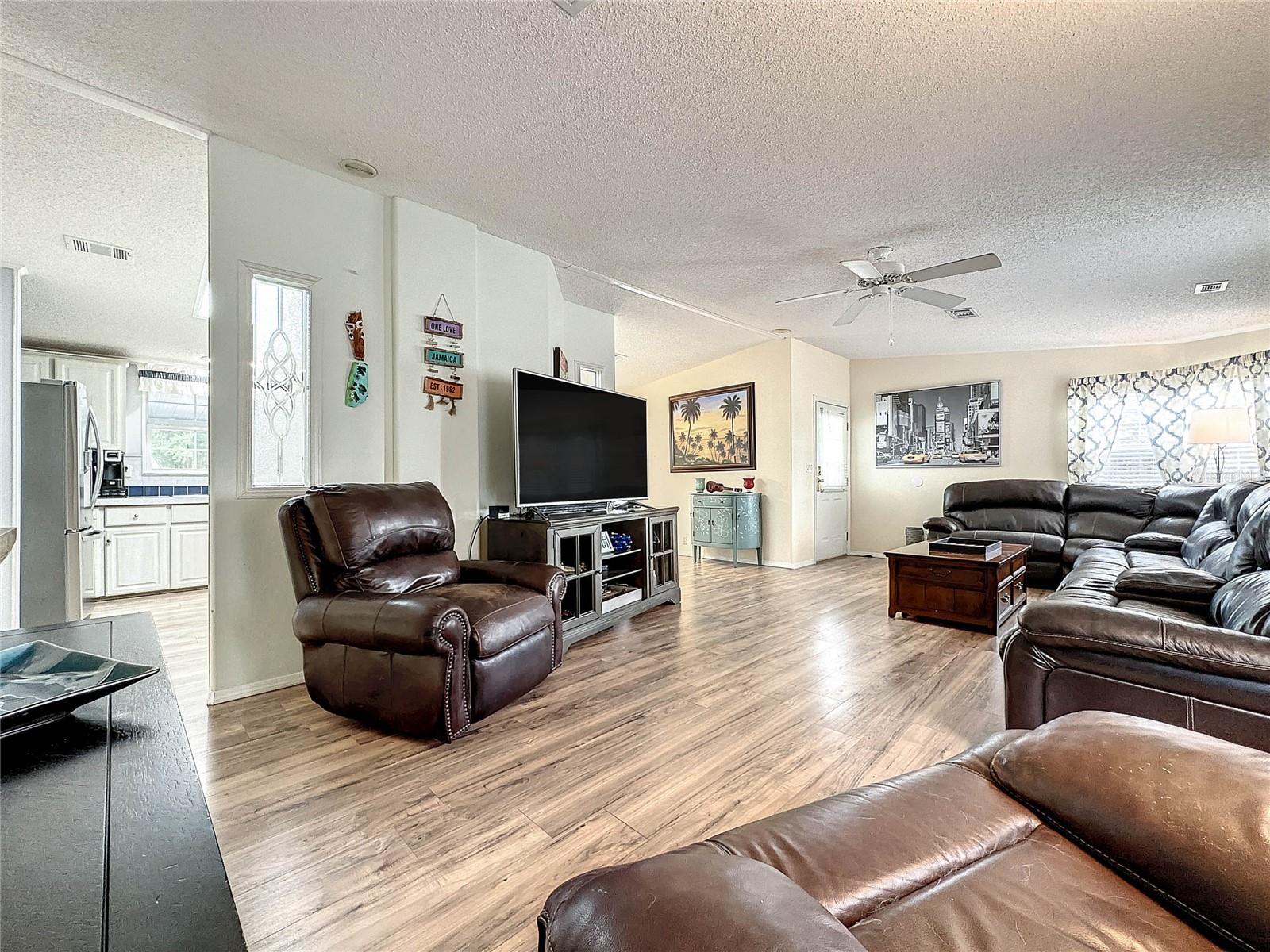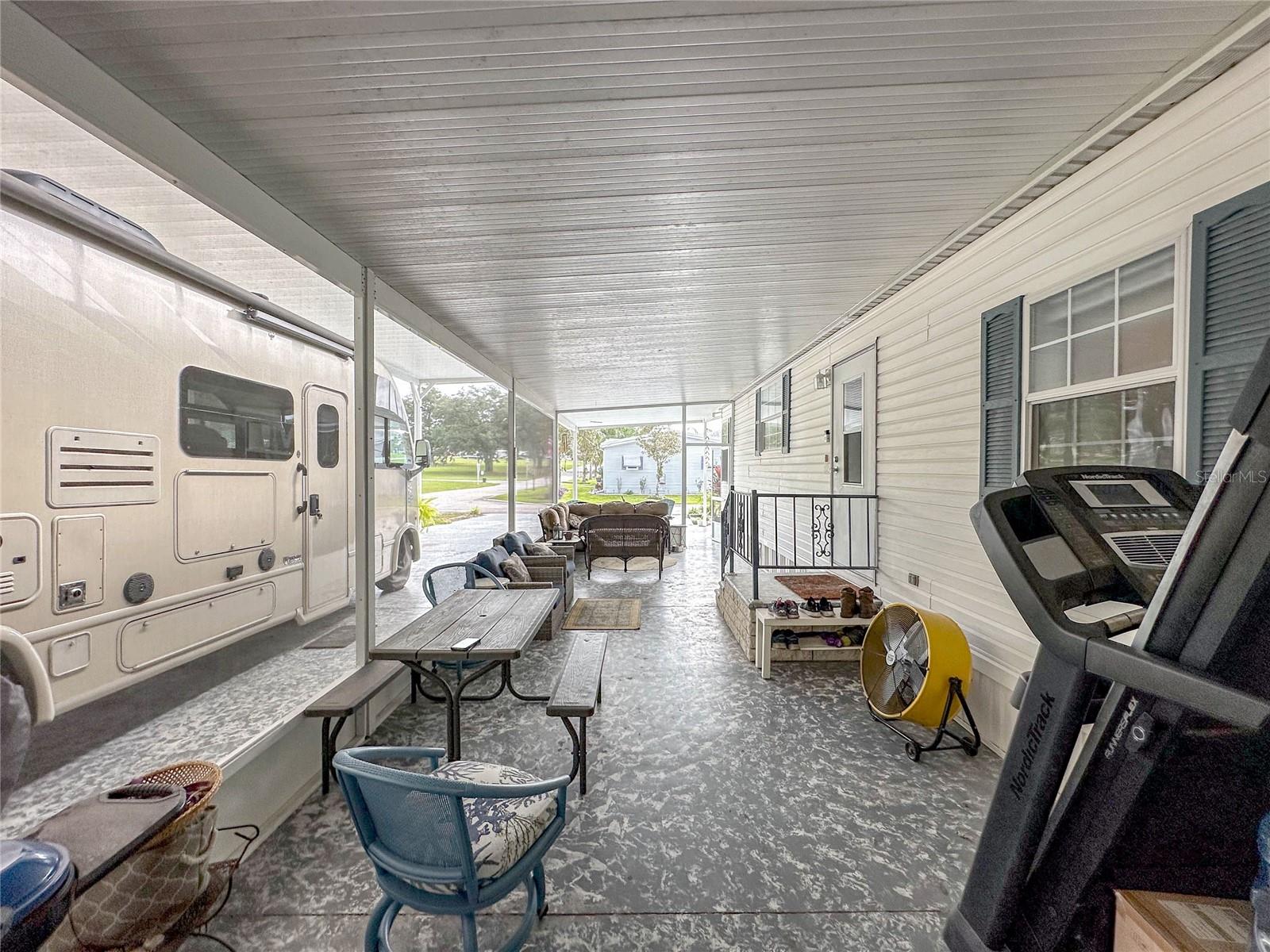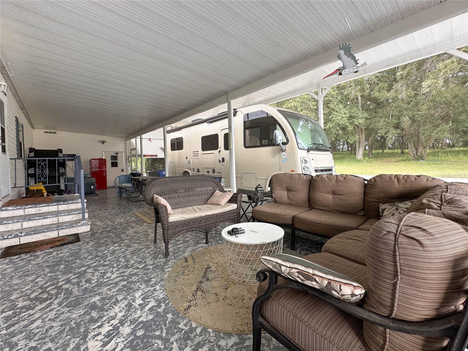 MOVE-IN READY! Bring the RV! Sellers are open to rent or lease options on this beautifully maintained 2-bedroom, 2-bath manufactured home, perfectly situated on a corner lot in the active 55+ community of Hampton Court in Dade City. Enjoy a spacious open floor plan with high ceilings, neutral finishes, and a large screened lanai—perfect for Florida living. The kitchen offers a center island, cooktop, stainless steel appliances, and plenty of cabinets, while the master suite features a walk-in closet and dual vanity. RV lovers will appreciate the huge 26’ x 53’ covered carport with 50-amp and 30-amp hookups, sewer, water, and electric—ideal for all sizes of RVs. Community amenities include a heated pool, clubhouse, pickleball, shuffleboard, bocce ball, crafts, bingo, and more. Maintenance fees cover water, sewer, trash, and grounds. Conveniently located just 2 miles from shopping, dining, and medical facilities. YOU OWN THE LAND—no lot rent! Don’t miss this chance to own (or lease) a low-maintenance home in a vibrant community. Schedule your private showing today!