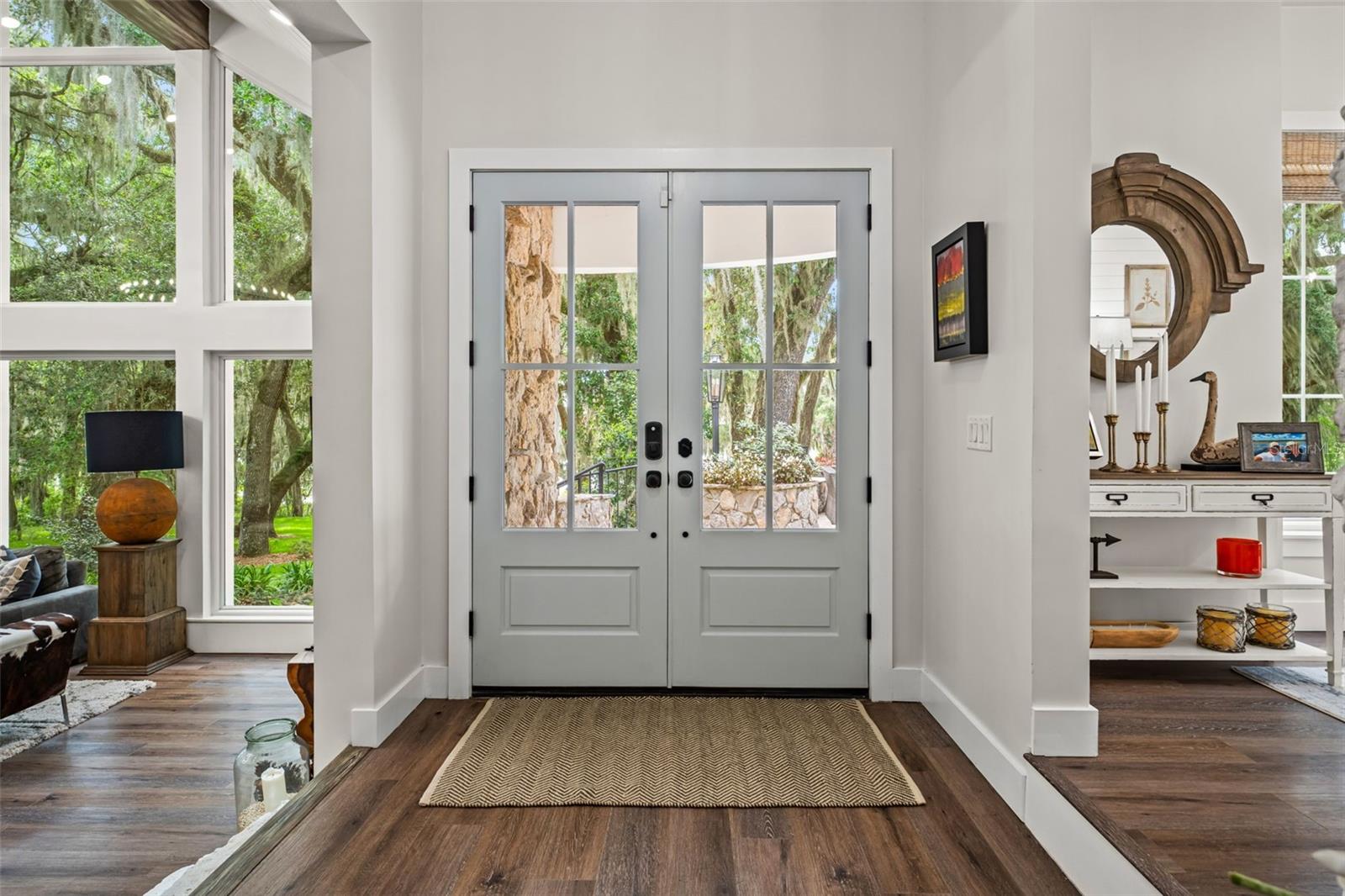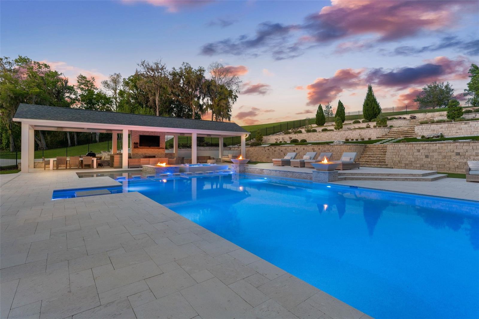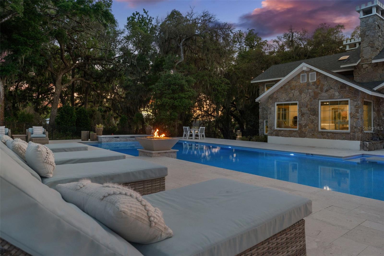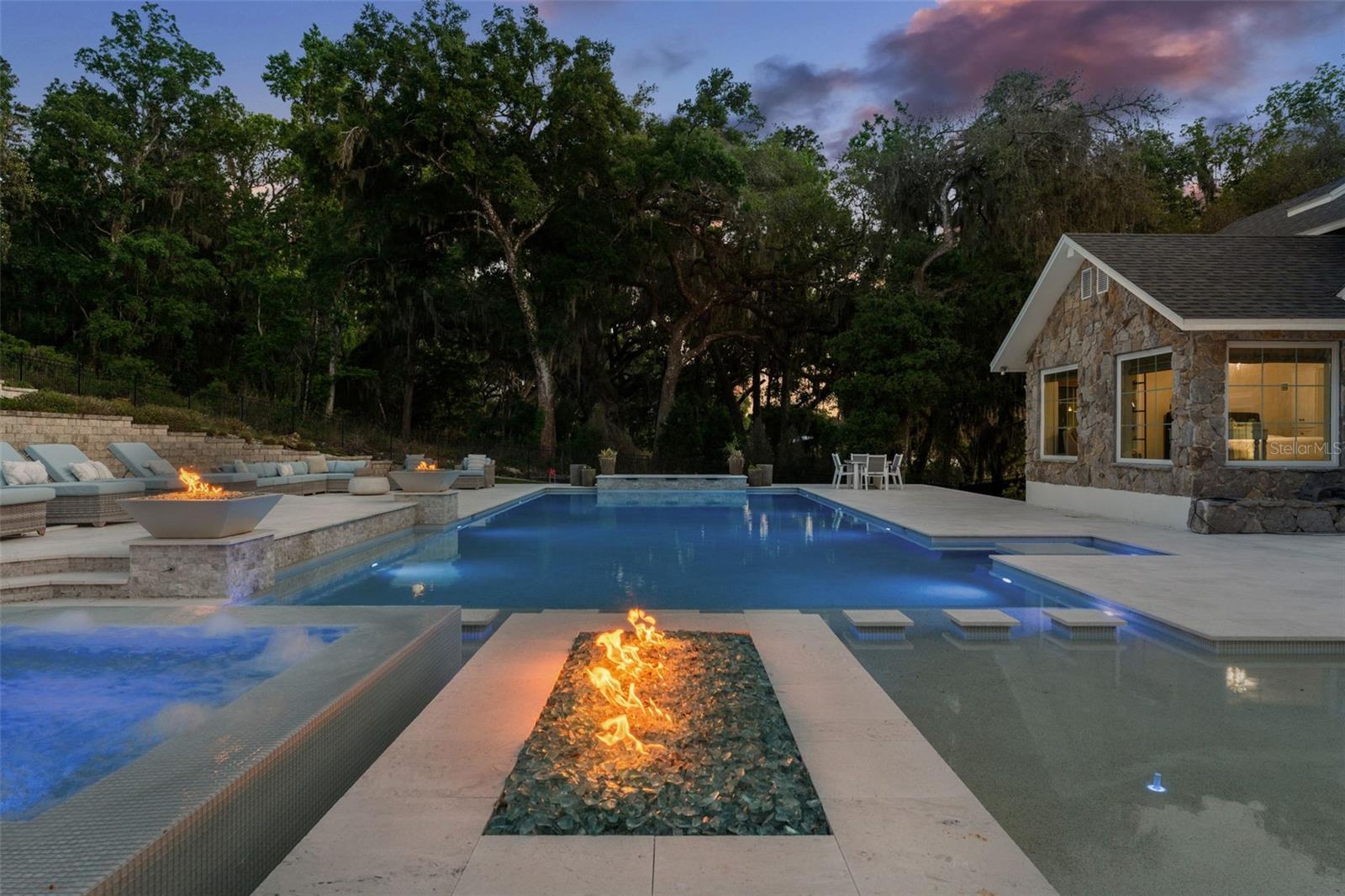 A home like this becomes available only once in a lifetime. Indulge in the epitome of luxury at this private lakefront estate in the heart of Central Florida. Located in historic Dade City and within an hour’s drive of Tampa/St. Pete, there are grand views greeting you from every window. Whether you’re seeking a main residence or a private getaway, this home and surrounding ten acres are an idyllic escape to paradise. Exquisitely remodeled, nearly 5000 sq ft of living space, and a spectacular pool with an entertainment pavilion exudes Florida living at its best. The meticulously landscaped grounds span from the gated entrance to the private scenic lake with an expansive dock perfect for watching sunsets over the lake that paint the sky with hues of orange and pink. Inside the home you’ll find an eat-in chef’s kitchen with fireplace, professional-grade Viking appliances, beautiful quartz countertops, and an abundance of workspace and storage options ensuring effortless organization. In the living room, you will discover soaring ceilings and an oversized wood-burning fireplace with a one-of-a-kind custom mantle, and floor-to-ceiling windows that offer sweeping views of the property and lake. The master bedroom is an oasis of tranquility and luxury, boasting a stone fireplace, sitting room, huge designer closets, and a resort-style bathroom where indulgence meets elegance in every detail. Each of the bedrooms and supplementary rooms have an abundance of natural light and offer flexible usage options, accommodating diverse needs easily. Their architectural finesse and aesthetic appeal stand in harmony with the distinguished main areas of the home, ensuring a cohesive and impressive experience throughout the entirety of the property. Embrace luxury in the pool area while finding sheltered comfort under a spacious covered entertainment area with outside dining. Lounge in style on several tiered sun pads. Admire the beautiful mixed stonework, adding a touch of elegance to the surroundings. Indulge in relaxation with a dip in the large spa or resort-sized pool. Perfect your putting skills on the putting green. Enjoy cozy evenings by multiple gas fire-features, adding to the warm ambiance throughout. Experience maximum privacy with the tiered stone and landscaped architectural wall that serves as a grand backdrop to the pool area. A separate outdoor barbecue area near the lake beckons with its inviting seating arrangements and a cozy fire pit, equipped with power for decorative lighting. From this vantage point, you can overlook your new dock, a gateway to endless kayaking adventures on the tranquil waters. There are more amazing details to this one-of-kind home than MLS can hold, please ask your agent to see the features sheet for more information.