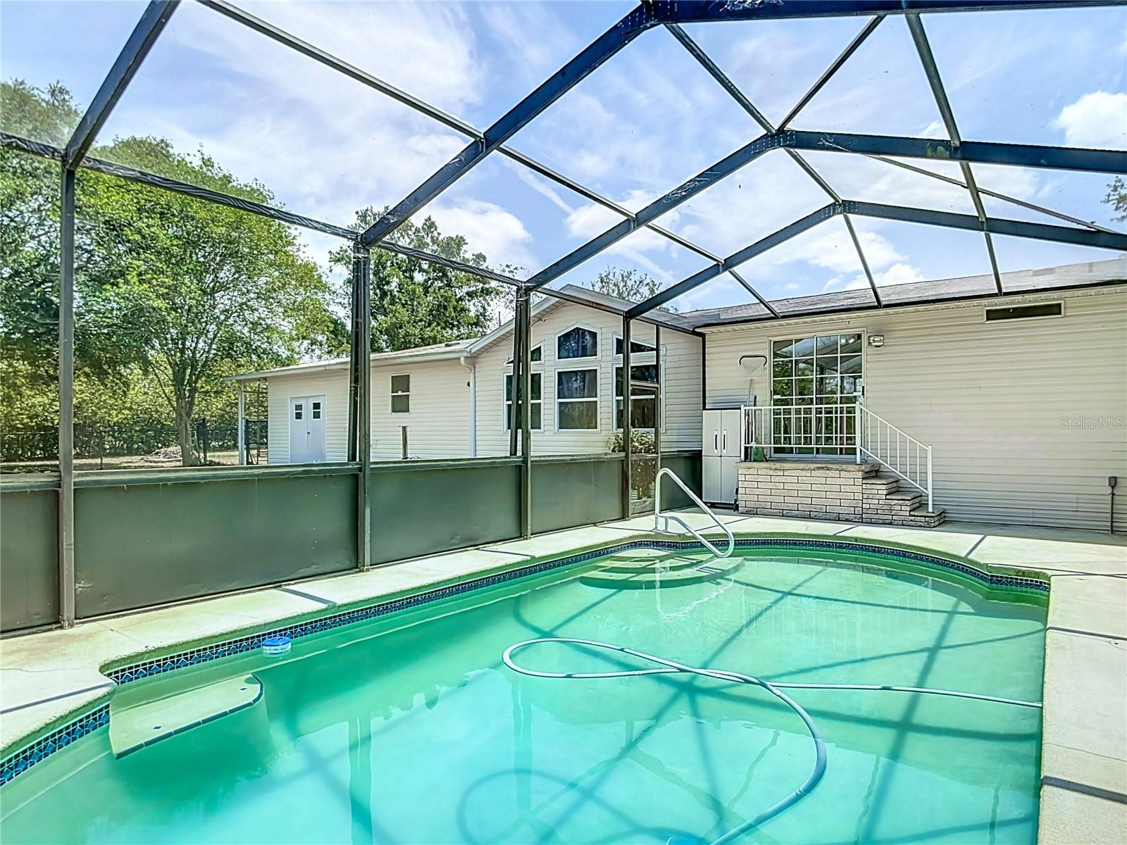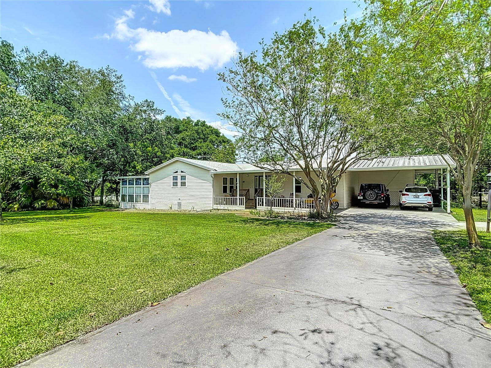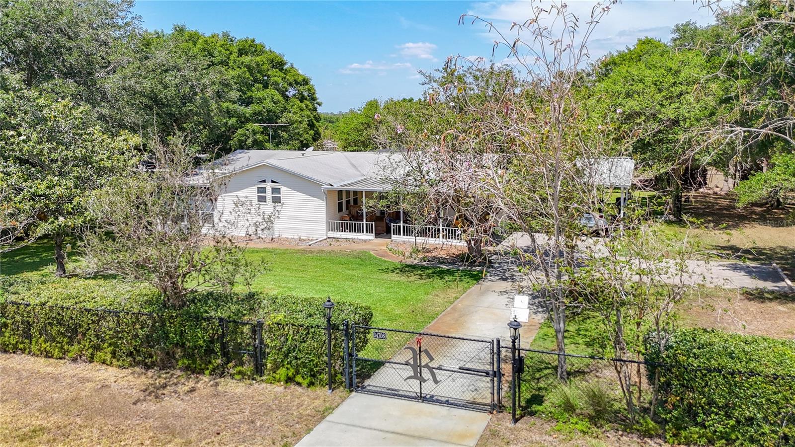 BACK ON THE MARKET. NEW ROOF TO BE INSTALLED PRIOR TO CLOSING. This 3 bedroom + office Modular pool home is nestled on a stunning 1.06 acre fenced property that brings country living right in the heart of Dade City. As you approach, you will be greeted with an electric/solar gate that leads down the concrete driveway to the 2-car carport. The impressively landscaped front yard with mature trees and several flower beds leads to the cozy, front-covered porch. Step inside to the comfy and inviting living/dining room with huge full windows for beautiful natural lighting, cathedral ceilings and a wood burning fireplace to keep warm on those cool winter evenings. The impressive chef’s dream eat-in kitchen features tons of cabinets with crown molding, granite counters, Bosch dishwasher, a closet pantry, and a center island with storage and granite and shiplap covering. The spacious master bedroom with en-suite offers a huge walk-in closet. The master bathroom has double vanities, and an ADA tile shower and lots of cabinets. The roomy 2nd and 3rd bedroom both have walk-in closets and share the 2nd bathroom. There is an enclosed porch that is currently being used as a 4th bedroom, has a window AC and newer vapor barrier and insulation in the walls. French Doors lead to the spacious 12x12 office with sliding glass doors that lead to the pool. A dedicated laundry room includes a washer, dryer, sink with granite counters, cabinets and pantry. Step out back to enjoy the gorgeous views or relax and unwind by the pool. Other amazing features include Roof 2012, AC with UV lighting just serviced, all ducts recently cleaned, Generac generator (just serviced and full propane), whole house surge protection, new laminate floors, new water heater, water softener, concrete walkway to the pool, new pool pump, workshop off the house, an additional 8x12 shed, sprinkler system, completely fenced, gutters, drywall with rounded corners throughout the home, and new landscaping, sprinklers on a well. Prime location that’s a short drive to shopping, dining, entertainment, great schools, hospitals, and easy access to I-75, and SR52 for easy access to the airport, Tampa, Clearwater and St. Pete Beaches (Ranked in the top 5 Beaches in the US) and the famous Tarpon Springs sponge docks.