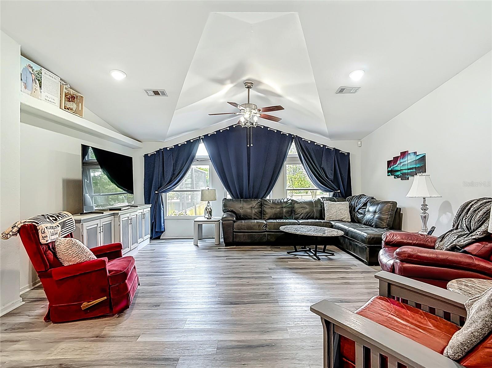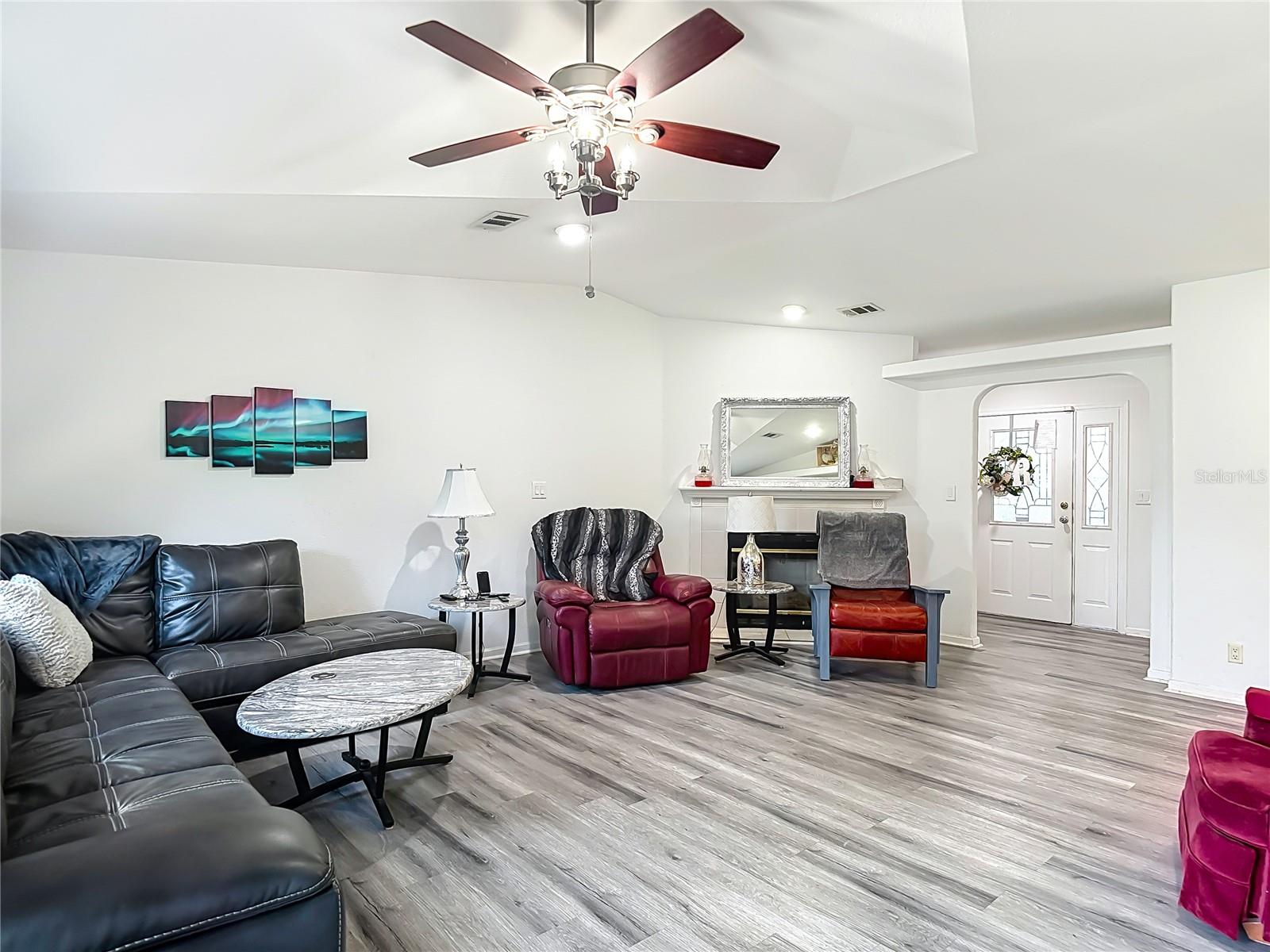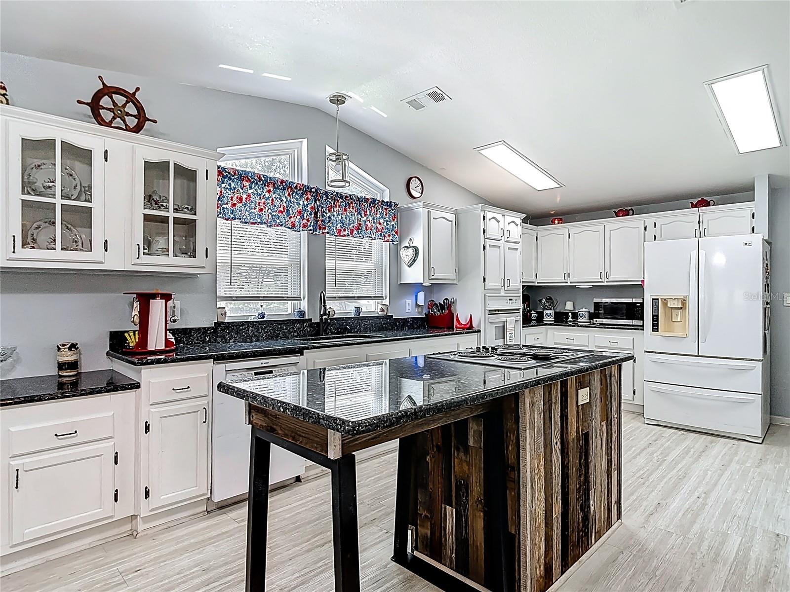 BACK ON THE MARKET. NEW ROOF TO BE INSTALLED PRIOR TO CLOSING. This 3 bedroom + office Modular pool home is nestled on a stunning 1.06 acre fenced property that brings country living right in the heart of Dade City. As you approach, you will be greeted with an electric/solar gate that leads down the concrete driveway to the 2-car carport. The impressively landscaped front yard with mature trees and several flower beds leads to the cozy, front-covered porch. Step inside to the comfy and inviting living/dining room with huge full windows for beautiful natural lighting, cathedral ceilings and a wood burning fireplace to keep warm on those cool winter evenings. The impressive chef’s dream eat-in kitchen features tons of cabinets with crown molding, granite counters, Bosch dishwasher, a closet pantry, and a center island with storage and granite and shiplap covering. The spacious master bedroom with en-suite offers a huge walk-in closet. The master bathroom has double vanities, and an ADA tile shower and lots of cabinets. The roomy 2nd and 3rd bedroom both have walk-in closets and share the 2nd bathroom. There is an enclosed porch that is currently being used as a 4th bedroom, has a window AC and newer vapor barrier and insulation in the walls. French Doors lead to the spacious 12x12 office with sliding glass doors that lead to the pool. A dedicated laundry room includes a washer, dryer, sink with granite counters, cabinets and pantry. Step out back to enjoy the gorgeous views or relax and unwind by the pool. Other amazing features include Roof 2012, AC with UV lighting just serviced, all ducts recently cleaned, Generac generator (just serviced and full propane), whole house surge protection, new laminate floors, new water heater, water softener, concrete walkway to the pool, new pool pump, workshop off the house, an additional 8x12 shed, sprinkler system, completely fenced, gutters, drywall with rounded corners throughout the home, and new landscaping, sprinklers on a well. Prime location that’s a short drive to shopping, dining, entertainment, great schools, hospitals, and easy access to I-75, and SR52 for easy access to the airport, Tampa, Clearwater and St. Pete Beaches (Ranked in the top 5 Beaches in the US) and the famous Tarpon Springs sponge docks.