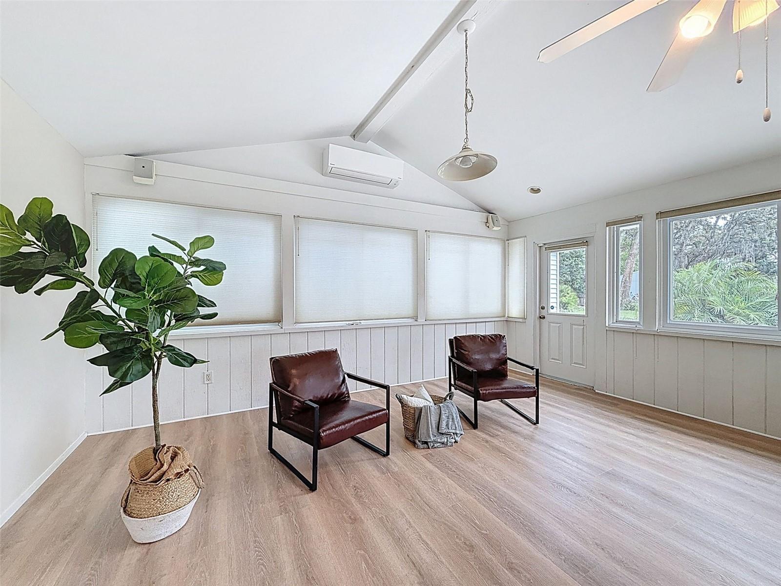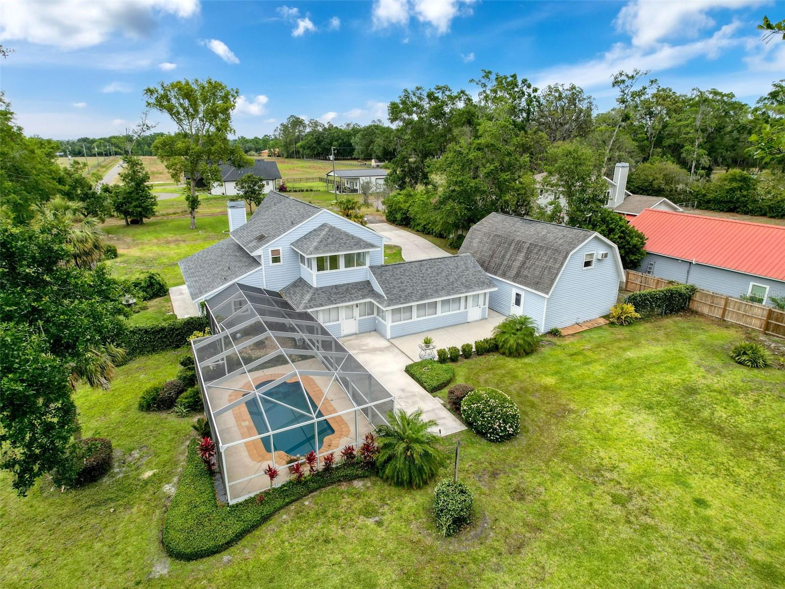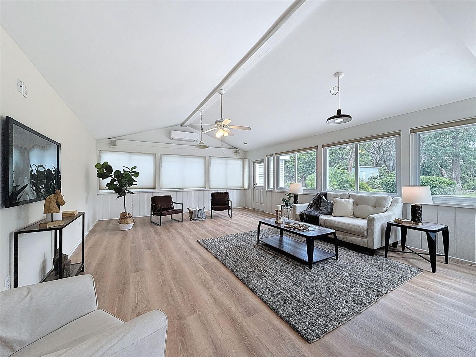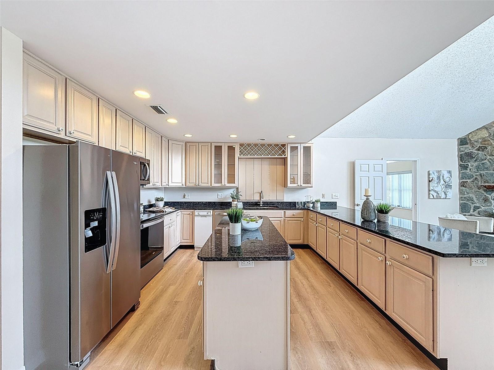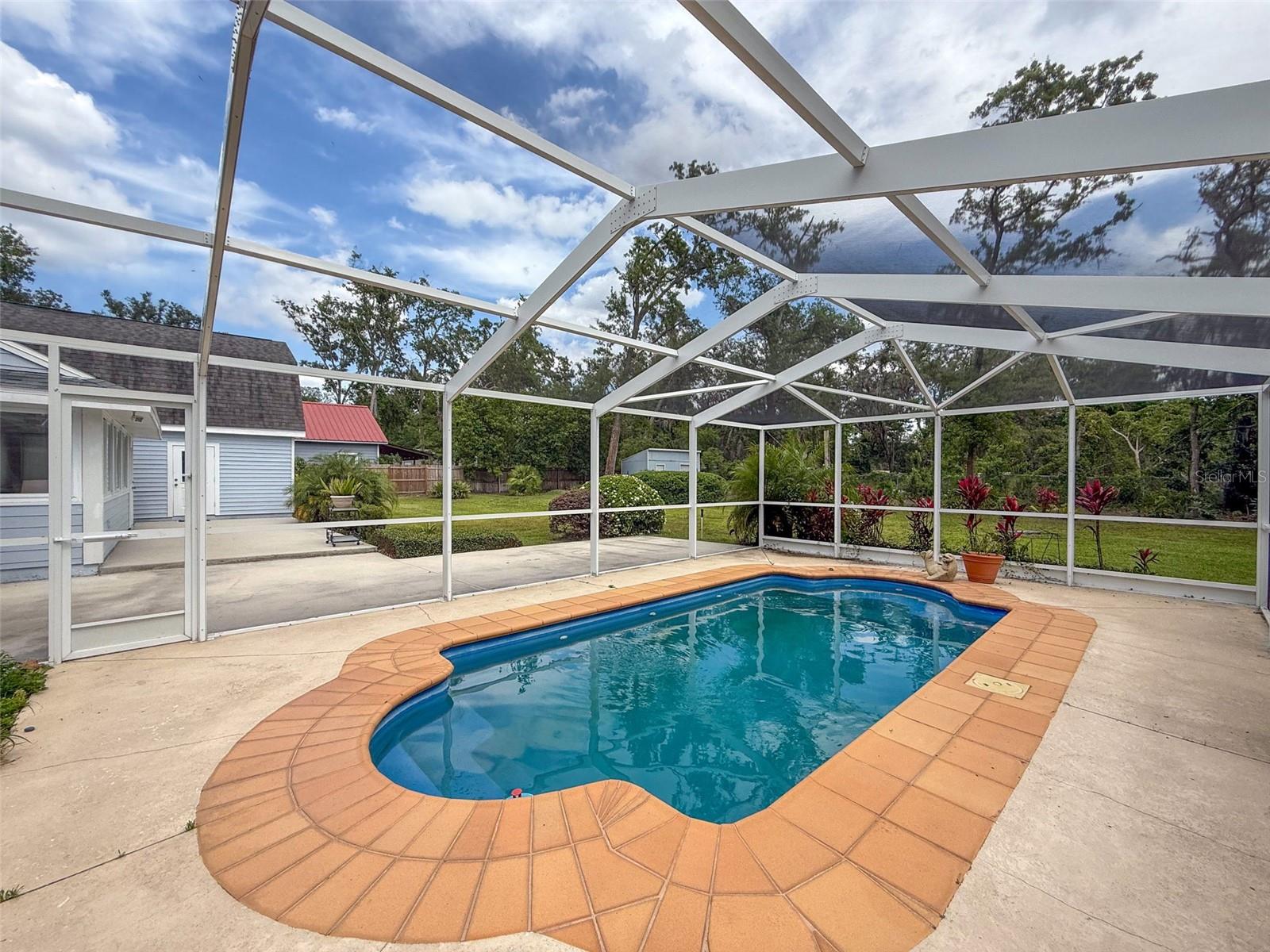 Nestled on a sprawling 1.25-acre lot, this inviting 2-bedroom, 3-bathroom pool home offers a blend of comfort and potential. Step inside to discover fresh luxury vinyl flooring and paint throughout, complemented by abundant natural light that fills the spacious rooms. The kitchen boasts stylish wood cabinets, granite countertops, stainless steel appliances, and a convenient island, perfect for culinary enthusiasts. Outside, a sparkling pool awaits, surrounded by a paver deck for relaxing and entertaining. The property also features a workshop in the garage, offering space for hobbies or projects, and a large Florida room with a brand-new air conditioner, presenting endless possibilities for use.