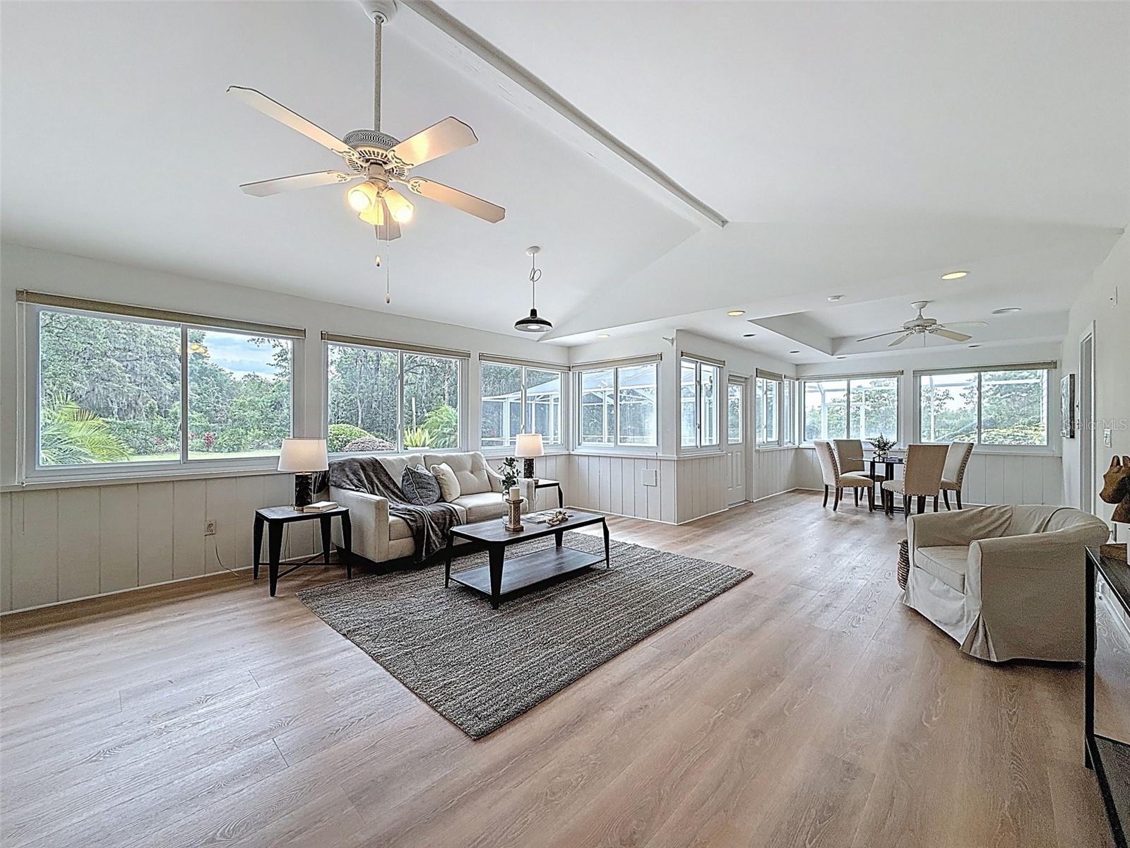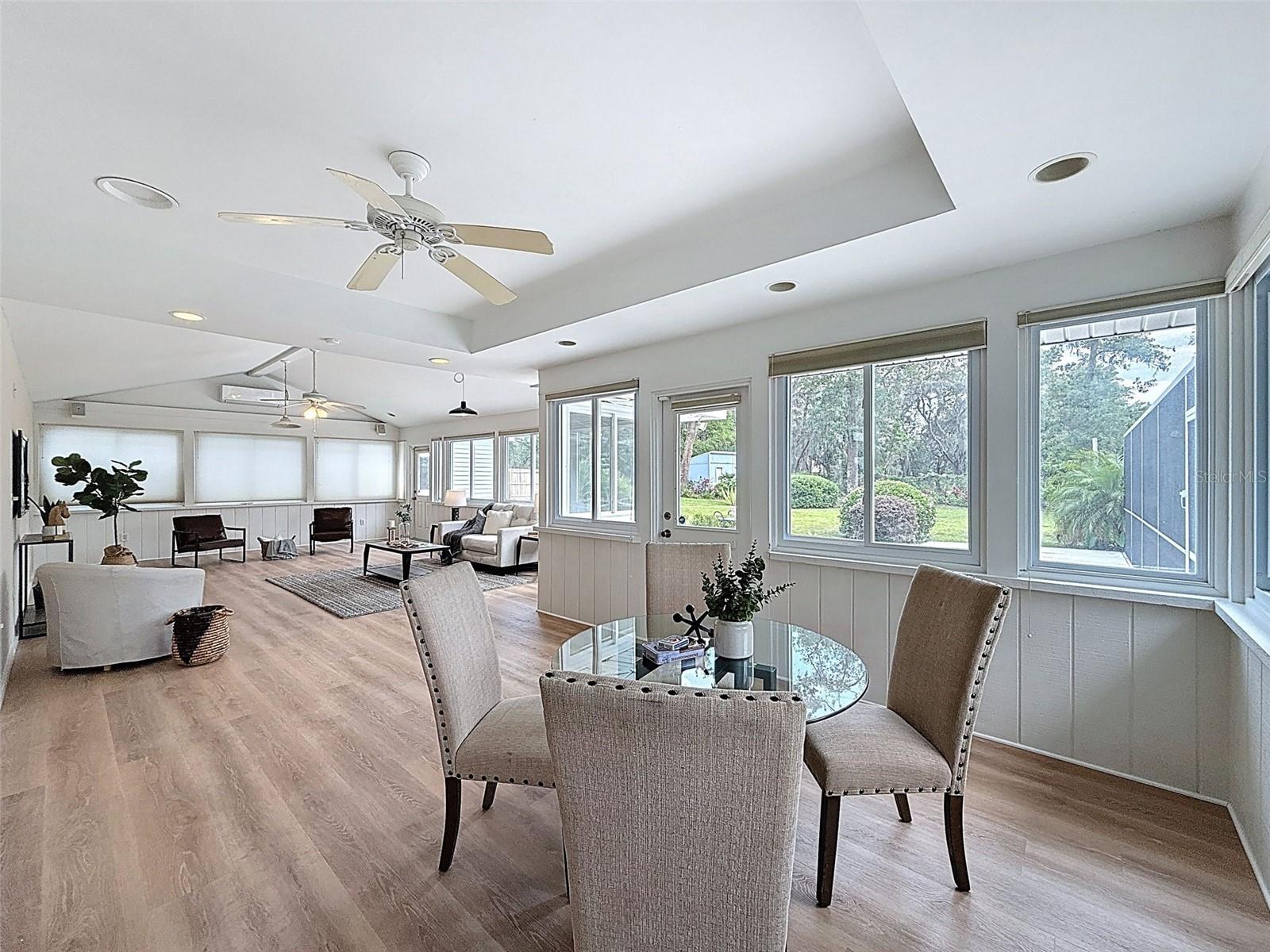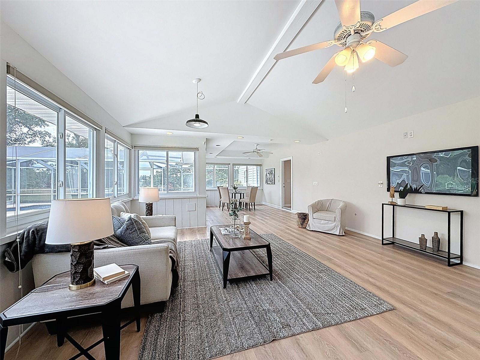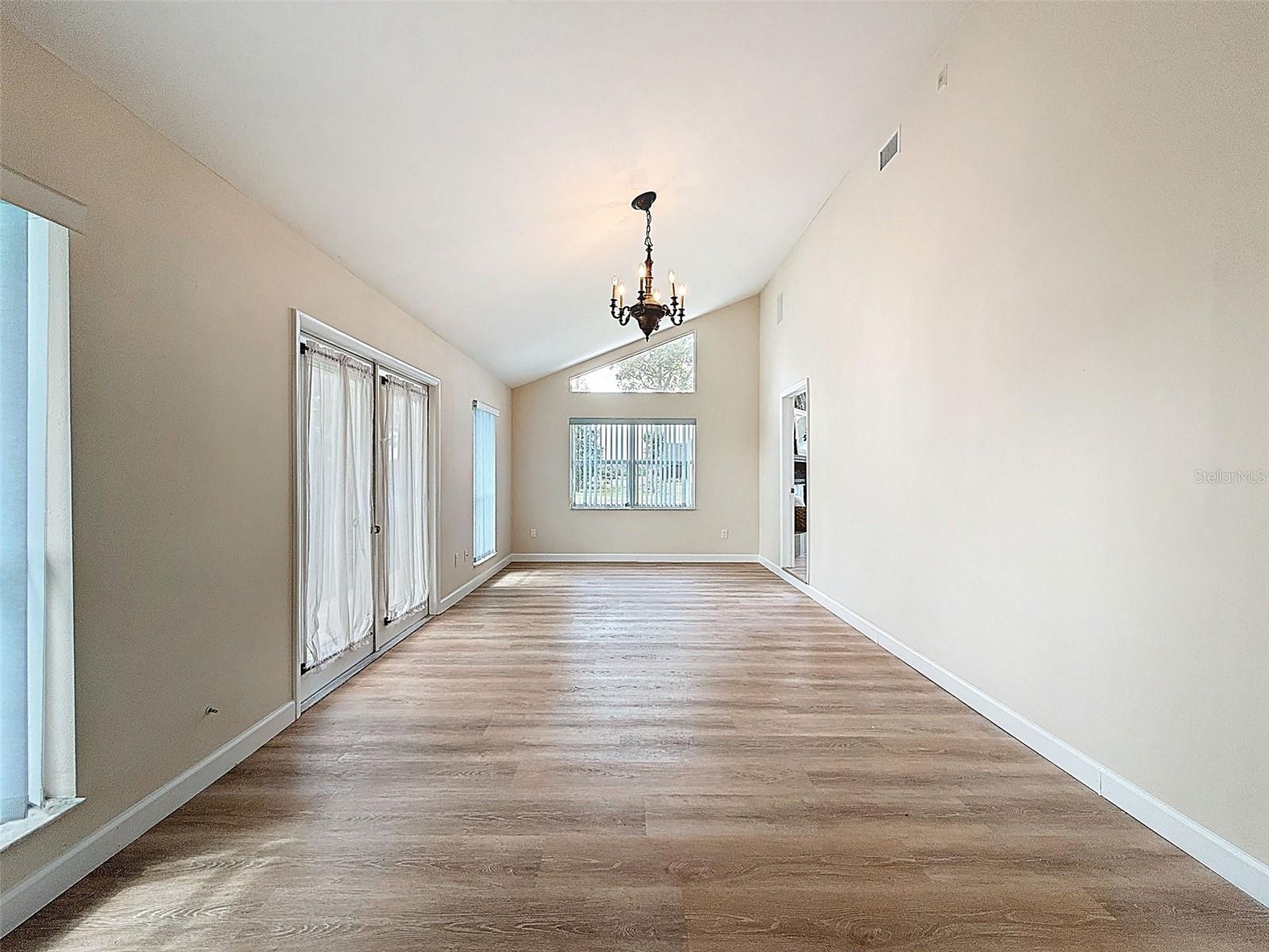 Nestled on a sprawling 1.25-acre lot, this inviting 2-bedroom, 3-bathroom pool home offers a blend of comfort and potential. Step inside to discover fresh luxury vinyl flooring and paint throughout, complemented by abundant natural light that fills the spacious rooms. The kitchen boasts stylish wood cabinets, granite countertops, stainless steel appliances, and a convenient island, perfect for culinary enthusiasts. Outside, a sparkling pool awaits, surrounded by a paver deck for relaxing and entertaining. The property also features a workshop in the garage, offering space for hobbies or projects, and a large Florida room with a brand-new air conditioner, presenting endless possibilities for use.