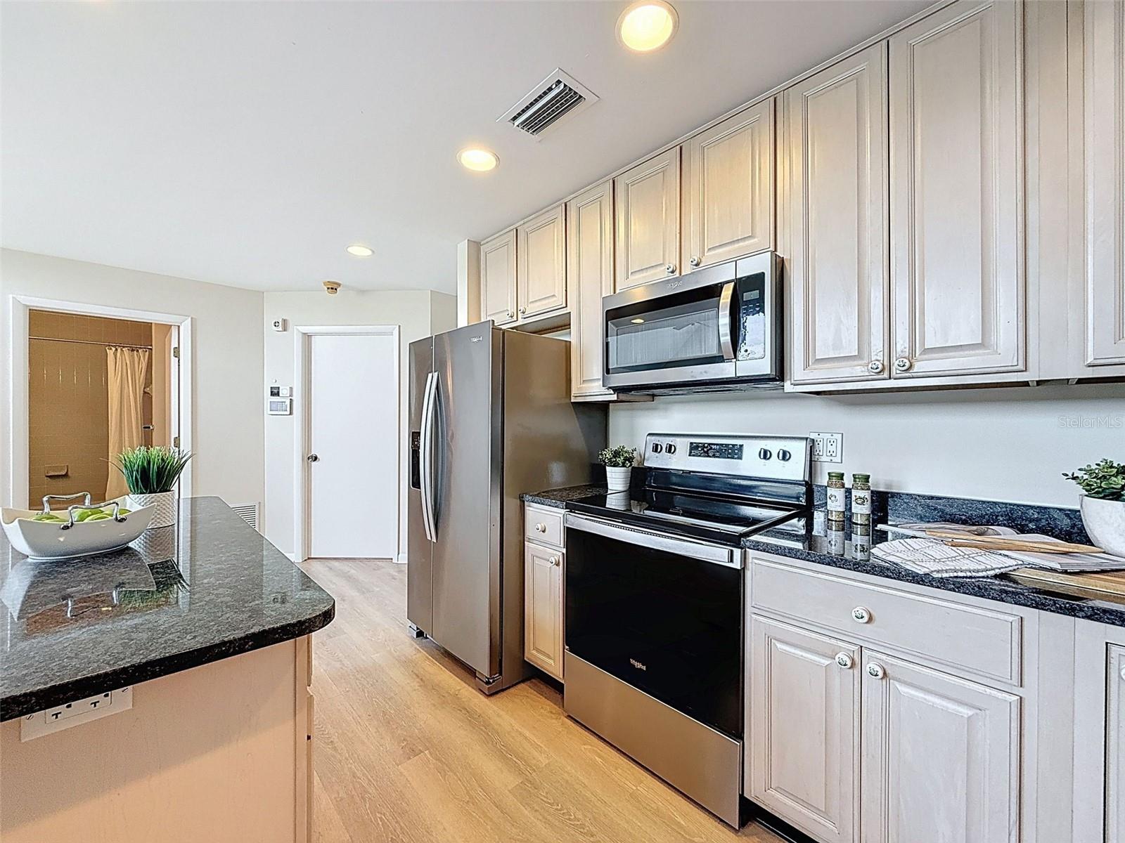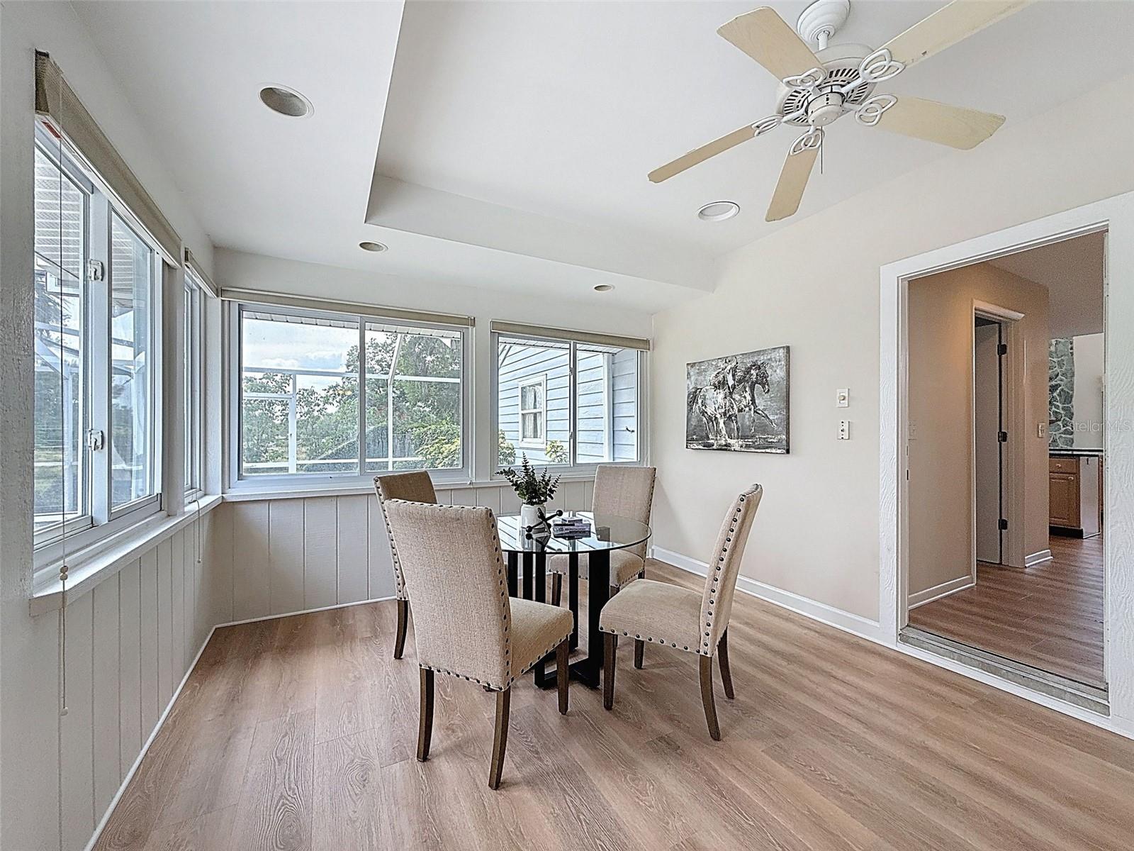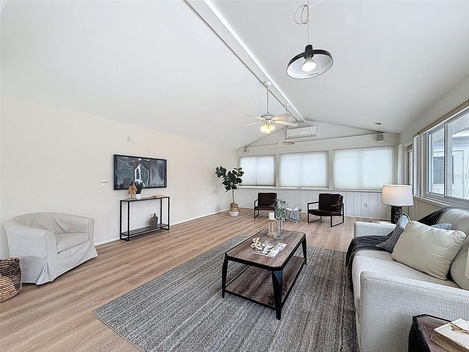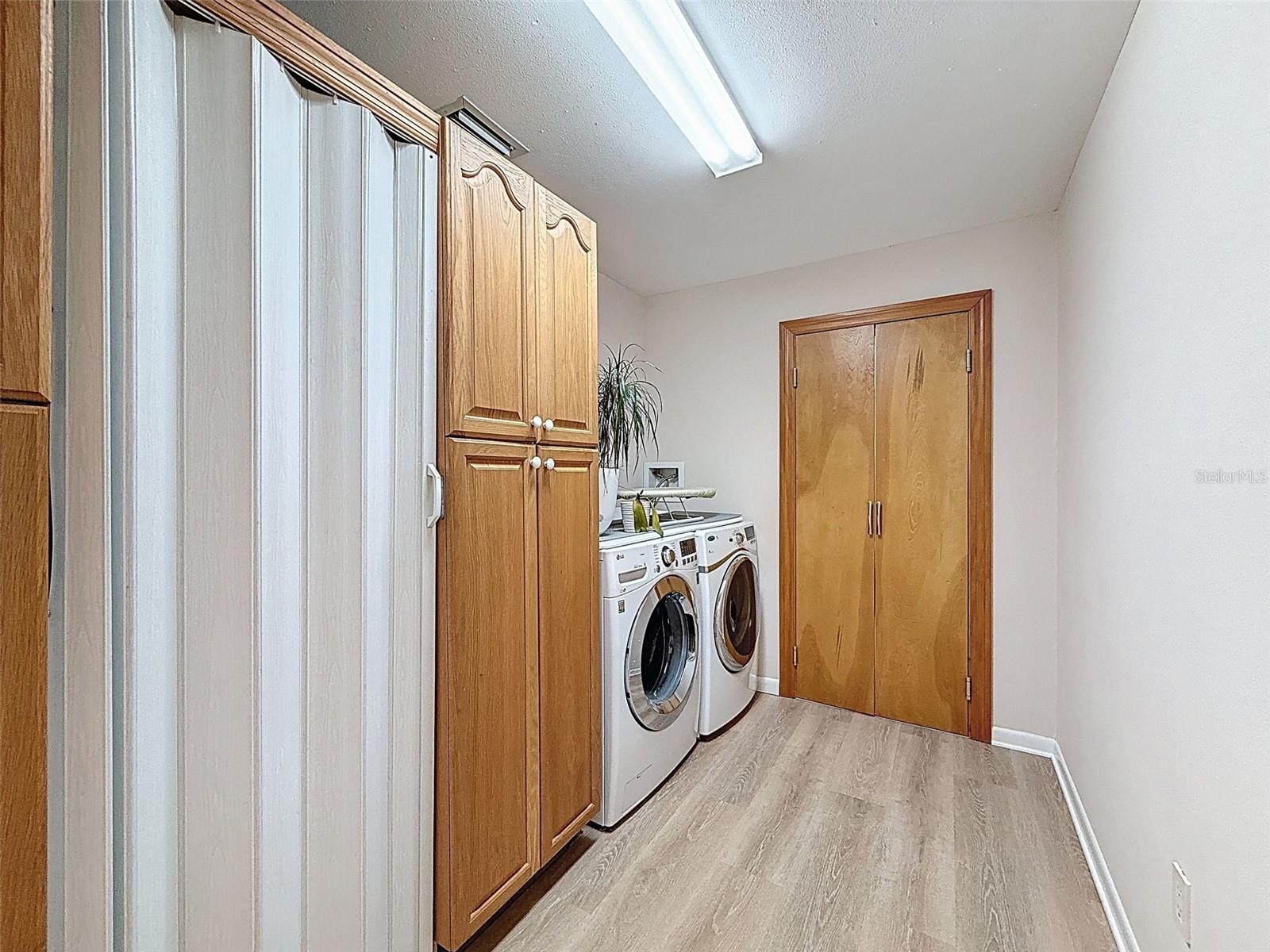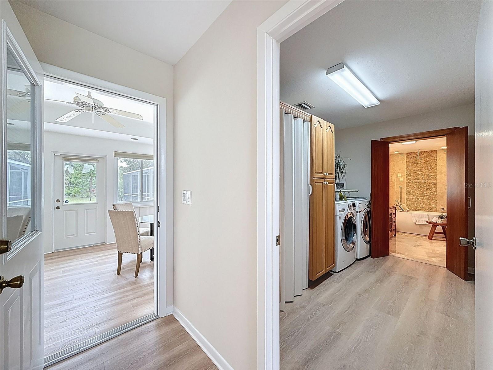 Nestled on a sprawling 1.25-acre lot, this inviting 2-bedroom, 3-bathroom pool home offers a blend of comfort and potential. Step inside to discover fresh luxury vinyl flooring and paint throughout, complemented by abundant natural light that fills the spacious rooms. The kitchen boasts stylish wood cabinets, granite countertops, stainless steel appliances, and a convenient island, perfect for culinary enthusiasts. Outside, a sparkling pool awaits, surrounded by a paver deck for relaxing and entertaining. The property also features a workshop in the garage, offering space for hobbies or projects, and a large Florida room with a brand-new air conditioner, presenting endless possibilities for use.