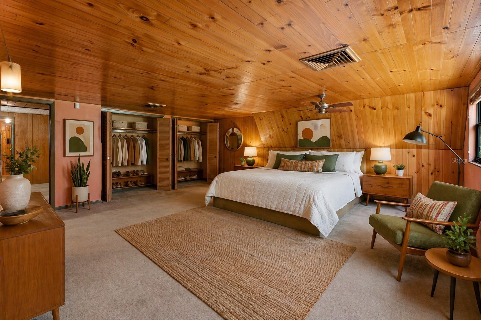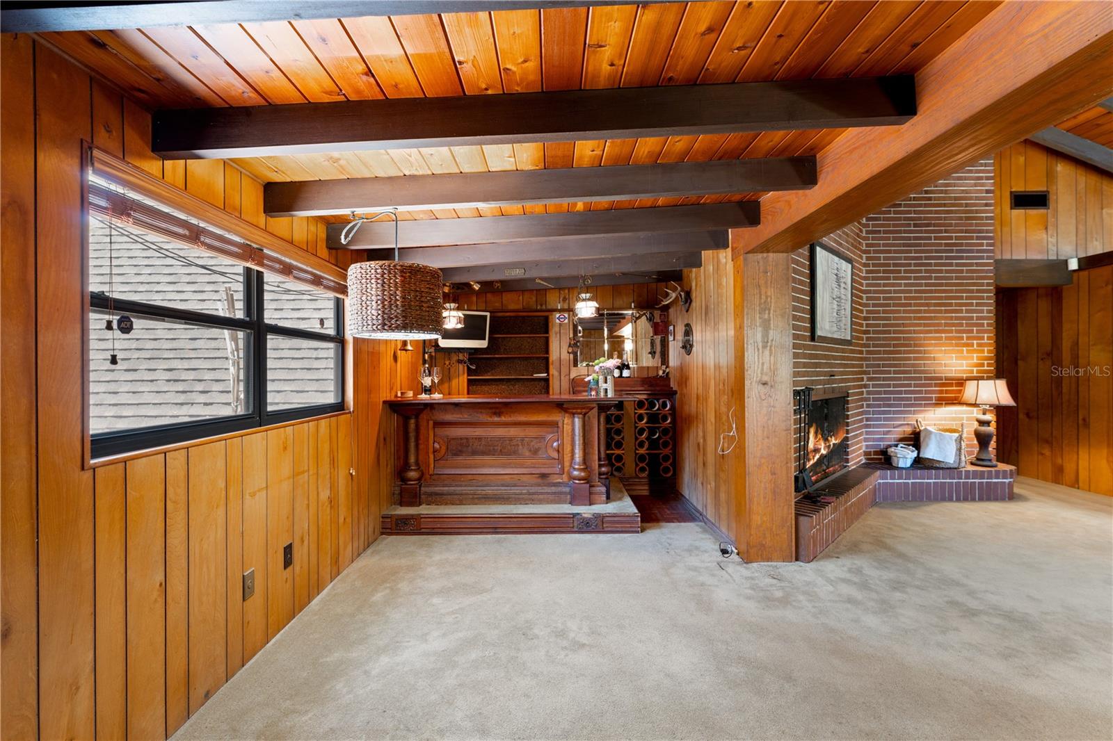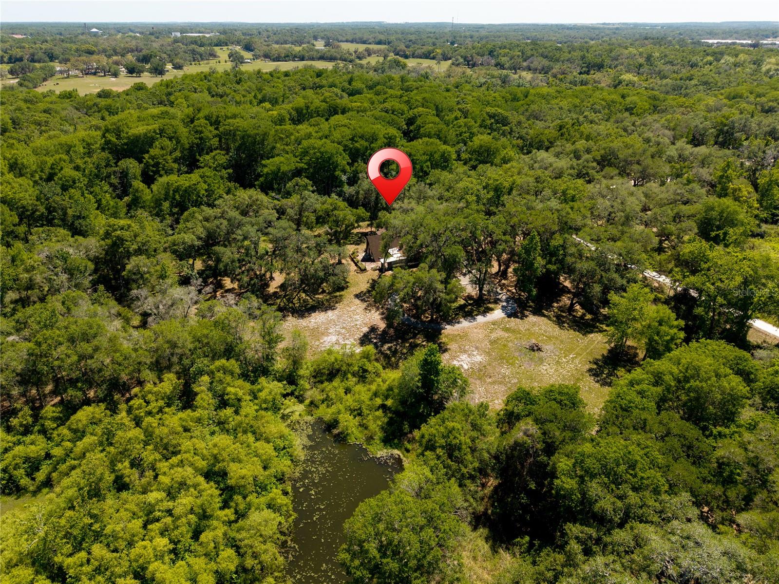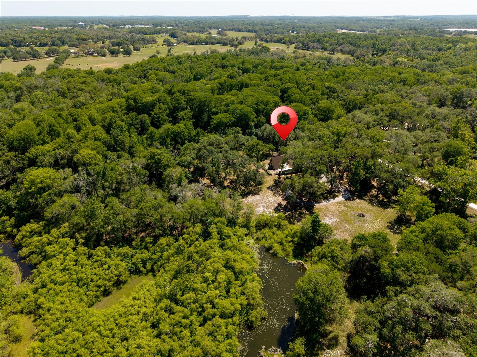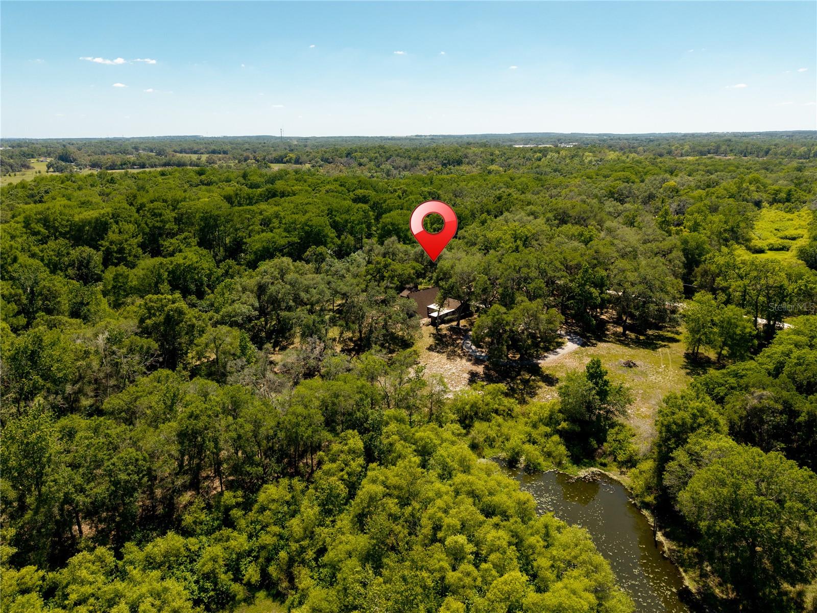 One or more photo(s) has been virtually staged. Nestled beneath a canopy of mature trees along the Withlacoochee River, this rare mid-century modern A-Frame retreat offers privacy, character, and over 5.6 acres of Old Florida landscape just minutes from Dade City. Built in 1963 & 1975, this distinctive property blends architectural charm with a peaceful natural setting rarely found. Inside, the home features soaring vaulted and cathedral ceilings, exposed beams, and rich wood detailing that create a warm, lodge-like atmosphere. The main living space is anchored by a brick wood-burning fireplace and custom-built bar. The floorplan flows into a kitchen with solid surface counters and generous counterspace. The flexible floor plan offers a primary bedroom on the main floor, along with multiple additional spaces such as a library, office, & loft. These spaces give the floorplan a unique charm and opportunity for creative use. Situated on over 5 acres (additional adjacent acreage available), the property includes direct canal and river frontage on the Withlacoochee River, allowing you to enjoy kayaking, fishing, and nature right from your backyard. Outdoor features include a patio, circular drive, private yard, and attached two-car garage, plus additional storage with a shed. Located on a quiet dirt road with a private entrance, this property offers the perfect balance of seclusion and convenience, with easy access to US-301, downtown Dade City, shopping, and dining. A rare opportunity to own a one-of-a-kind riverfront property with acreage, architectural character, and endless potential.