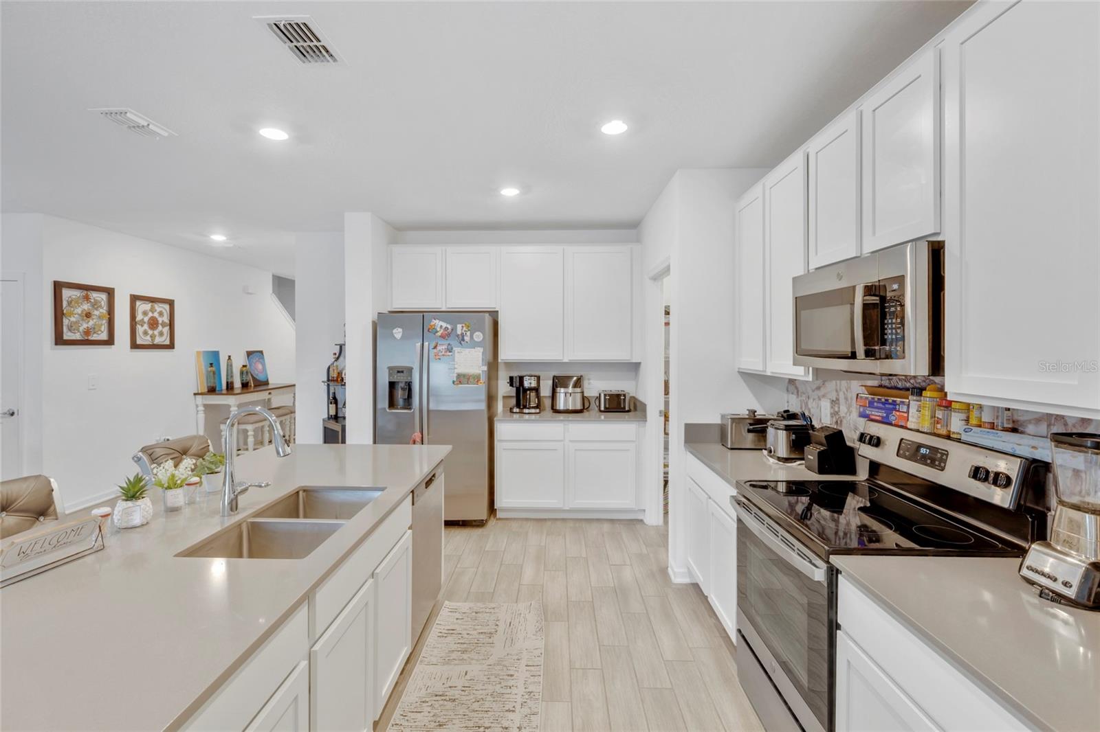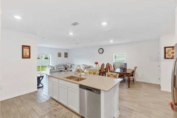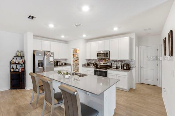 Welcome to this stunning 2-year-old, 6-bedroom, 3-bath home situated on a desirable corner lot in Davenport. Featuring an open-concept first floor with beautiful tile throughout, this home offers modern living at its finest. The large kitchen boasts stainless steel appliances, a walk-in pantry, and a large island overlooking the great room – perfect for entertaining! The first floor also includes 1 bedroom and 1 full bath, providing convenience and flexibility. Upstairs, you'll find a spacious master suite, along with additional bedrooms. The fully fenced backyard offers privacy and space for outdoor activities. This energy-efficient home includes leased solar panels (transferrable for an additional monthly fee) and is part of a low-HOA community with fantastic amenities, including a large community pool and cabana area. Located close to Disney, Universal Studios, major highways, restaurants, and shopping centers, this home is perfect for year-round living or as a vacation retreat. Don’t miss out on this opportunity!