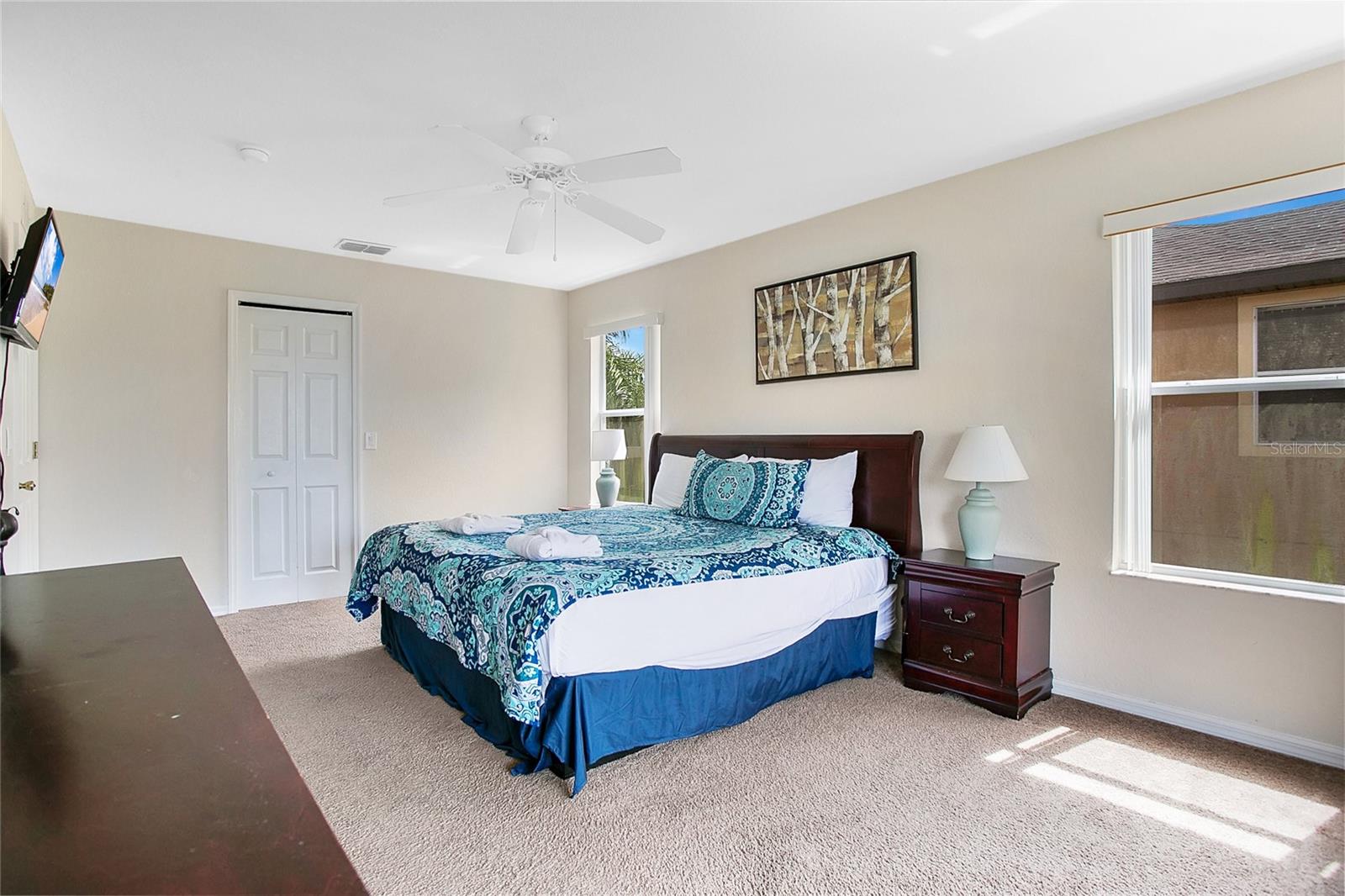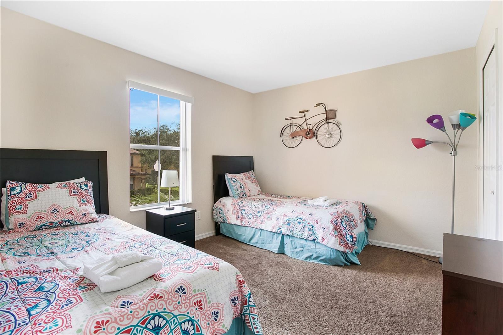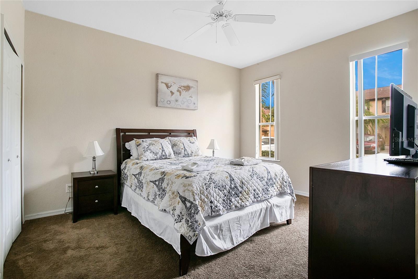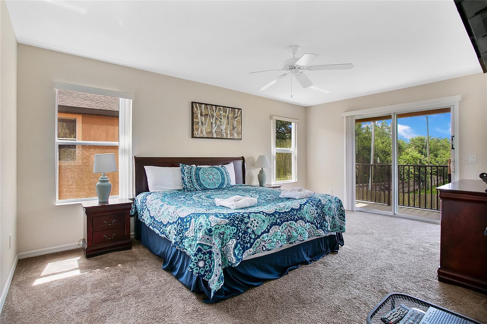 Welcome to this exceptional turnkey 4-bedroom, 3.5-bathroom townhome in the desirable golf cart community of Regal Palms resort, Davenport. Currently used as a vacation rental with rental income available, this property is a prime investment opportunity. The home features a modern open floor plan, complete with a balcony, lanai, and a first-floor bedroom with its own private entrance. The spacious layout seamlessly connects the kitchen, dining area, and living room, all bathed in natural light, creating a warm and inviting atmosphere. The master bedroom offers a peaceful retreat with a walk-in closet, balcony, and an en-suite bathroom. Regal Palms provides fantastic amenities, including resort-style heated pools with waterfalls, water slides, a lazy river, indoor and outdoor jacuzzis, a poolside tiki bar, a games room, a playground, a fitness center with a steam room and sauna, a clubhouse, a restaurant, and an ice cream parlor. Additionally, the HOA fee covers 24-hour security, cable TV, community pool, internet, and exterior maintenance. Located near Disney World and Universal Studios, with easy access to schools, shopping, restaurants, and beautiful beaches, this property is perfect for both investors and families. Schedule your showing today to explore this sought-after location.