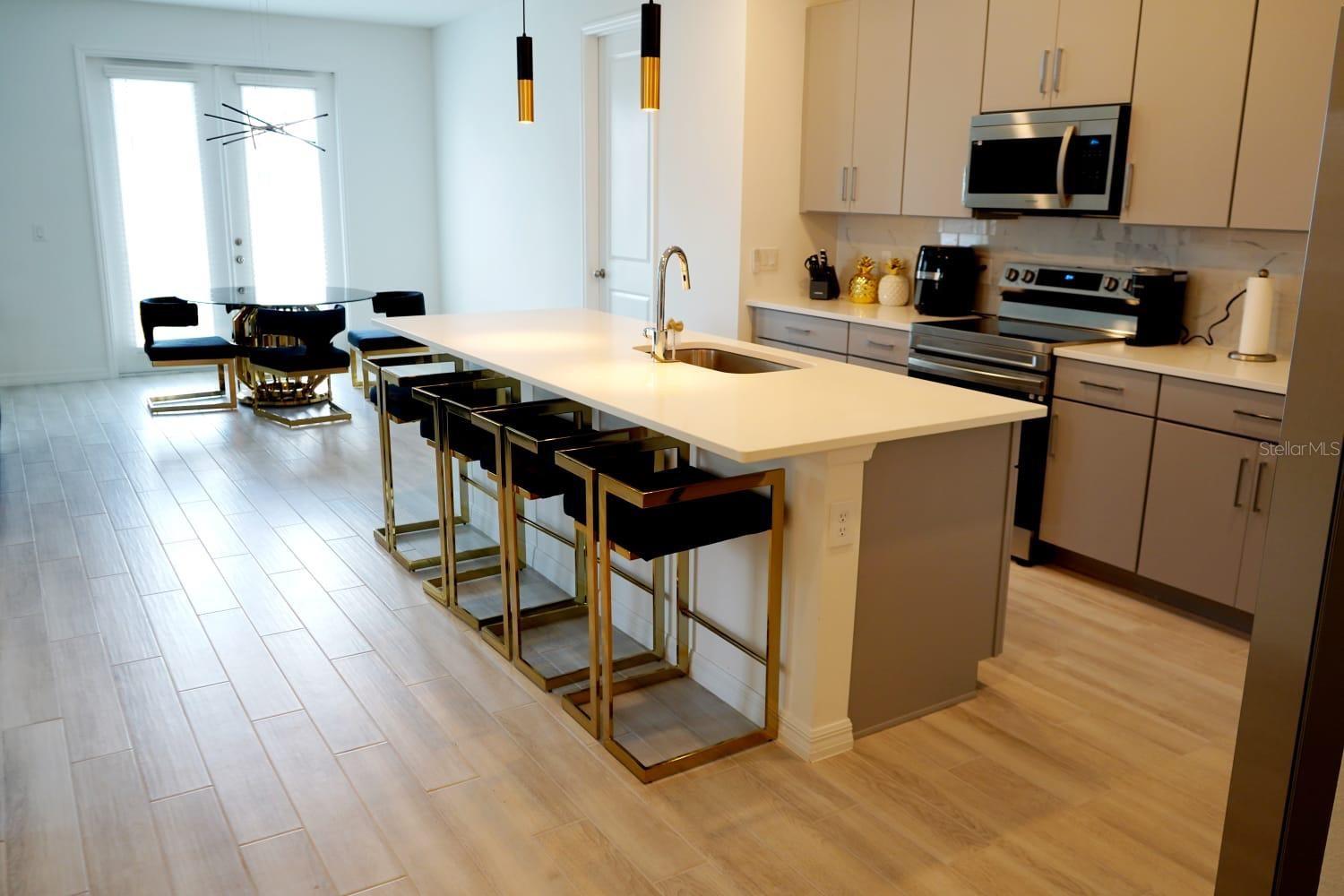Experience resort-style living in Champions Gate with this beautifully upgraded 4-bedroom, 2-bathroom home. Situated on an oversized corner lot, this 1,910 sq. ft. residence features a spacious open floor plan and fresh interior paint throughout. Interior highlights include high-quality plank ceramic tile, quartz countertops in the kitchen and bathrooms, 42” cabinets, sleek stainless steel appliances, and soaring ceilings. Enjoy access to exceptional resort-style amenities and take advantage of flexible zoning options for short-term rental, long-term rental, or primary residence. This property presents an outstanding opportunity for both investors and discerning buyers. Schedule your private tour today.