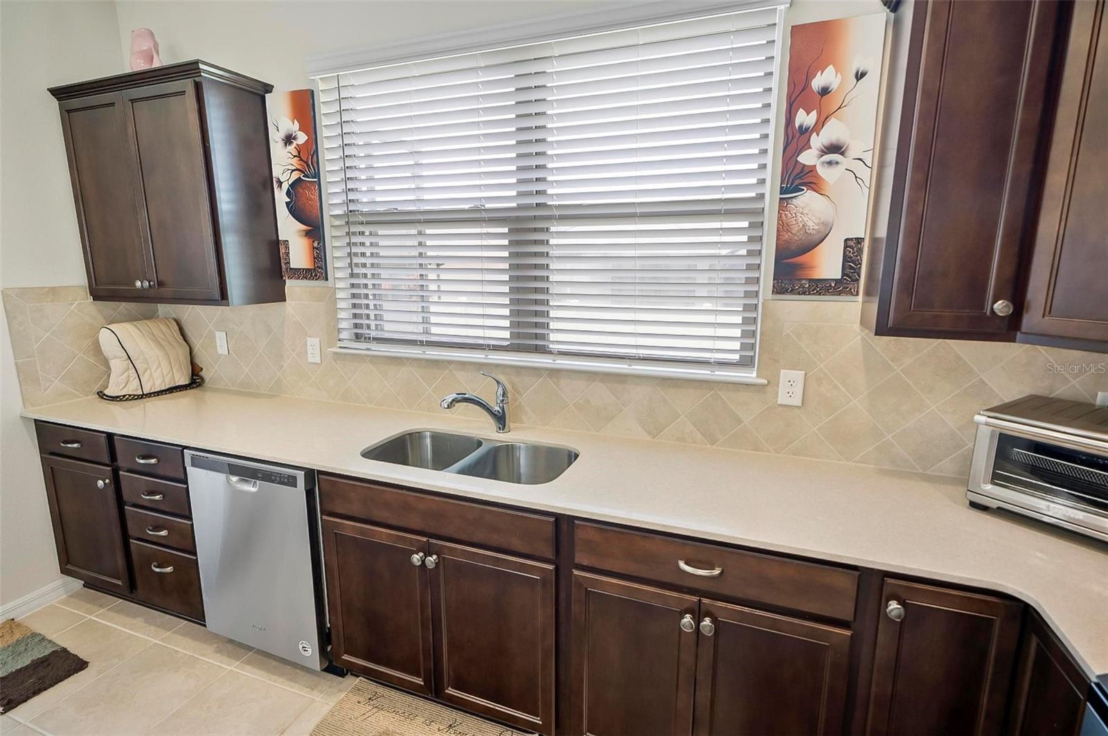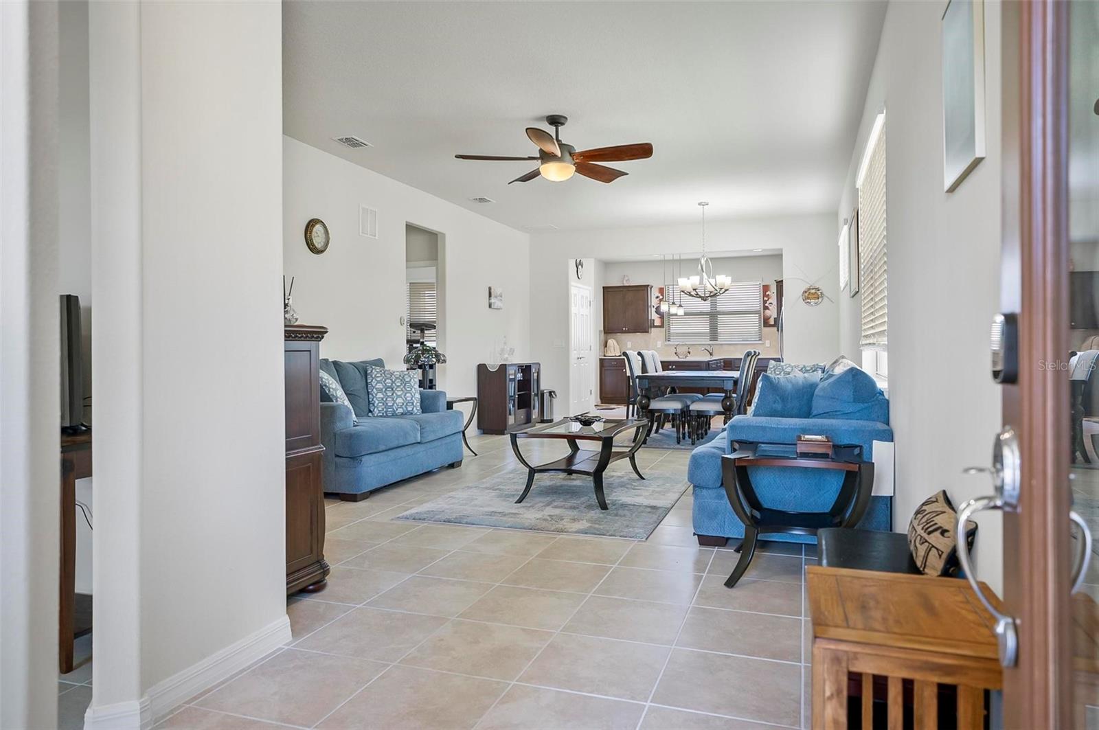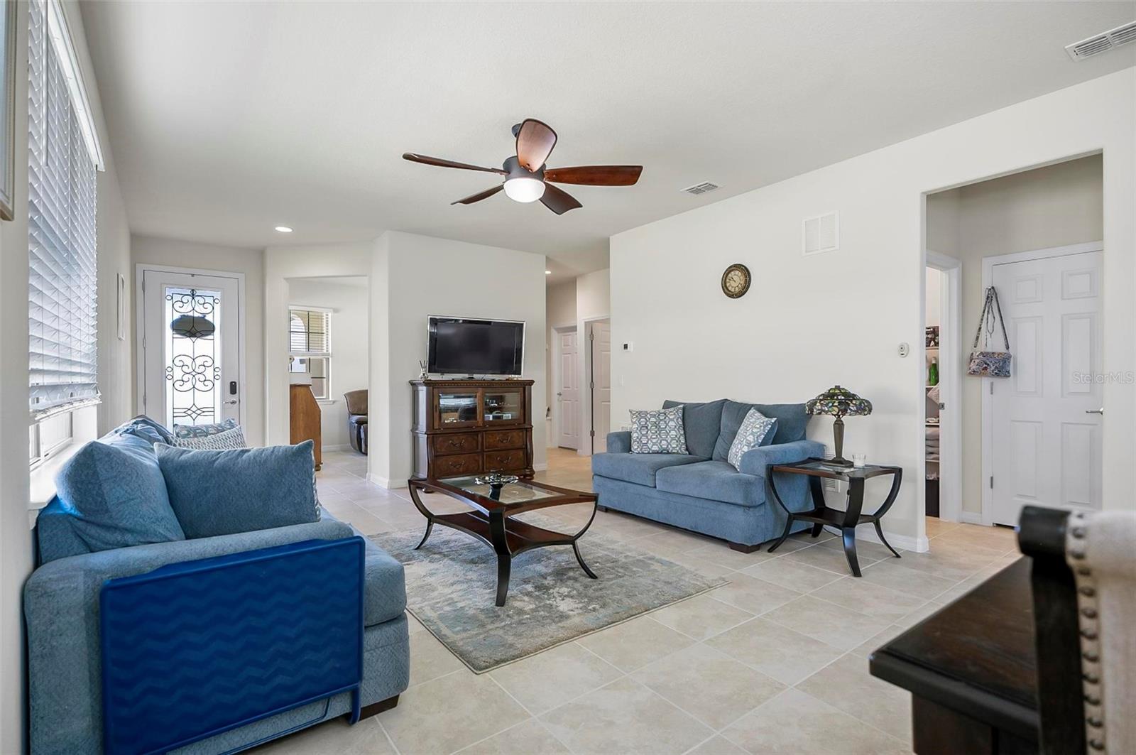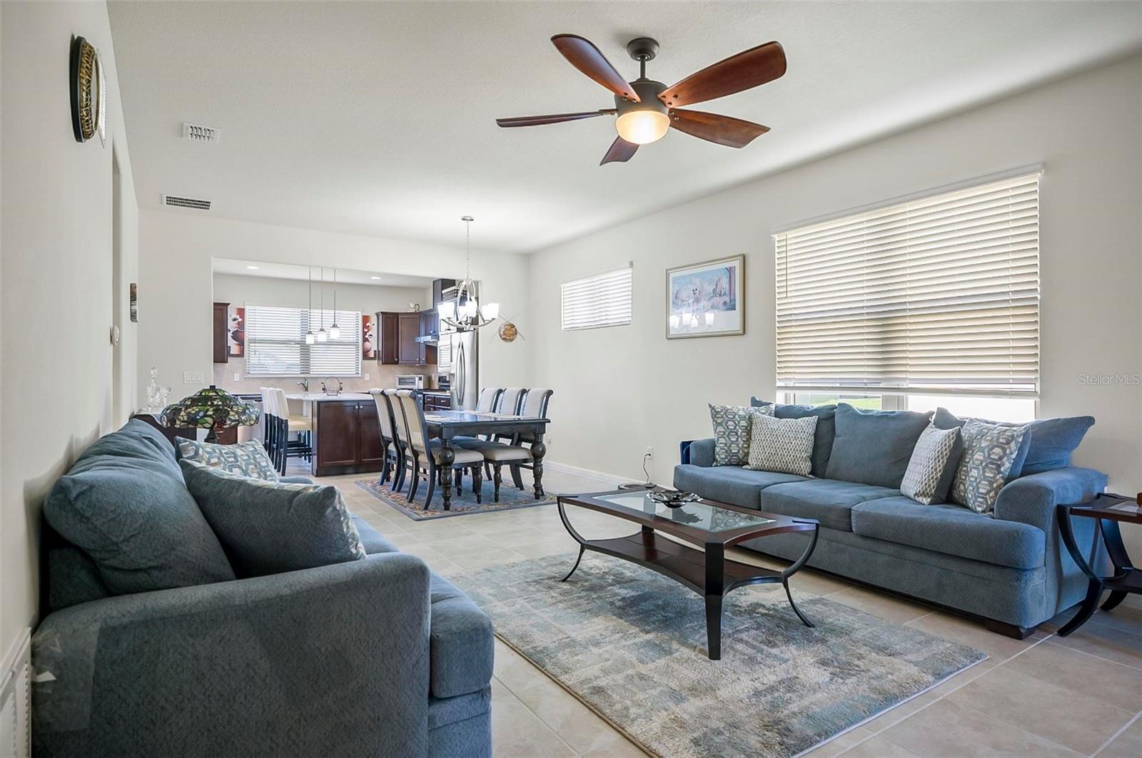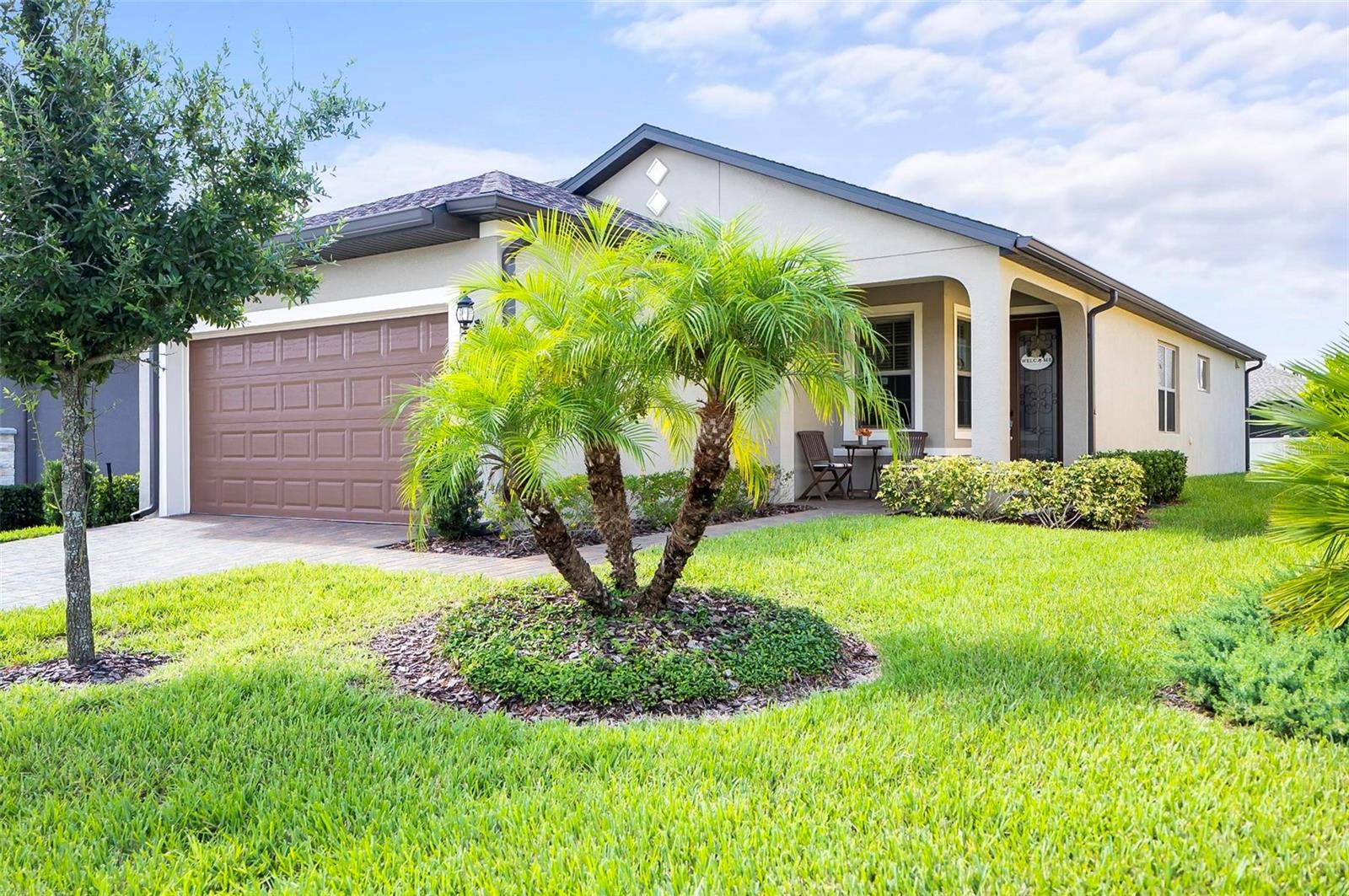 Presenting a stunning 2-bedroom, 2-bathroom home located in the vibrant 55+ community of Del Webb near Orlando. A traditional single-story layout, offering well-defined spaces that enhance both functionality and style. As you step into the kitchen, you will enjoy the beautiful dark cabinets with convenient pull-out shelving and also ample counter space, including a large island, with quartz counter tops. You can relax in the bright gathering space on the outdoor screened patio. The spacious owner’s suite features a walk-in closet with custom boxed shelves. Step outside to discover a beautifully landscaped backyard. The home includes a dedicated laundry area with washer and dryer included. Don't forget the flex space as you walk in the front door. Great for office space, TV room or an extra bed if needed. An attached 2-car garage simplifies your daily life, providing ample space for your vehicles or additional storage. This welcoming community offers a gorgeous clubhouse for lunch, and a gym for your workouts. Enjoy the indoor and outdoor pools, pickleball courts, golf course, tennis courts and more recreational activities. Lawn and shrub care is included in the HOA. Conveniently located just minutes from I-4, this home offers easy access to all the attractions and shopping areas that the region has to offer. Don’t miss the opportunity to experience this exceptional home and community. Schedule your home tour today and discover all that Del Webb Orlando has to offer!