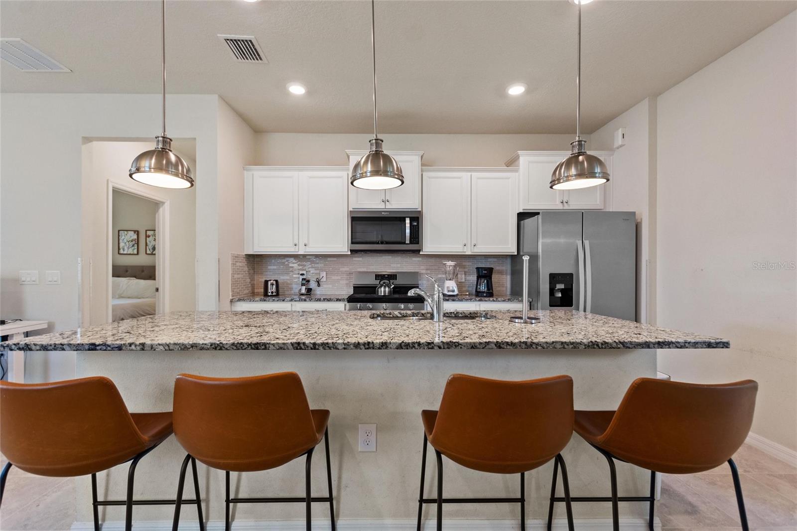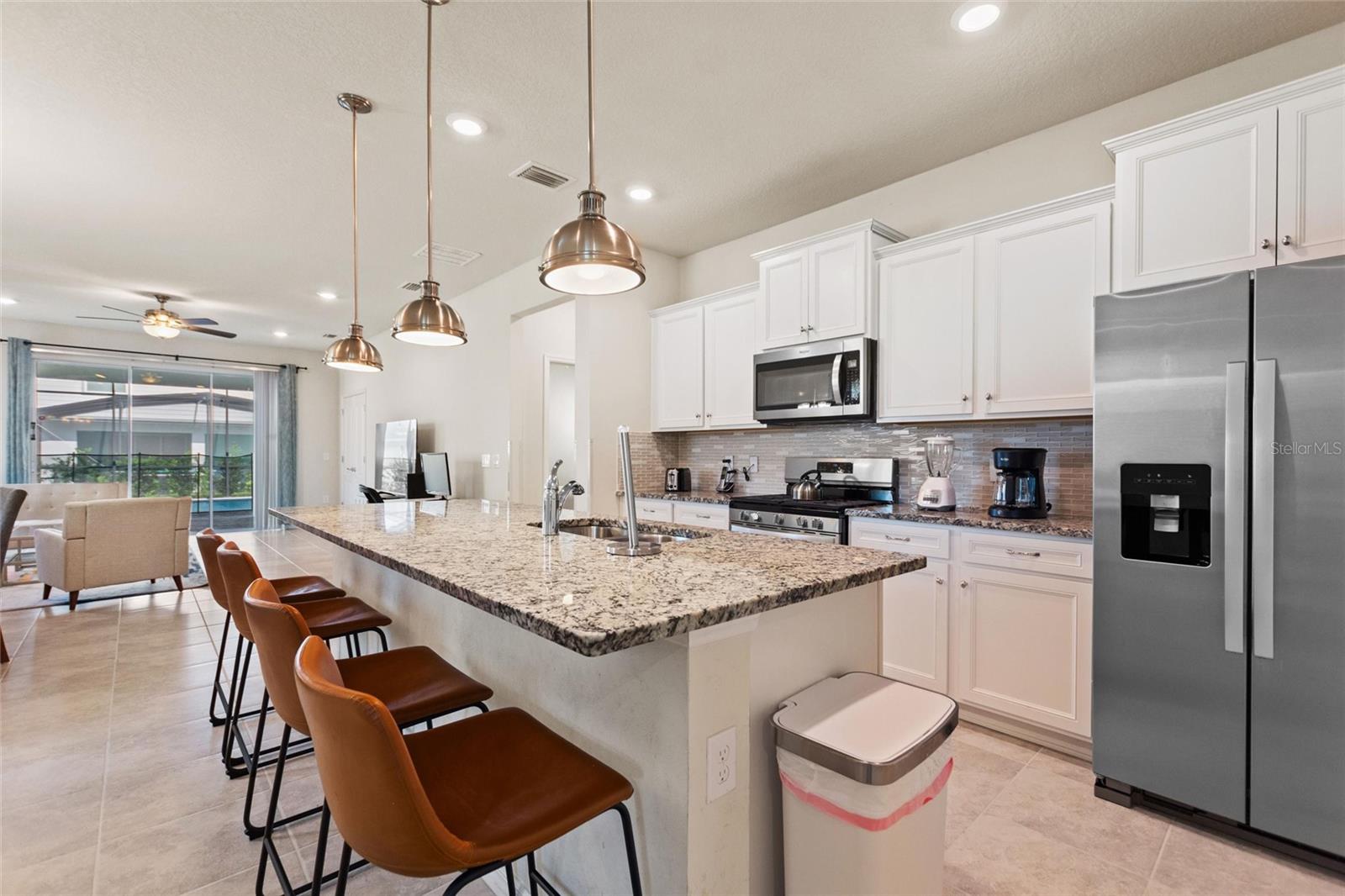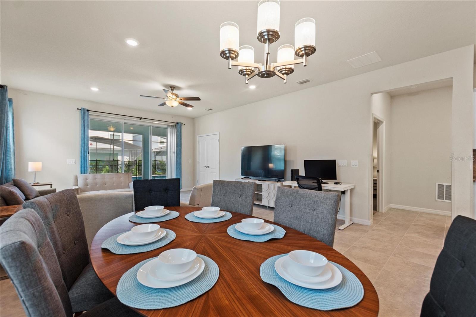 Welcome to 7380 Oakmoss Loop, located in the desirable resort community of Solterra. This luxurious 7-bedroom home with 5.5 bathrooms will impress you from the moment you arrive! (GREAT INCOME PRODUCING PROPERTY!) see attached info! The interior of this fully furnished turnkey property is designed with modern luxury in mind and features plush carpeted bedrooms and a loft area with a large flat screen TV for your private viewing pleasure. The living space boasts tile floors that lead to stackable sliding doors that open to the beautiful blue pool, perfect for entertaining family and friends on those lovely Florida days. The kitchen comes fully appointed with high-end stainless-steel appliances and granite countertops that shine like gems - sure to please any gourmet chef! Each bedroom has been carefully themed by experienced decorators who understand that restful sleep is essential for a rewarding vacation experience. With two master bedrooms included in the design, families or groups can easily find adequate sleeping quarters without compromising privacy or comfort. This exclusive residence also offers access to an array of resort amenities including a sparkling pool complete with lazy river, gym facilities, snack bar & shop as well as being close to all local attractions such as Disney, Universal, medical facilities and shopping plazas & restaurants. If desired this investment-grade property could be used both for residential purposes or even Airbnb rentals when not occupied by yourself – giving it great rental potential if desired! Also, there are bookings that can convey with the sale! Don’t miss out on your chance to own your piece of paradise at 7380 Oakmoss Loop. Owners are motivated – schedule a showing today! Check out the attached income spread sheet and booking calander for summer and fall!!