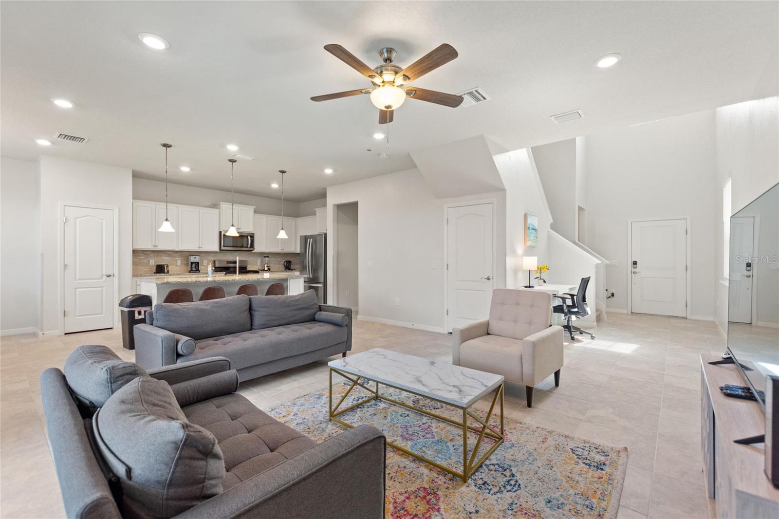 Welcome to 7384 Oakmoss Loop, a breathtaking 2540 square foot 5 bedroom 4 bath pool home in the exclusive and guard gated Solterra Resort Community. Located in Davenport, Florida. As soon as you step through the grand entryway of this fully furnished oasis, your gaze will be drawn upwards by soaring ceilings that will take your breath away. Abundant natural light floods every room creating an airy atmosphere perfect for entertaining guests indoors or on the serene outdoor patio. The split floor plan offers two master suites allowing everyone space and privacy when needed while top-of-the-line stainless steel appliances make meal prep a breeze in the spacious kitchen adorned with granite counters. Stackable sliding doors open up to reveal even more entertainment possibilities around the private pool area. Tile floors throughout are easy maintenance making cleaning effortless so you can focus on enjoying life here at 7384 Oakmoss Loop! This turnkey vacation rental is close to all local attractions such as Disney Universal Medical facilities and shopping plazas & restaurants. Situated on 4 fabulous acres of recreational resort amenities including a sparkling pool with lazy river, gym facilities, snack bar and shop anyone would be proud to call this property home! This one of a kind luxury residence offers everything you need for comfortable living from modern conveniences like wireless internet to luxurious furnishings that elevates everyday relaxation into something extraordinary – all located within an award winning community! If you’re looking for exceptional quality coupled with stunning beauty then don’t miss out – contact us today to schedule your showing! Check out the Rental Income and Current Bookings attached to the MLS.