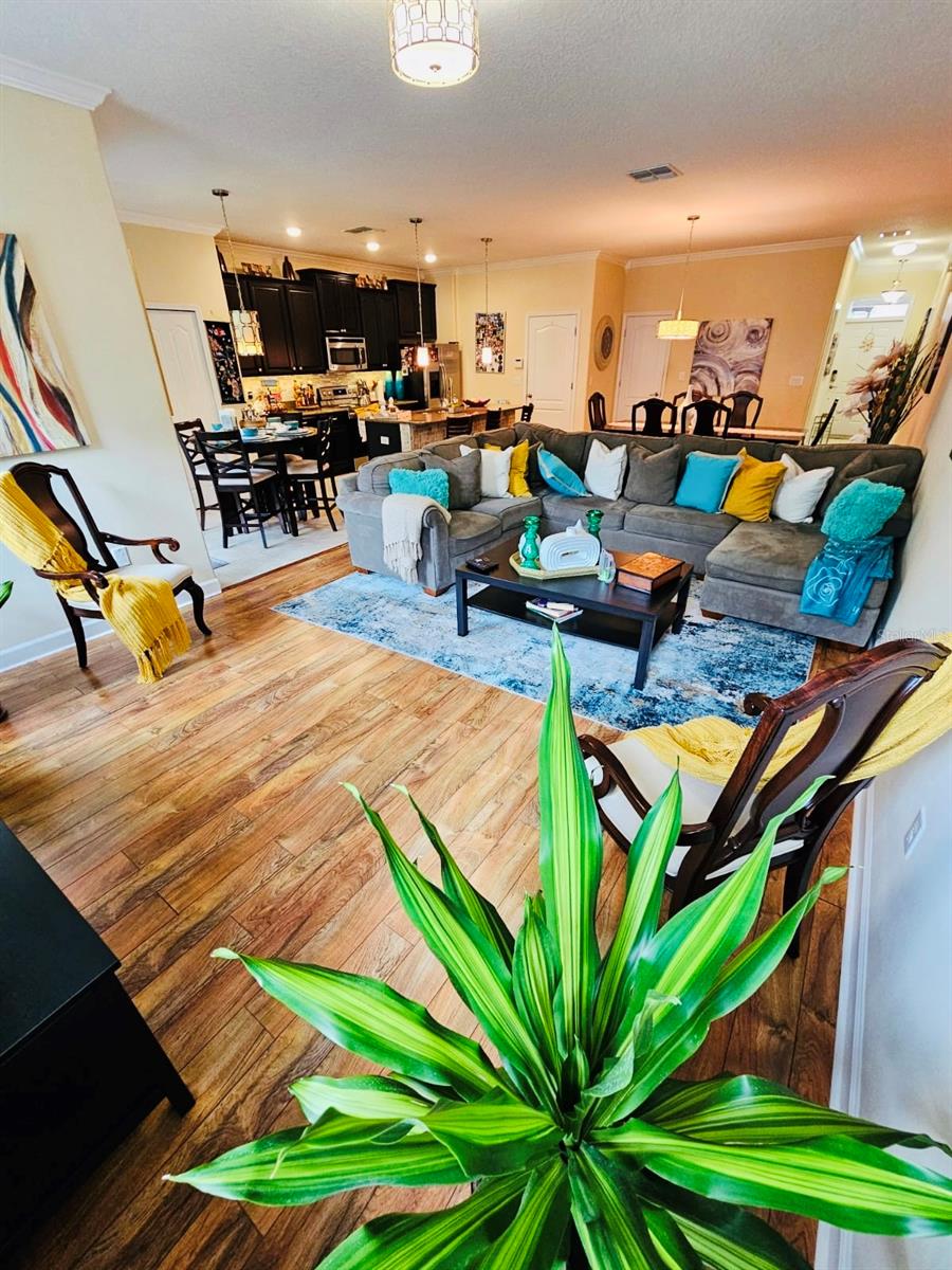 ARE YOU LOOKING FOR A PREMIUM CORNER LOT WITH AN IN-LAW SUITE? LOOK NO FURTHER!!!! This beautiful home is located in the beautiful 24 hour guard gated golf course community of Champions Gate. This community has the most impressive resort style amenities including 4 Club Houses, volleyball and tennis courts. The Oasis club house with 2 pools one with a lazy river and slide. The club house also has restaurants, gym, a movie theater and a arcade room and much more. THE PLAZA Clubhouse offers a pool, restaurant and fitness center. The Retreat ClubHouse also has a pool and water slide and restaurants. The Country Club offers a bar restaurant which is for those golf players that wish to have a nice break in between games. All these amenities are included in your HOA fee. This premium corner lot home features plenty of natural lighting , 4 bedrooms, 2 and 1 half bathroom, open kitchen and family room layout, a screened porch lanai and the best of all A in law suite. This corner lot layout is hard to find!! The in law suite has its separate entrance with a livingroom, dining area, kitchen , washer and dryer, full size bathroom, bedroom and big walk-in closet. Exterior of the house was recently painted in May 2024.. Don’t wait and schedule your tour today!! The HOA Fee includes access to all 4 clubhouses, golf club membership, lawn Maintenance, basic internet , basic cable, home phone service, home alarm system, 24 Hour security guard , $75 credit to use towards The plaza restaurant, discount on all other restaurants in-house.