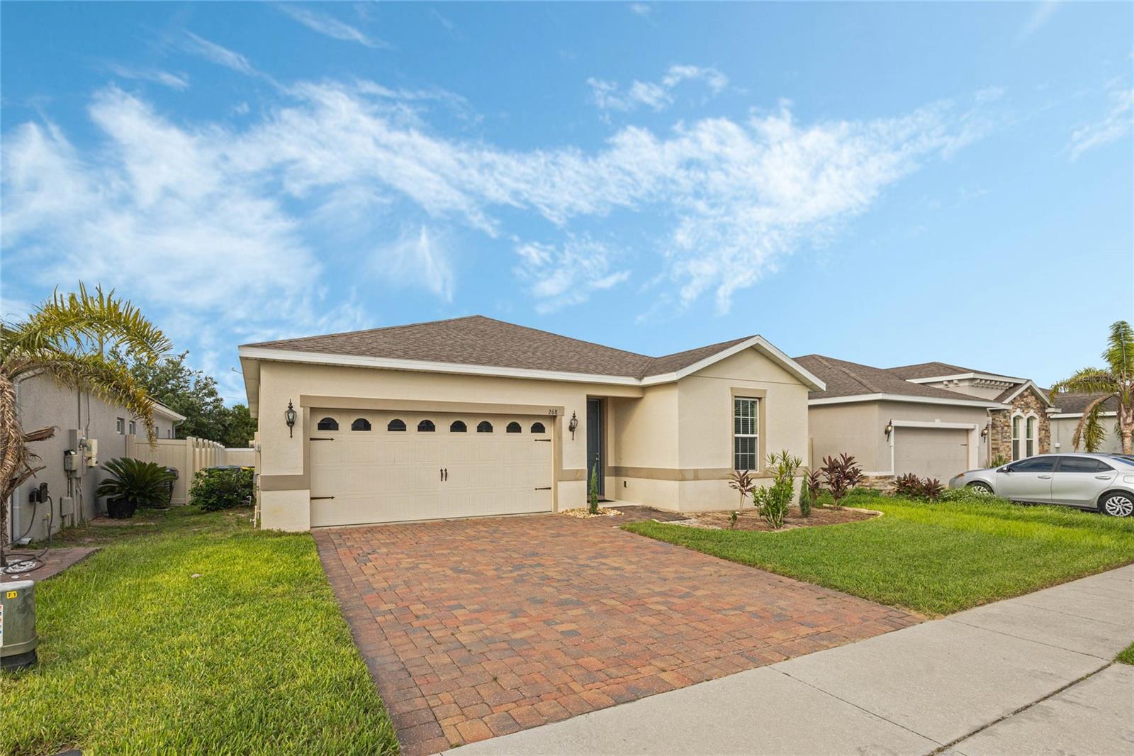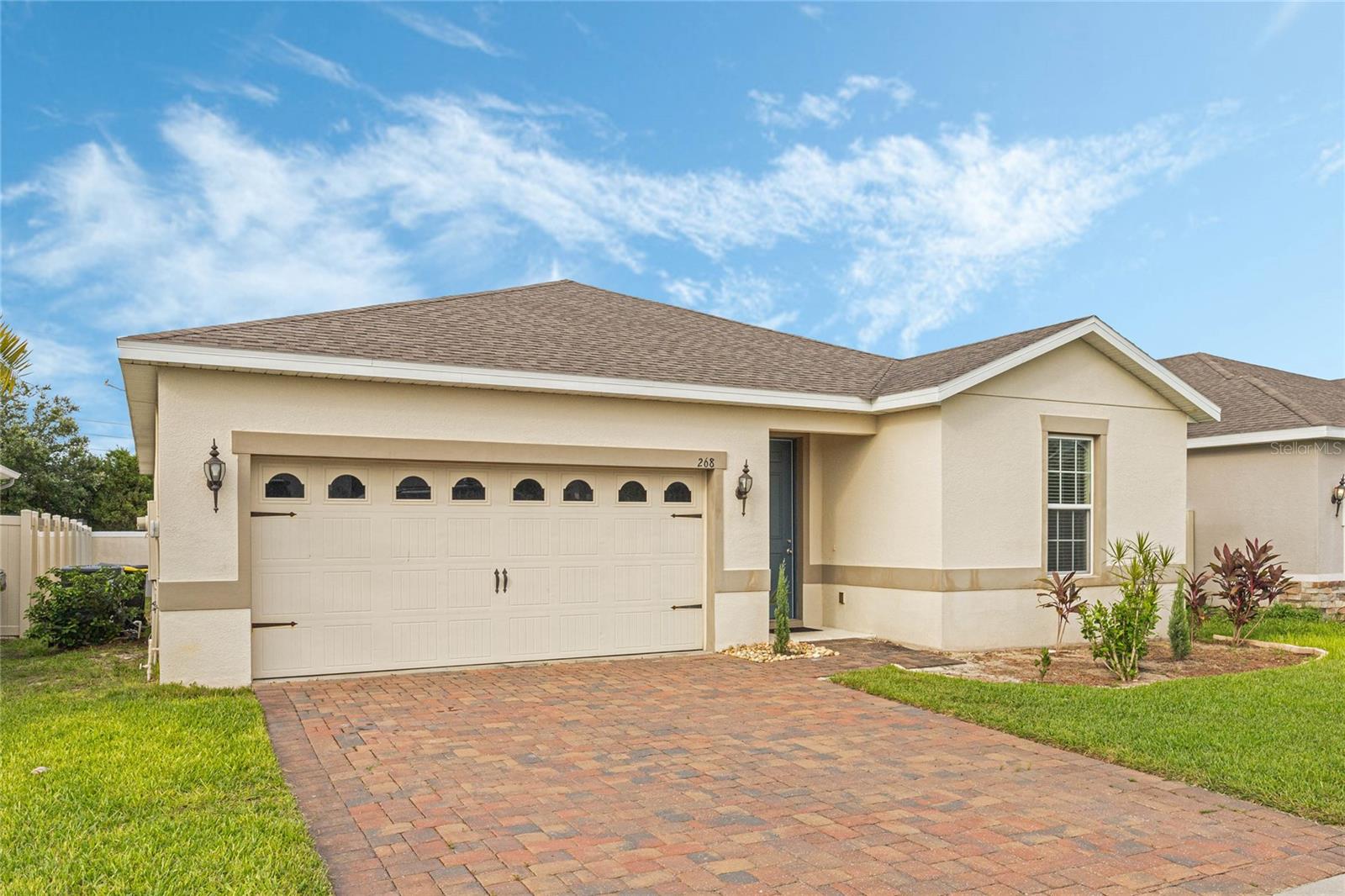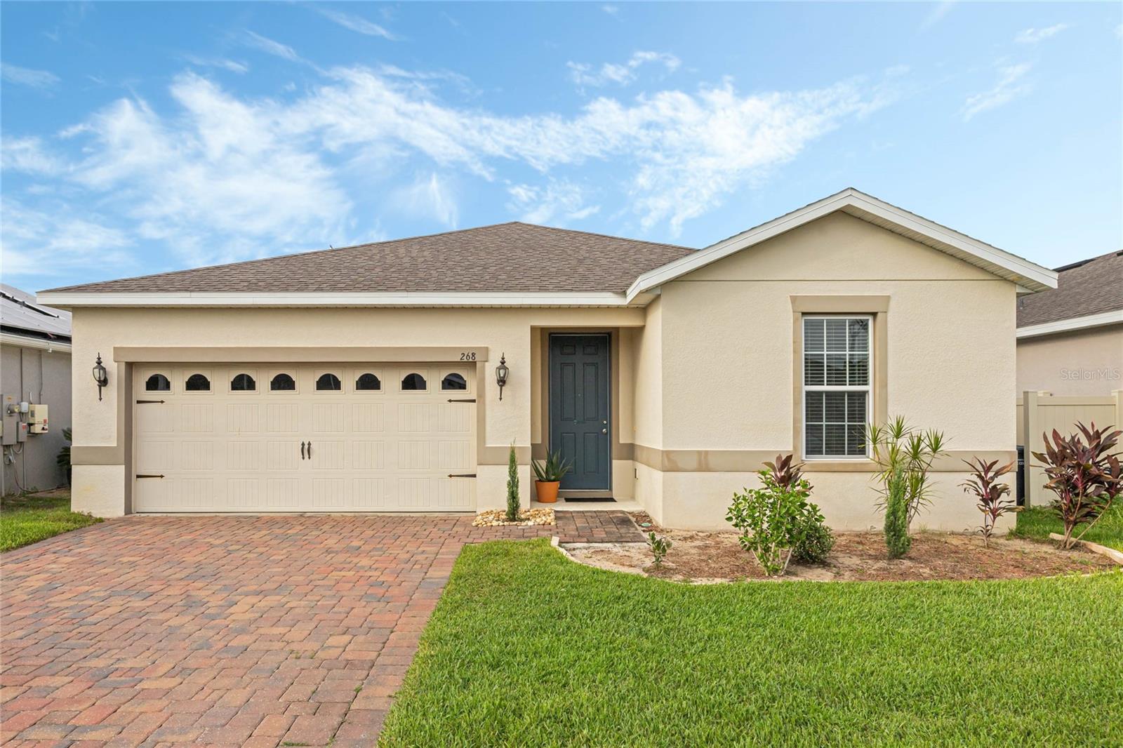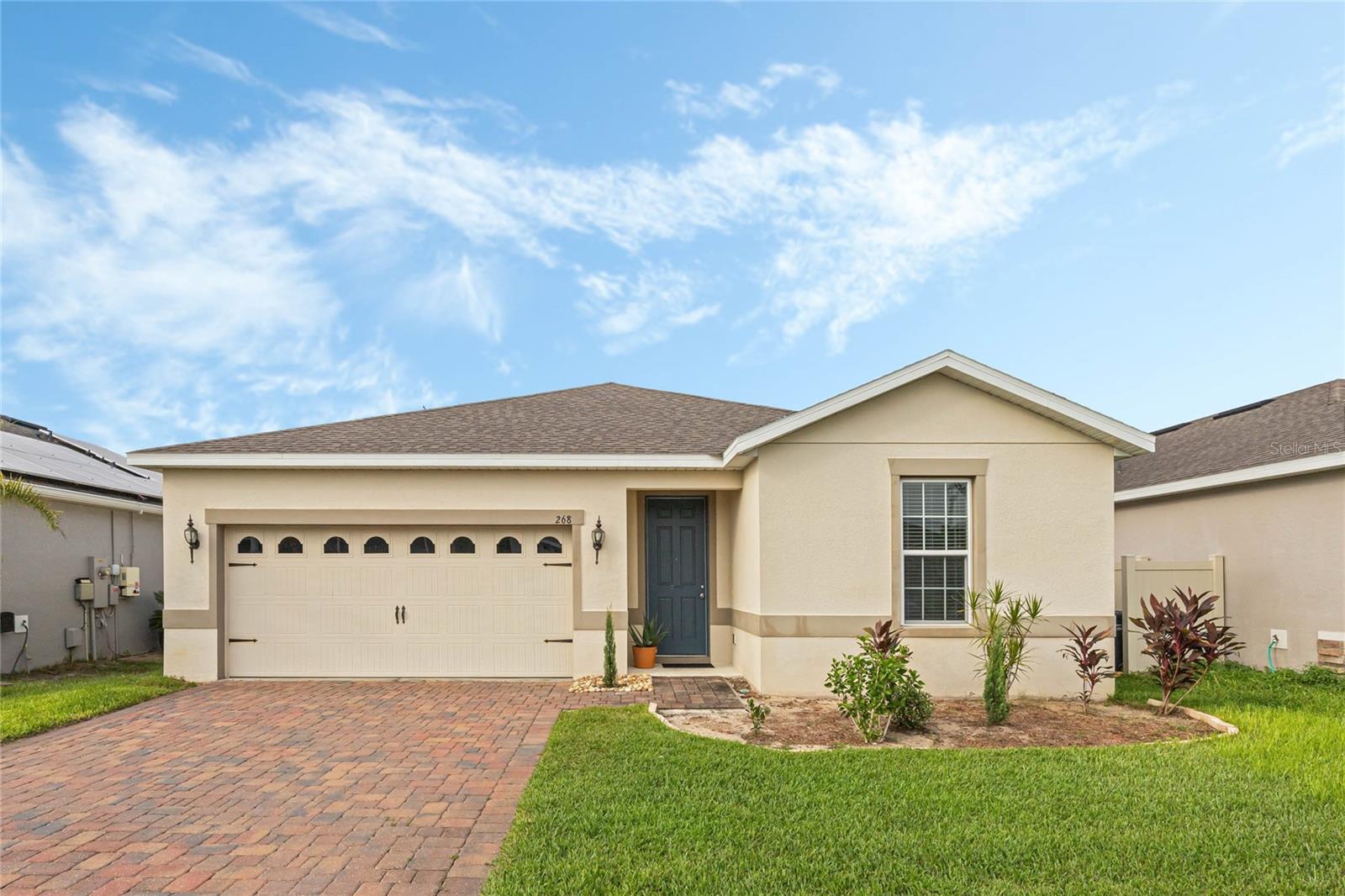 Welcome to this stunning 3-bedroom, 2-bathroom home, built in 2018 and boasting 1,675 sq ft of modern living space. As you approach the home, you'll be greeted by a beautifully landscaped front lawn and a meticulously crafted paver driveway, setting the stage for the elegance that awaits inside. Upon entering, you'll immediately be captivated by the soaring high ceilings and the abundance of natural light that flows effortlessly throughout the home. The thoughtfully designed split floor plan ensures optimal privacy for the whole family, with the primary bedroom on one side of the home and the additional two bedrooms on the other. The secondary bedrooms, located near the entry, provide plenty of space, natural light, and ample storage, making them perfect sanctuaries for everyone in the family. As you continue down the main hallway, you'll discover the heart of the home—the open layout of the living room, dining room, and kitchen. This inviting space ensures that you'll never miss a moment with your loved ones, whether you're preparing dinner or enjoying a cozy movie night together. The kitchen is a true chef's delight, featuring gorgeous modern finishes, a large kitchen island with a breakfast bar, stainless steel appliances, and an abundance of storage and counter space. The stylish backsplash adds a touch of elegance, while the ample natural and recessed lighting illuminate the entire space, making meal prep for any occasion feel effortless. The dining and living areas are ideal for spending quality time with loved ones, with a spacious layout and large windows that bathe the space in natural light. The primary bedroom is your personal oasis, complete with dual walk-in closets and an en suite bathroom. The bathroom features a dual vanity for added convenience, a large walk-in shower, and a sizable soaking tub—perfect for unwinding after a long day. Stepping outside, you'll find a covered patio and a large backyard, perfect for al fresco dining and summer BBQs in the warm Florida weather. The fenced backyard offers a secure space for little ones or four-legged friends to roam freely and enjoy the outdoors. The fun doesn't stop at home—this community offers amazing HOA amenities, including a stunning pool and playground area. With easy access to major highways, you're just minutes away from everything Central Florida has to offer, including top-notch shopping, dining, and entertainment. And with Walt Disney World only a 20-minute drive away, magic is always within reach. Don't miss your chance to own this gorgeous home in an unbeatable location. Schedule your private showing today and experience the perfect blend of modern living and Florida charm!