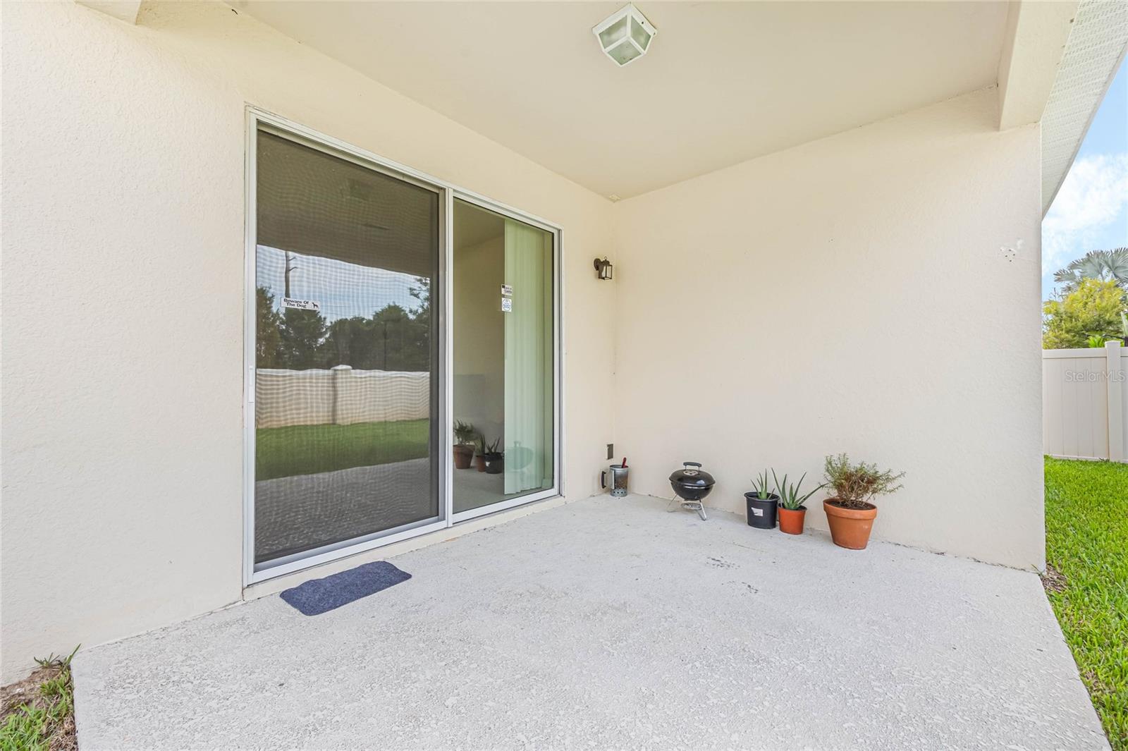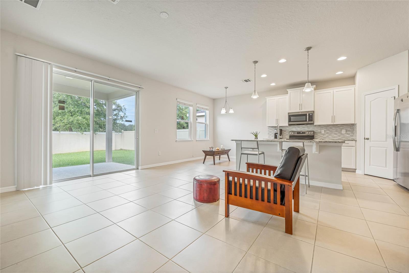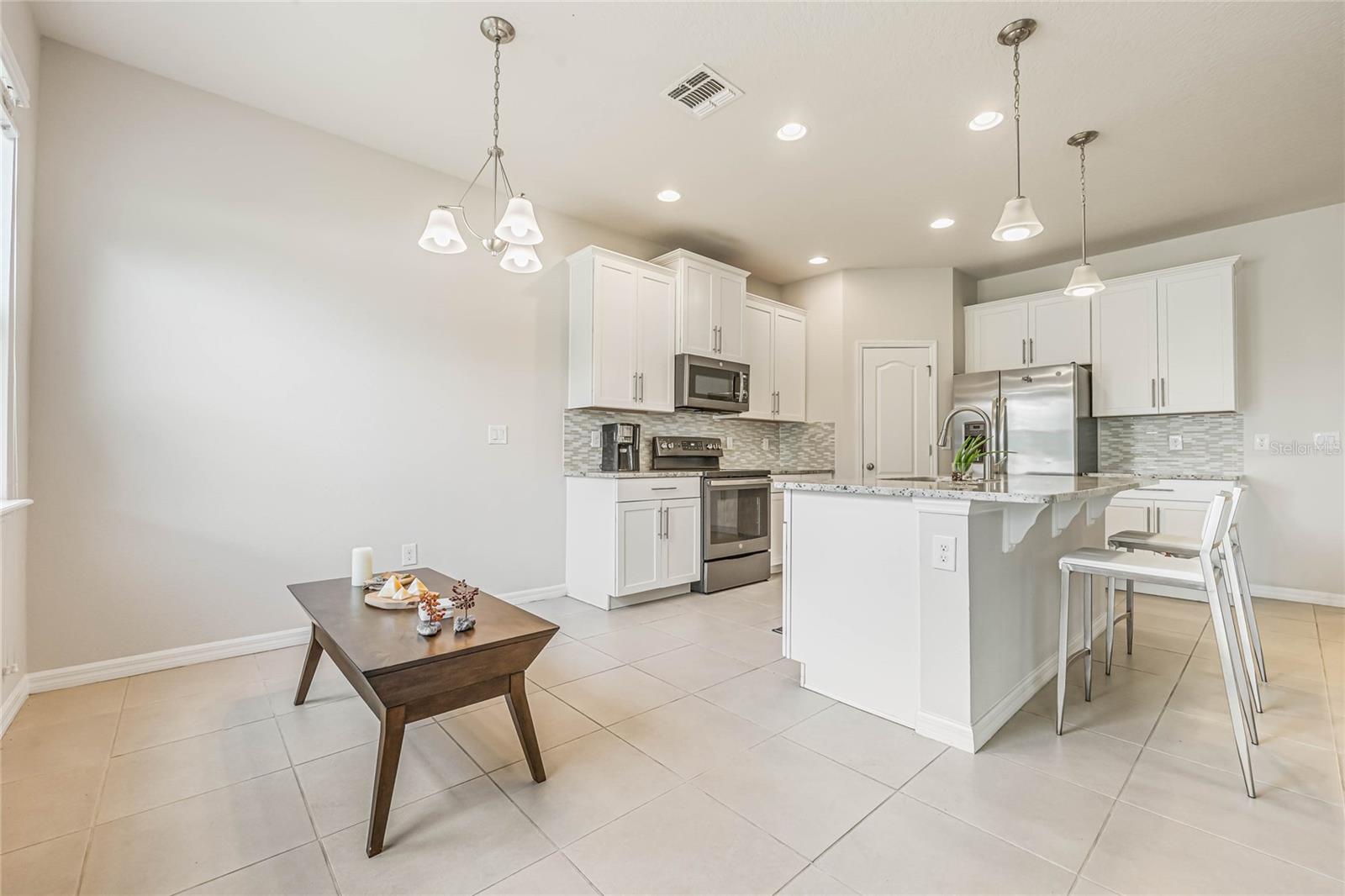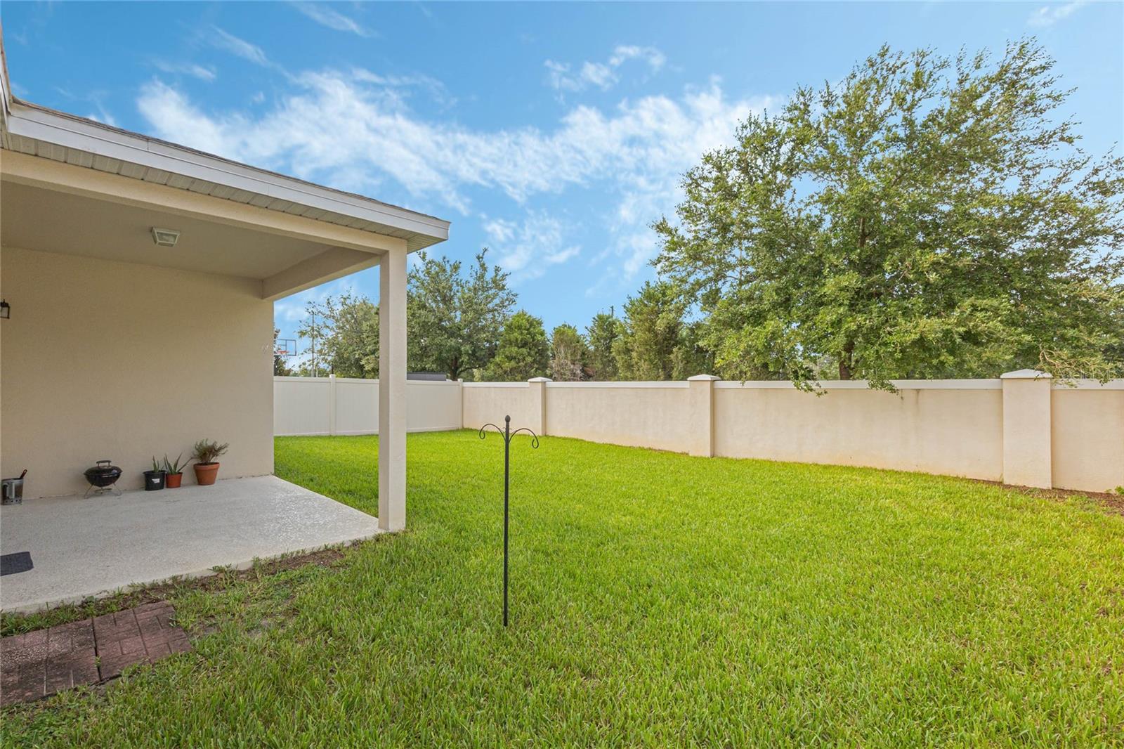Welcome to this stunning 3-bedroom, 2-bathroom home, built in 2018 and boasting 1,675 sq ft of modern living space. As you approach the home, you'll be greeted by a beautifully landscaped front lawn and a meticulously crafted paver driveway, setting the stage for the elegance that awaits inside. Upon entering, you'll immediately be captivated by the soaring high ceilings and the abundance of natural light that flows effortlessly throughout the home. The thoughtfully designed split floor plan ensures optimal privacy for the whole family, with the primary bedroom on one side of the home and the additional two bedrooms on the other. The secondary bedrooms, located near the entry, provide plenty of space, natural light, and ample storage, making them perfect sanctuaries for everyone in the family. As you continue down the main hallway, you'll discover the heart of the home—the open layout of the living room, dining room, and kitchen. This inviting space ensures that you'll never miss a moment with your loved ones, whether you're preparing dinner or enjoying a cozy movie night together. The kitchen is a true chef's delight, featuring gorgeous modern finishes, a large kitchen island with a breakfast bar, stainless steel appliances, and an abundance of storage and counter space. The stylish backsplash adds a touch of elegance, while the ample natural and recessed lighting illuminate the entire space, making meal prep for any occasion feel effortless. The dining and living areas are ideal for spending quality time with loved ones, with a spacious layout and large windows that bathe the space in natural light. The primary bedroom is your personal oasis, complete with dual walk-in closets and an en suite bathroom. The bathroom features a dual vanity for added convenience, a large walk-in shower, and a sizable soaking tub—perfect for unwinding after a long day. Stepping outside, you'll find a covered patio and a large backyard, perfect for al fresco dining and summer BBQs in the warm Florida weather. The fenced backyard offers a secure space for little ones or four-legged friends to roam freely and enjoy the outdoors. The fun doesn't stop at home—this community offers amazing HOA amenities, including a stunning pool and playground area. With easy access to major highways, you're just minutes away from everything Central Florida has to offer, including top-notch shopping, dining, and entertainment. And with Walt Disney World only a 20-minute drive away, magic is always within reach. Don't miss your chance to own this gorgeous home in an unbeatable location. Schedule your private showing today and experience the perfect blend of modern living and Florida charm!