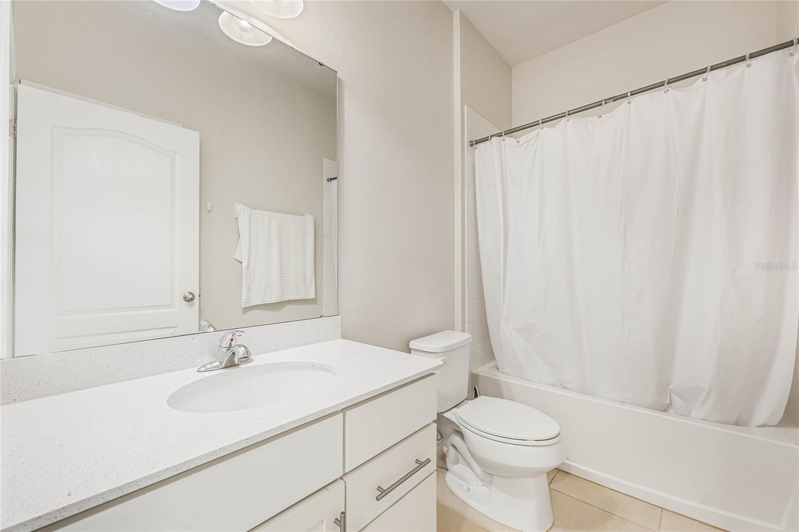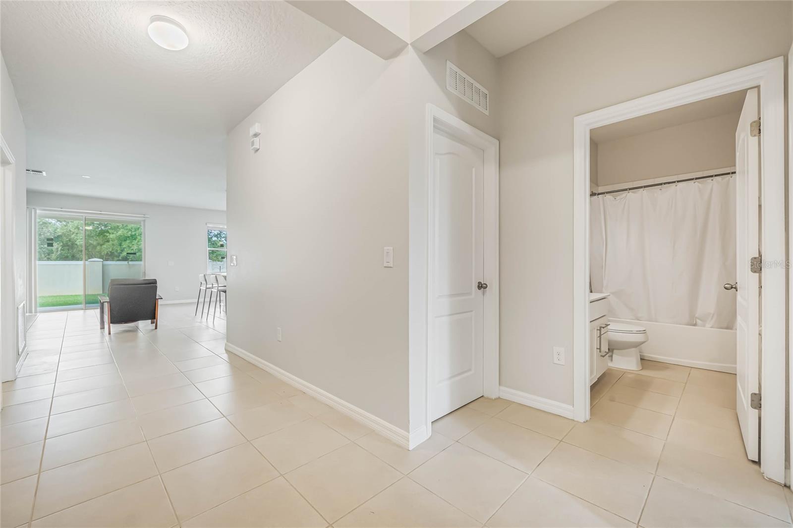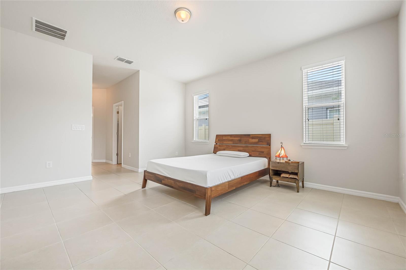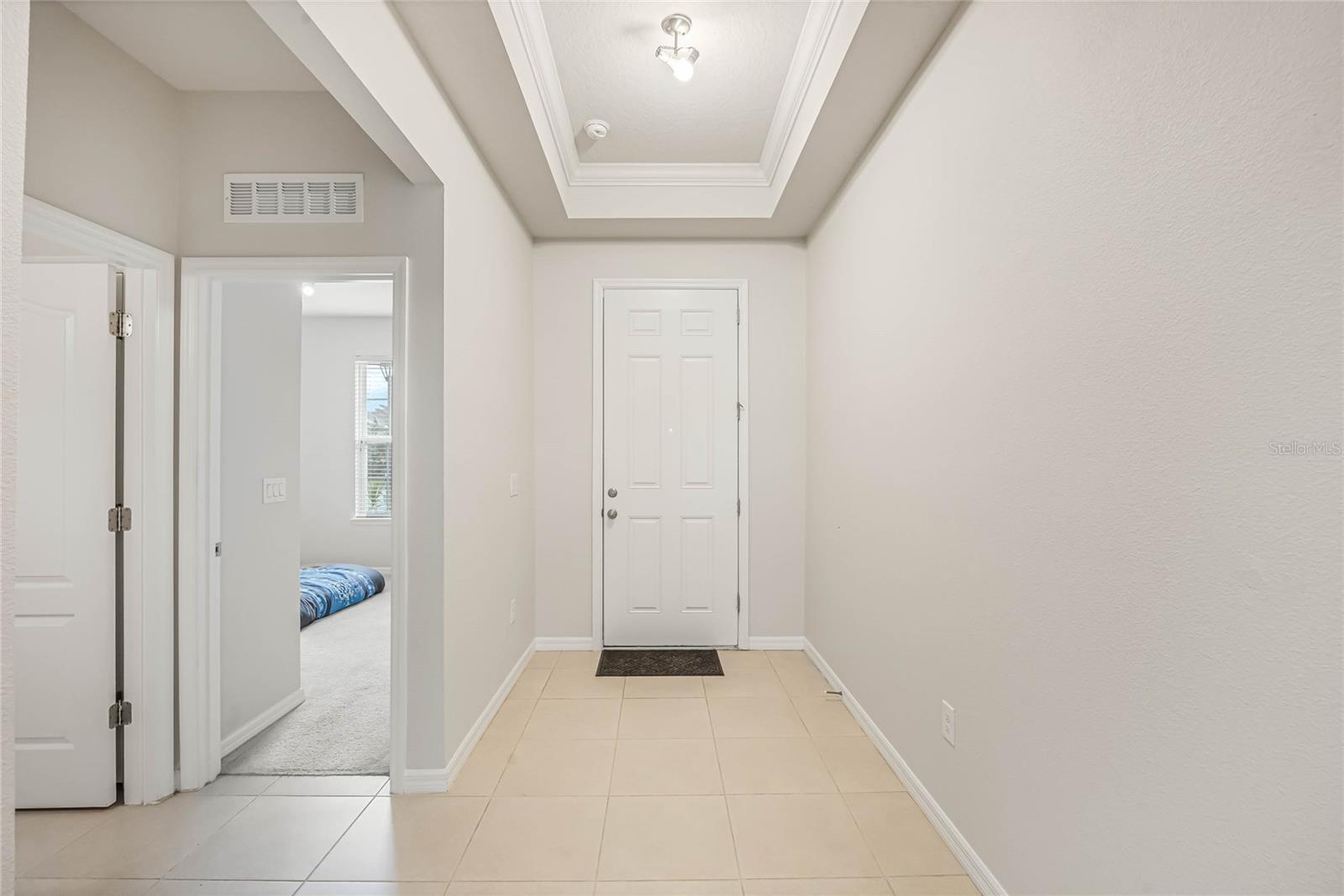 Welcome to this stunning 3-bedroom, 2-bathroom home, built in 2018 and boasting 1,675 sq ft of modern living space. As you approach the home, you'll be greeted by a beautifully landscaped front lawn and a meticulously crafted paver driveway, setting the stage for the elegance that awaits inside. Upon entering, you'll immediately be captivated by the soaring high ceilings and the abundance of natural light that flows effortlessly throughout the home. The thoughtfully designed split floor plan ensures optimal privacy for the whole family, with the primary bedroom on one side of the home and the additional two bedrooms on the other. The secondary bedrooms, located near the entry, provide plenty of space, natural light, and ample storage, making them perfect sanctuaries for everyone in the family. As you continue down the main hallway, you'll discover the heart of the home—the open layout of the living room, dining room, and kitchen. This inviting space ensures that you'll never miss a moment with your loved ones, whether you're preparing dinner or enjoying a cozy movie night together. The kitchen is a true chef's delight, featuring gorgeous modern finishes, a large kitchen island with a breakfast bar, stainless steel appliances, and an abundance of storage and counter space. The stylish backsplash adds a touch of elegance, while the ample natural and recessed lighting illuminate the entire space, making meal prep for any occasion feel effortless. The dining and living areas are ideal for spending quality time with loved ones, with a spacious layout and large windows that bathe the space in natural light. The primary bedroom is your personal oasis, complete with dual walk-in closets and an en suite bathroom. The bathroom features a dual vanity for added convenience, a large walk-in shower, and a sizable soaking tub—perfect for unwinding after a long day. Stepping outside, you'll find a covered patio and a large backyard, perfect for al fresco dining and summer BBQs in the warm Florida weather. The fenced backyard offers a secure space for little ones or four-legged friends to roam freely and enjoy the outdoors. The fun doesn't stop at home—this community offers amazing HOA amenities, including a stunning pool and playground area. With easy access to major highways, you're just minutes away from everything Central Florida has to offer, including top-notch shopping, dining, and entertainment. And with Walt Disney World only a 20-minute drive away, magic is always within reach. Don't miss your chance to own this gorgeous home in an unbeatable location. Schedule your private showing today and experience the perfect blend of modern living and Florida charm!