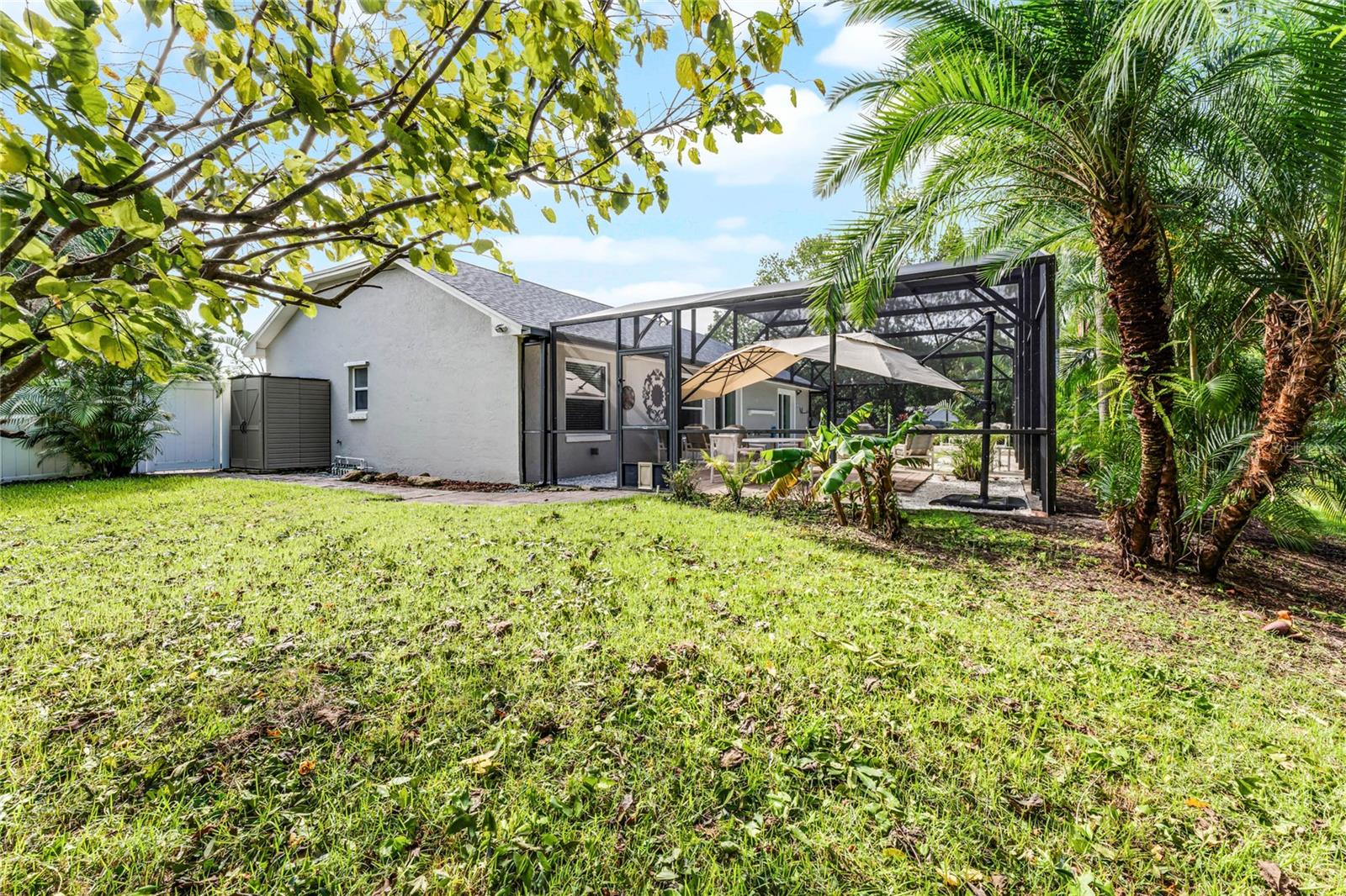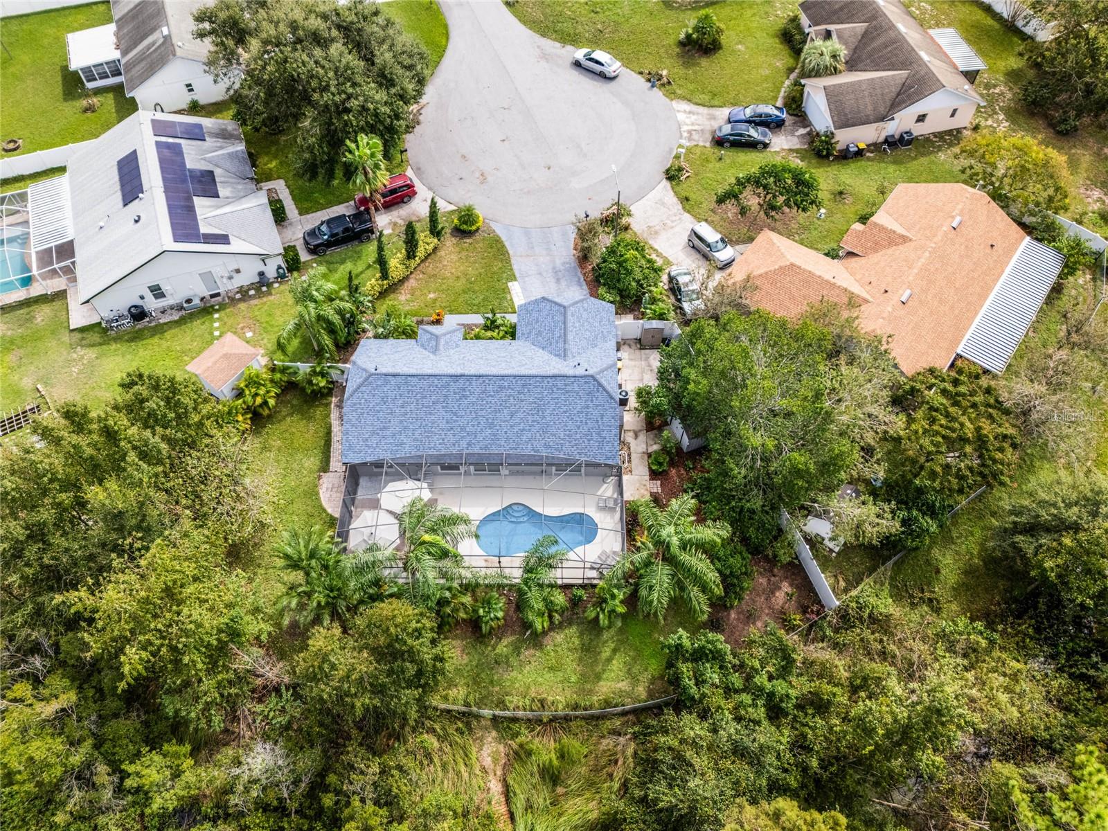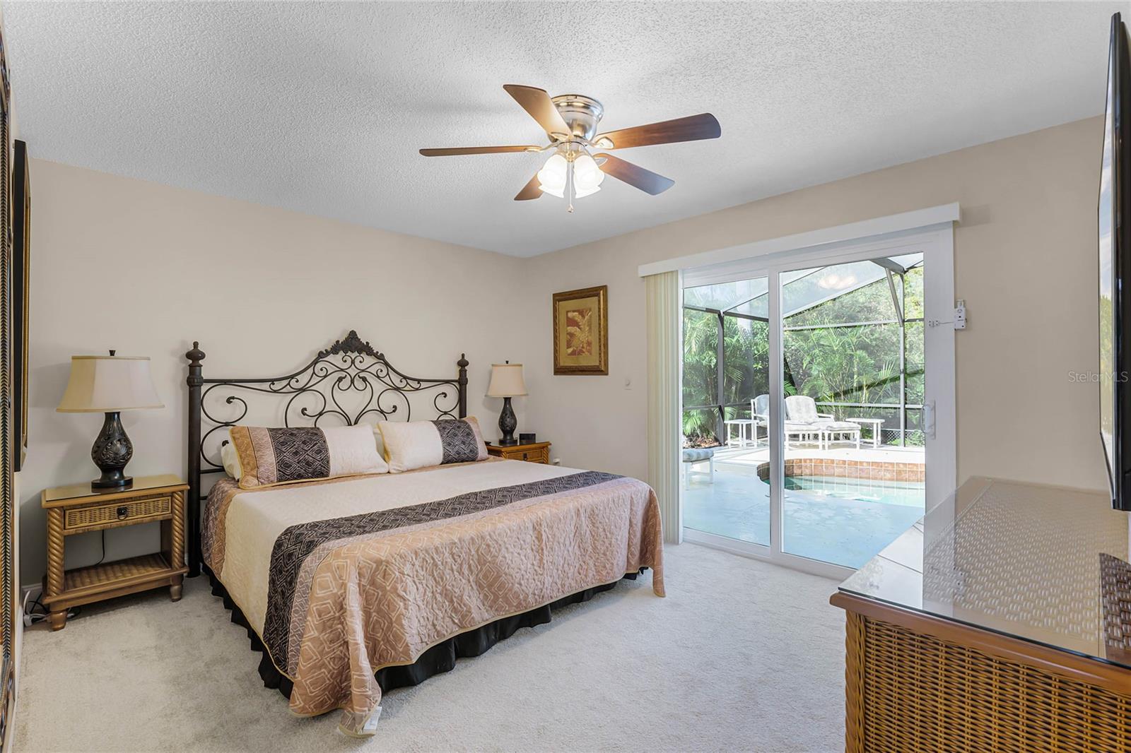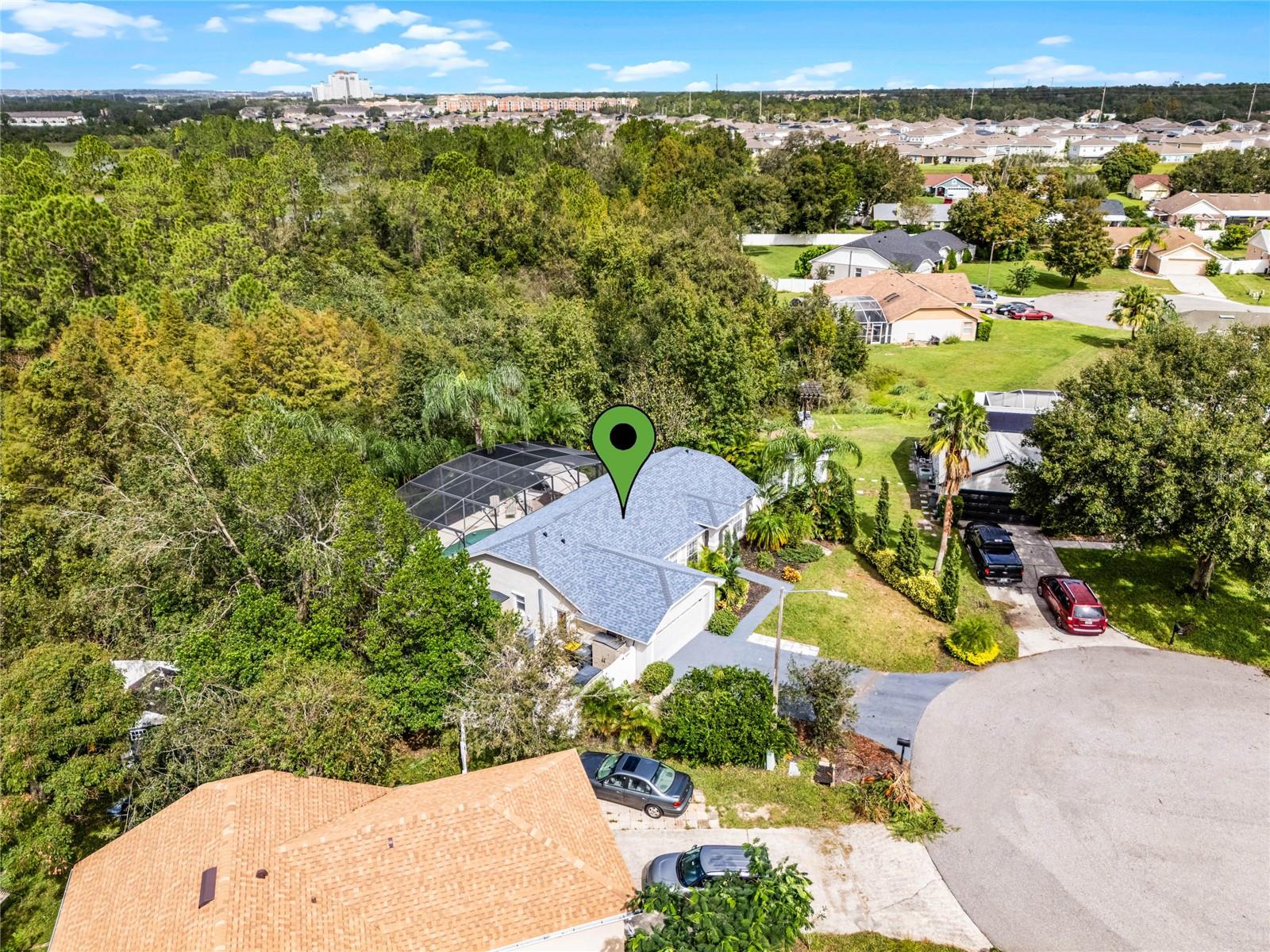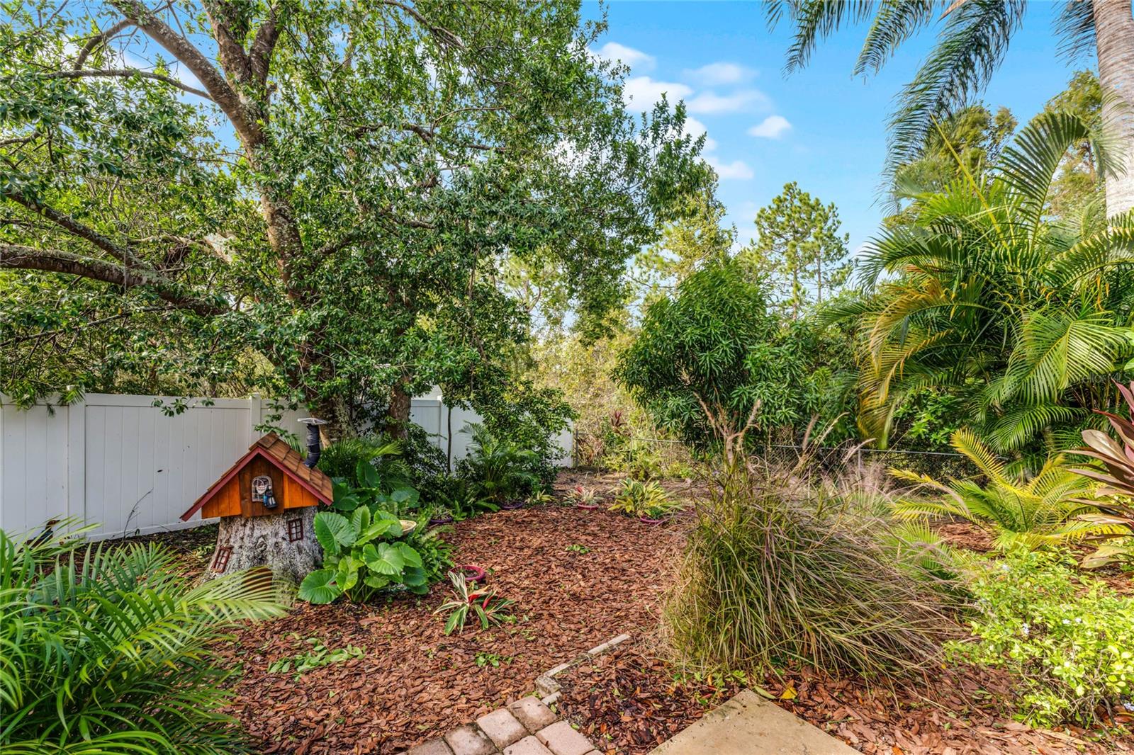 Welcome home to your tropical oasis in the heart of Champions Gate. This 3 bedroom, 2 bath pool home really is a hidden gem, situated on over 2.11 acres on a cul de sac in the Loma Linda community. As you enter the home the renovated kitchen is to your left, with self closing, pull out shelving offering plenty of storage, a breakfast nook and breakfast bar. The kitchen then opens up to the family room, offering plenty of space to sit and enjoy the spectacular views of the pool and tranquil garden beyond. Sliding glass doors and a picture window makes the space bright and airy. To the left of the home is the primary suite, with a spacious bedroom and sliding glass doors onto the lanai, newly appointed closets and a updated bathroom with vanity. To the right of the home are bedrooms 2 and 3 with a full bathroom in between, bedroom 2 is ensuite giving private access to the bathroom. All bedrooms have new carpet and the whole interior has been freshly painted. A renovated laundry room offers a clothes folding area and plenty of storage, which in turn leads to the bonus room. The 2 car garage was converted into a living/games room which offers endless opportunities, a home office, play room with access to the garden, which is all under AC. The oversized pool and screened in lanai offers so much space for entertaining and relaxing with the family. The fenced in garden is beautifully landscaped, with automatic sprinklers, fruit trees, storage sheds and even a Gnome house. The property extends over 500 feet straight back into a nature preserve. There is a raised walkway that leads you through a nature trail to a private pond and floating dock. Need a space to get away from it all ? Then look no further this truly is a rare find just minutes from Disney, the attractions, restaurants and shopping. The roof is only 3 years old and the hoa is only $23 a month !!! Call today for your own private tour, whether you are looking for full time living, a second home or to rent short/long term this home has it all.