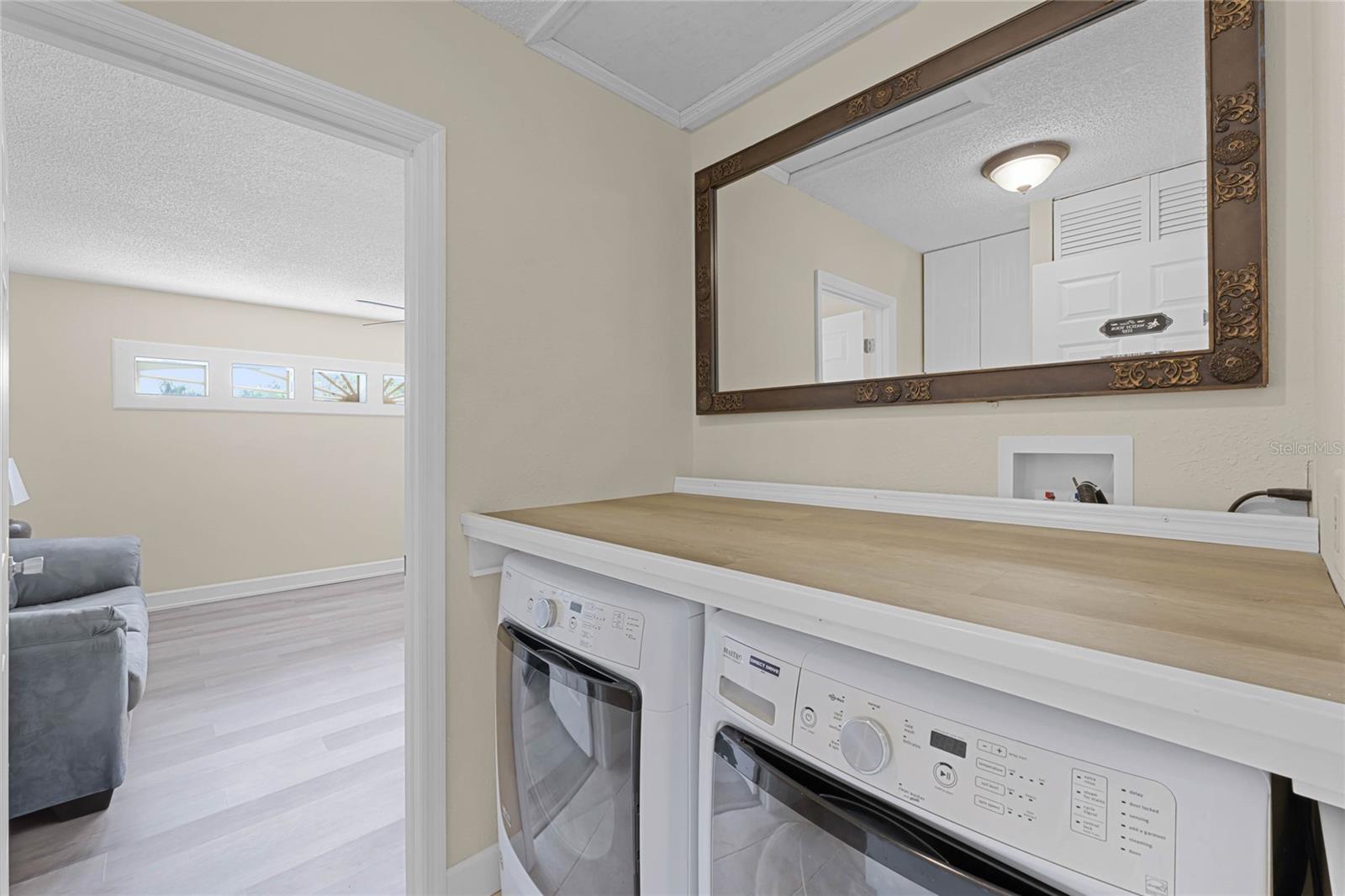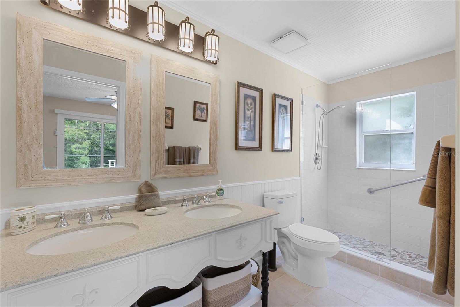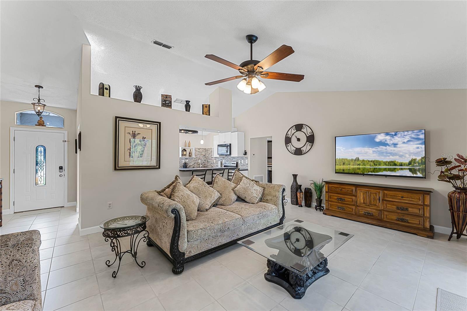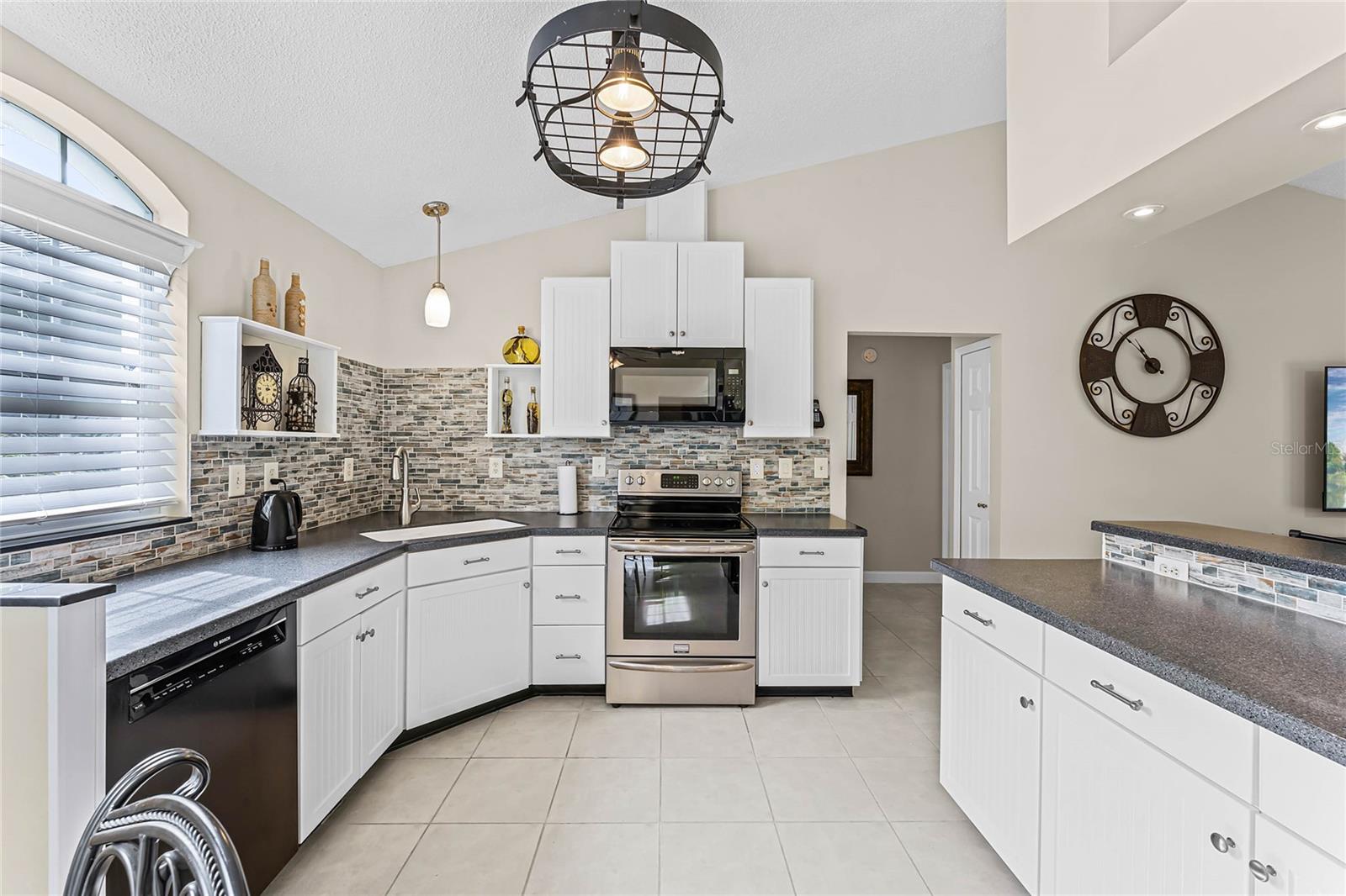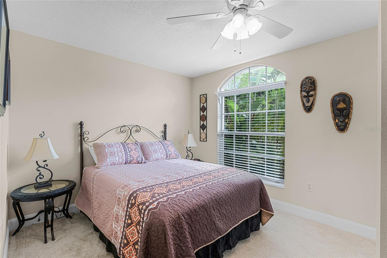 Welcome home to your tropical oasis in the heart of Champions Gate. This 3 bedroom, 2 bath pool home really is a hidden gem, situated on over 2.11 acres on a cul de sac in the Loma Linda community. As you enter the home the renovated kitchen is to your left, with self closing, pull out shelving offering plenty of storage, a breakfast nook and breakfast bar. The kitchen then opens up to the family room, offering plenty of space to sit and enjoy the spectacular views of the pool and tranquil garden beyond. Sliding glass doors and a picture window makes the space bright and airy. To the left of the home is the primary suite, with a spacious bedroom and sliding glass doors onto the lanai, newly appointed closets and a updated bathroom with vanity. To the right of the home are bedrooms 2 and 3 with a full bathroom in between, bedroom 2 is ensuite giving private access to the bathroom. All bedrooms have new carpet and the whole interior has been freshly painted. A renovated laundry room offers a clothes folding area and plenty of storage, which in turn leads to the bonus room. The 2 car garage was converted into a living/games room which offers endless opportunities, a home office, play room with access to the garden, which is all under AC. The oversized pool and screened in lanai offers so much space for entertaining and relaxing with the family. The fenced in garden is beautifully landscaped, with automatic sprinklers, fruit trees, storage sheds and even a Gnome house. The property extends over 500 feet straight back into a nature preserve. There is a raised walkway that leads you through a nature trail to a private pond and floating dock. Need a space to get away from it all ? Then look no further this truly is a rare find just minutes from Disney, the attractions, restaurants and shopping. The roof is only 3 years old and the hoa is only $23 a month !!! Call today for your own private tour, whether you are looking for full time living, a second home or to rent short/long term this home has it all.